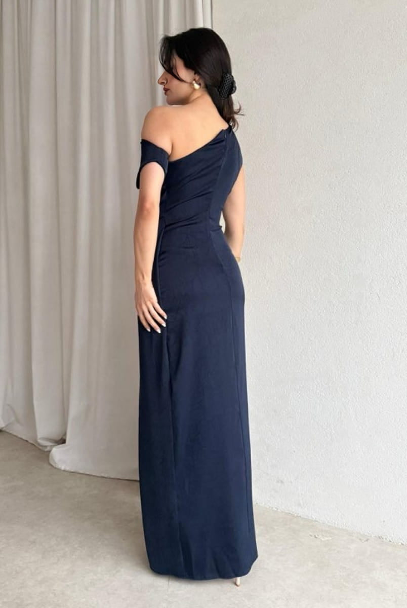 Solid Sleeveless Ruched One Shoulder Skinny Long Bodycon DressRegular price 24 JODRed Brown Dark Blue Navy Black