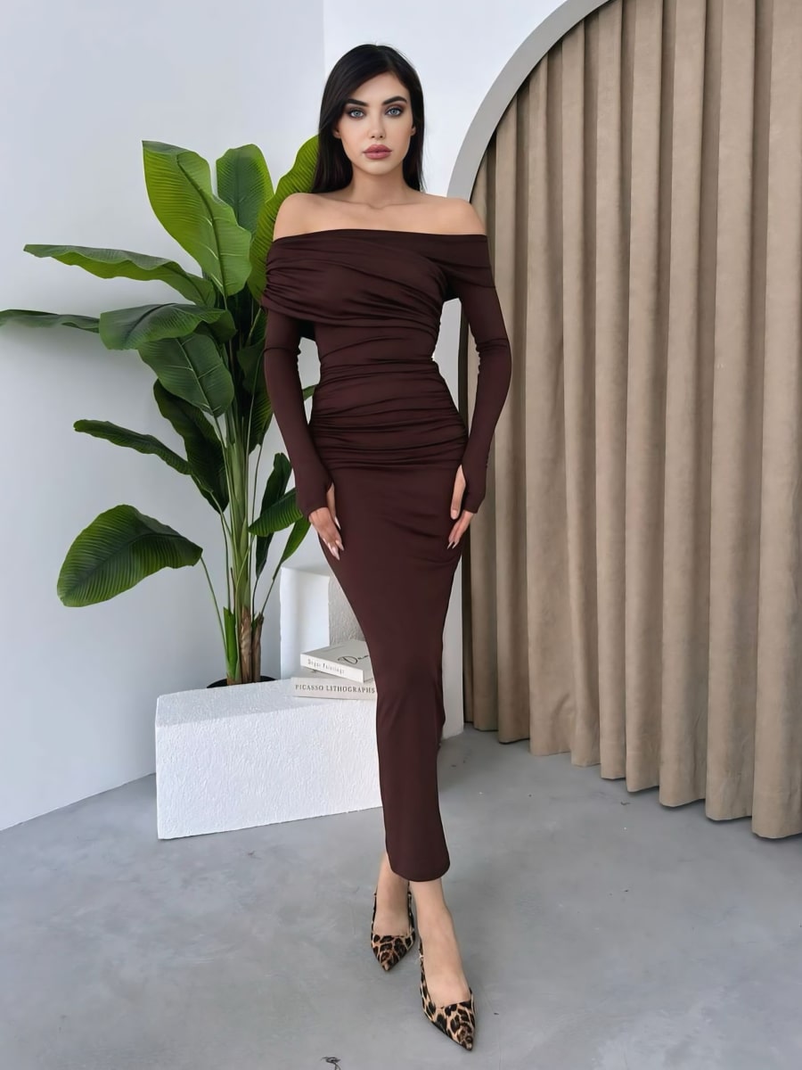 Ruched Wrap Trim Bodycon DressRegular price 26 JDBrown Burgundy Black Dark Gray Red