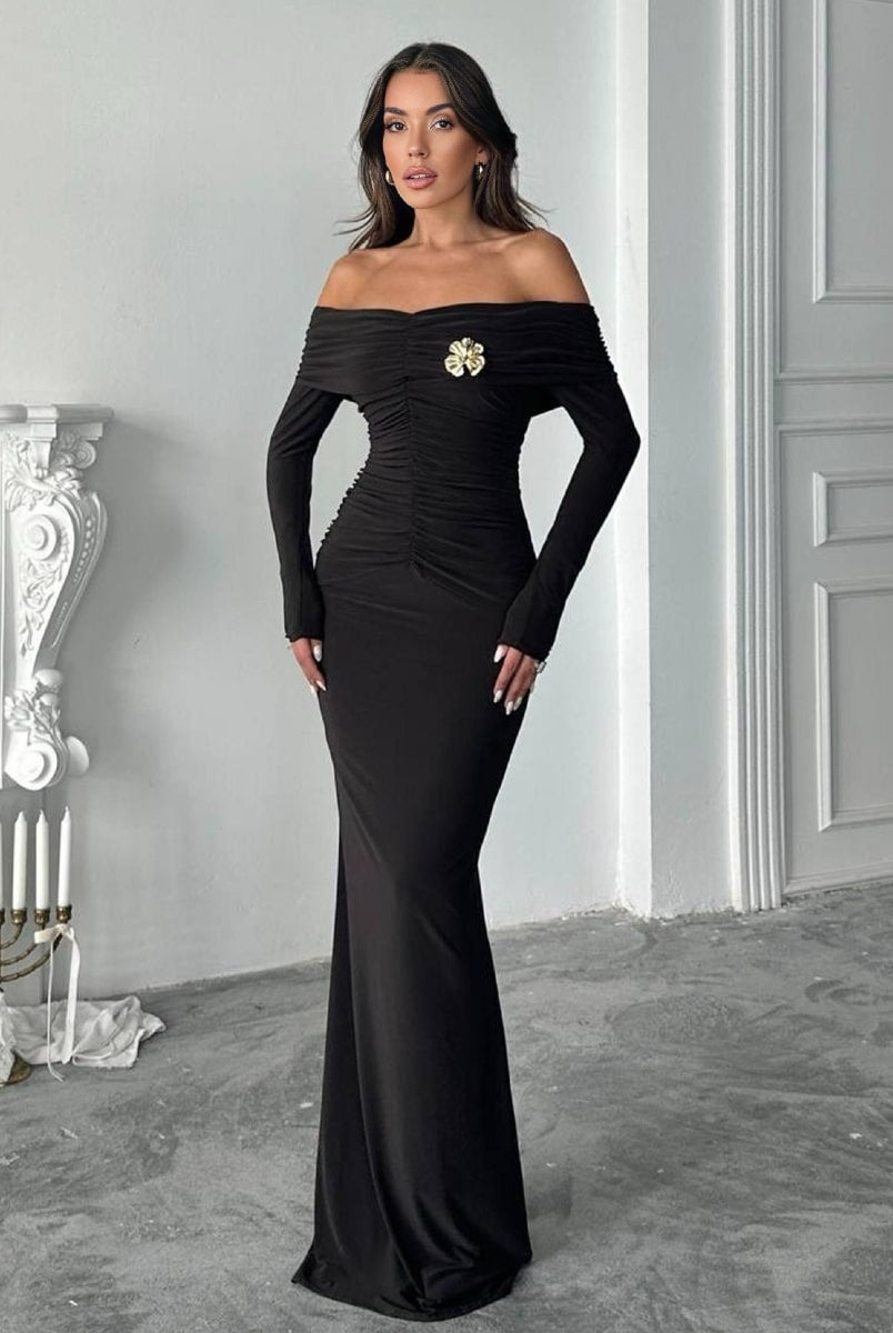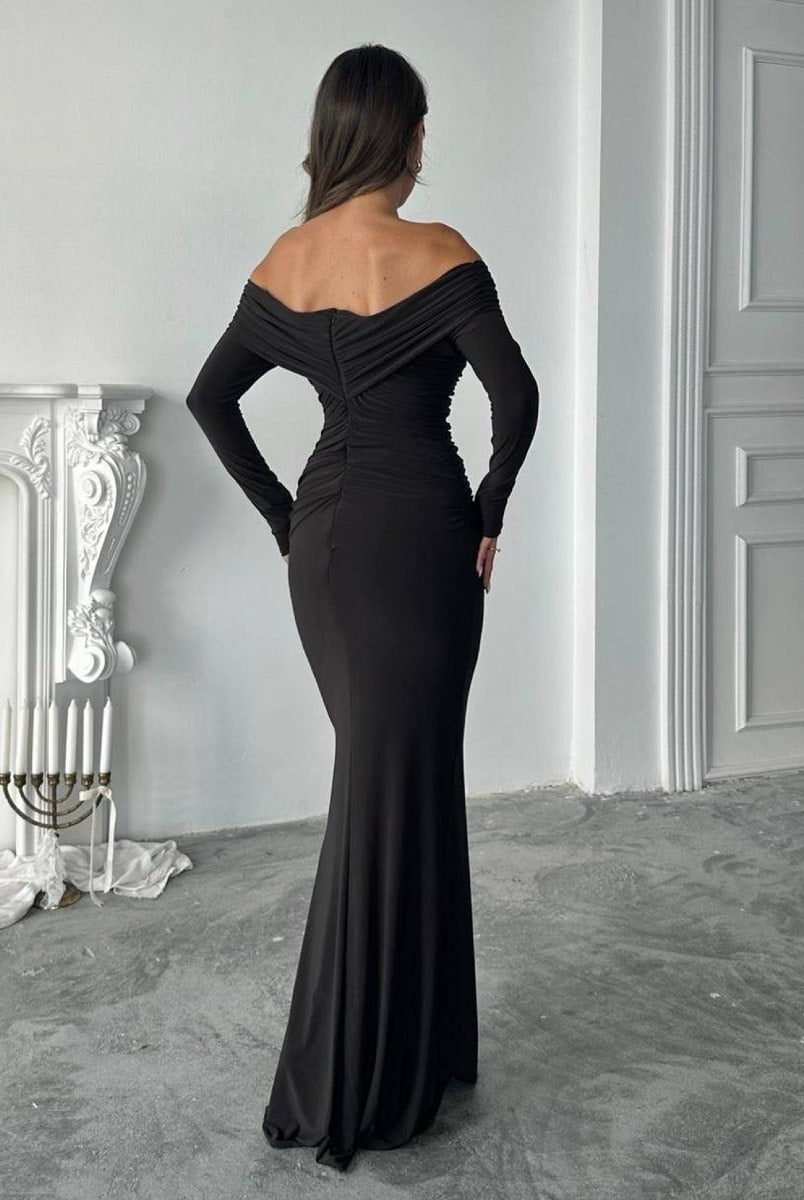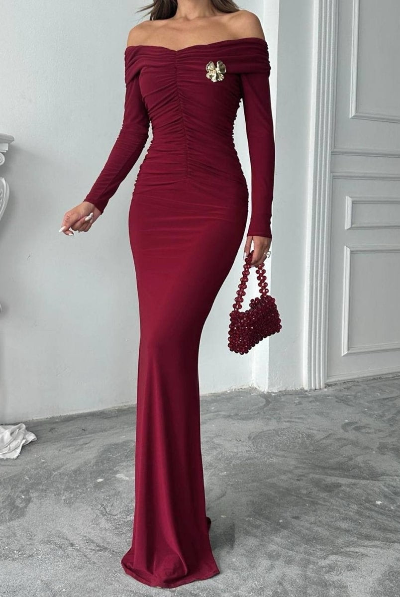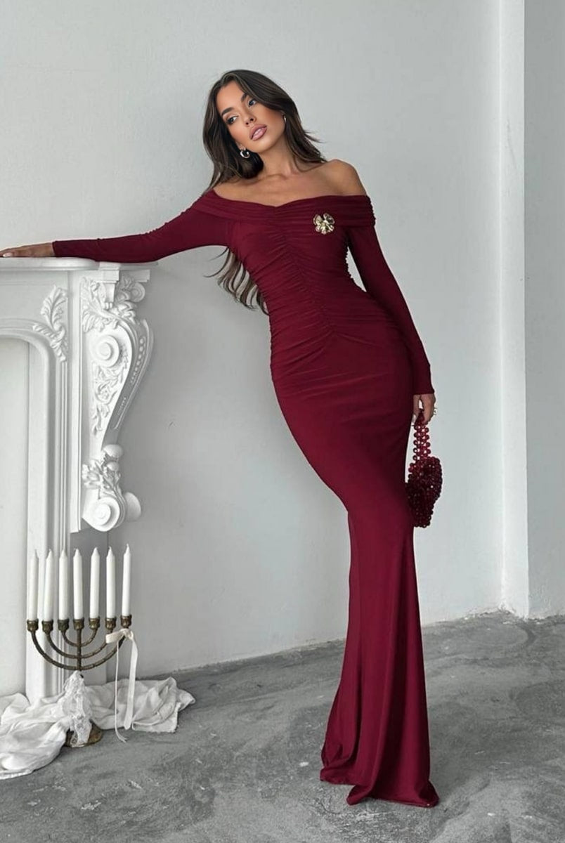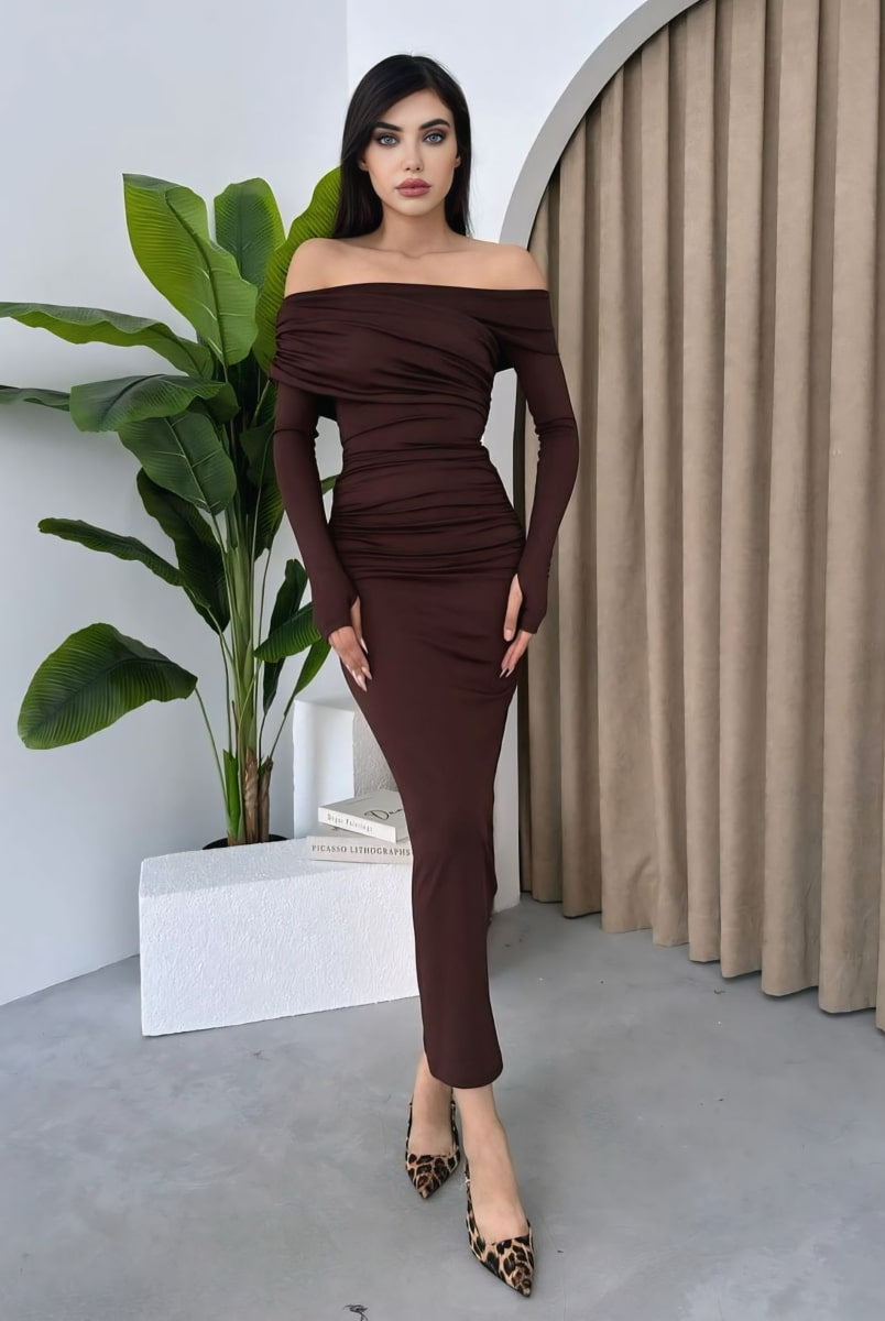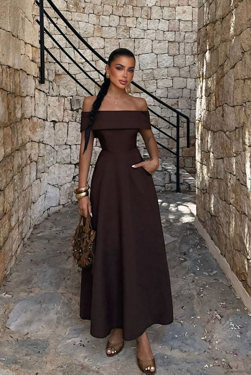 Off shoulder Solid Color Dress28 JODDark Brown Red Beige Black
