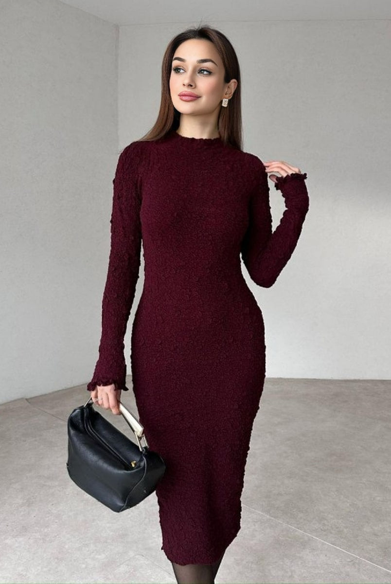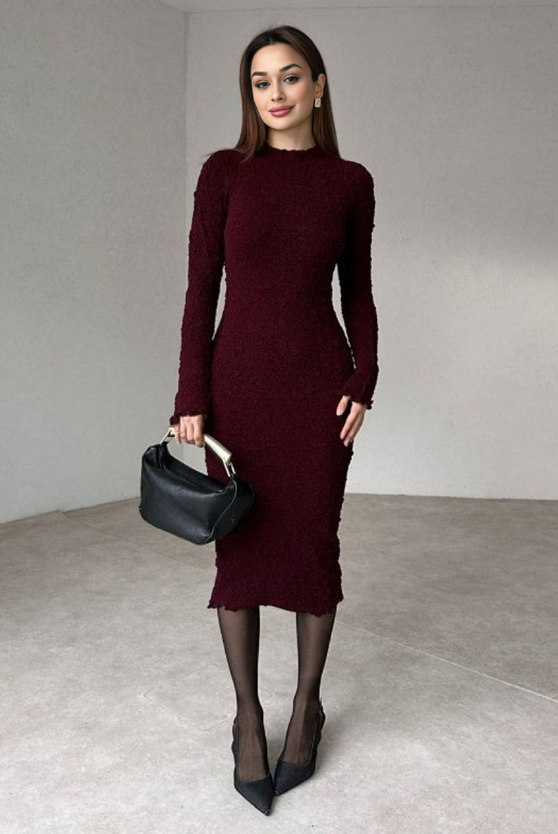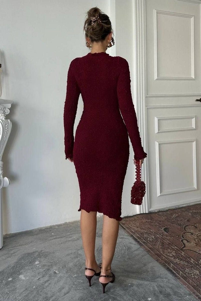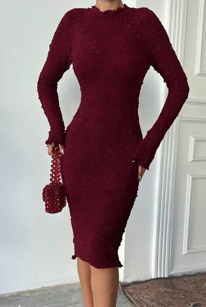 فستان ضيق بحواف ملفوفة26 JODBrown Burgundy أسود سكني غامق Red