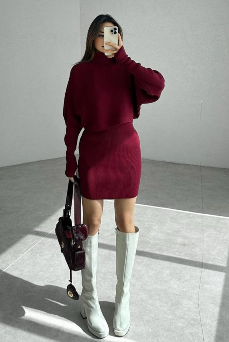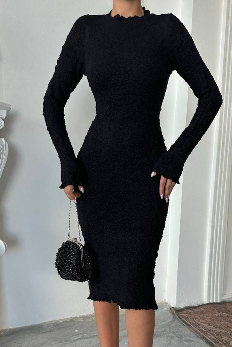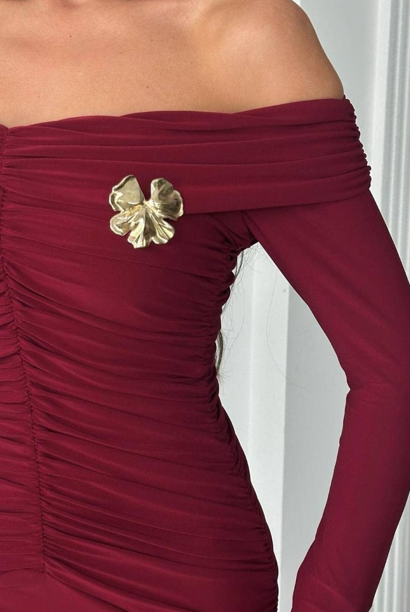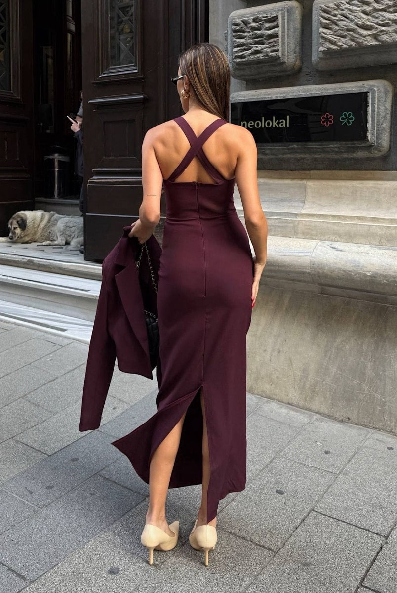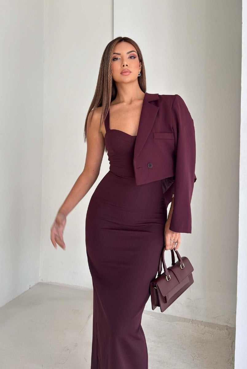 فستان ضيق بحواف ملفوفة26 JODBrown Burgundy أسود سكني غامق Red