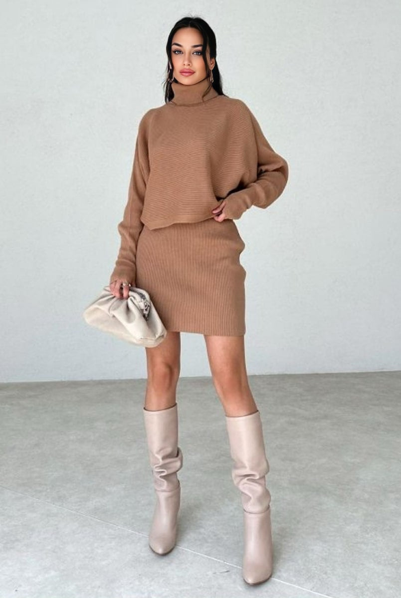 Multiway Neckline Dress With Sculpted Ruching & Slit Back26 JODBrown Mustard Yellow Beige