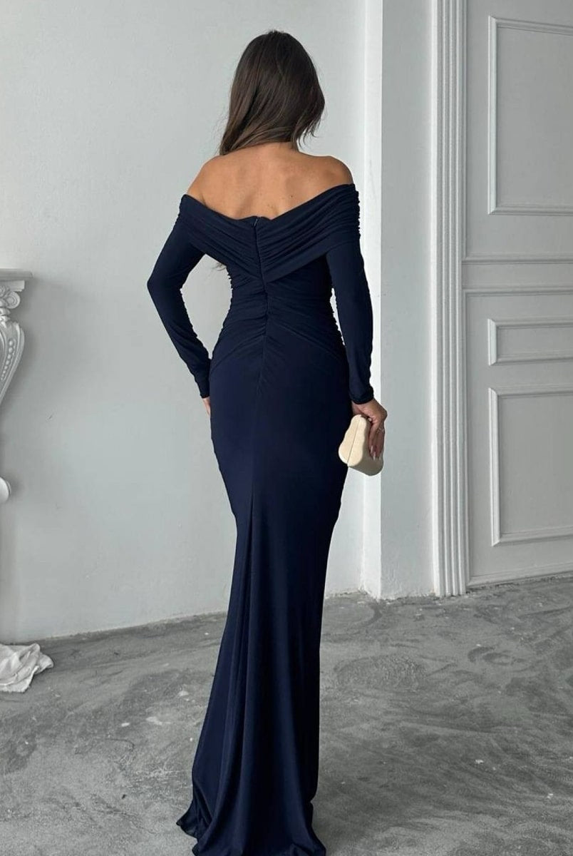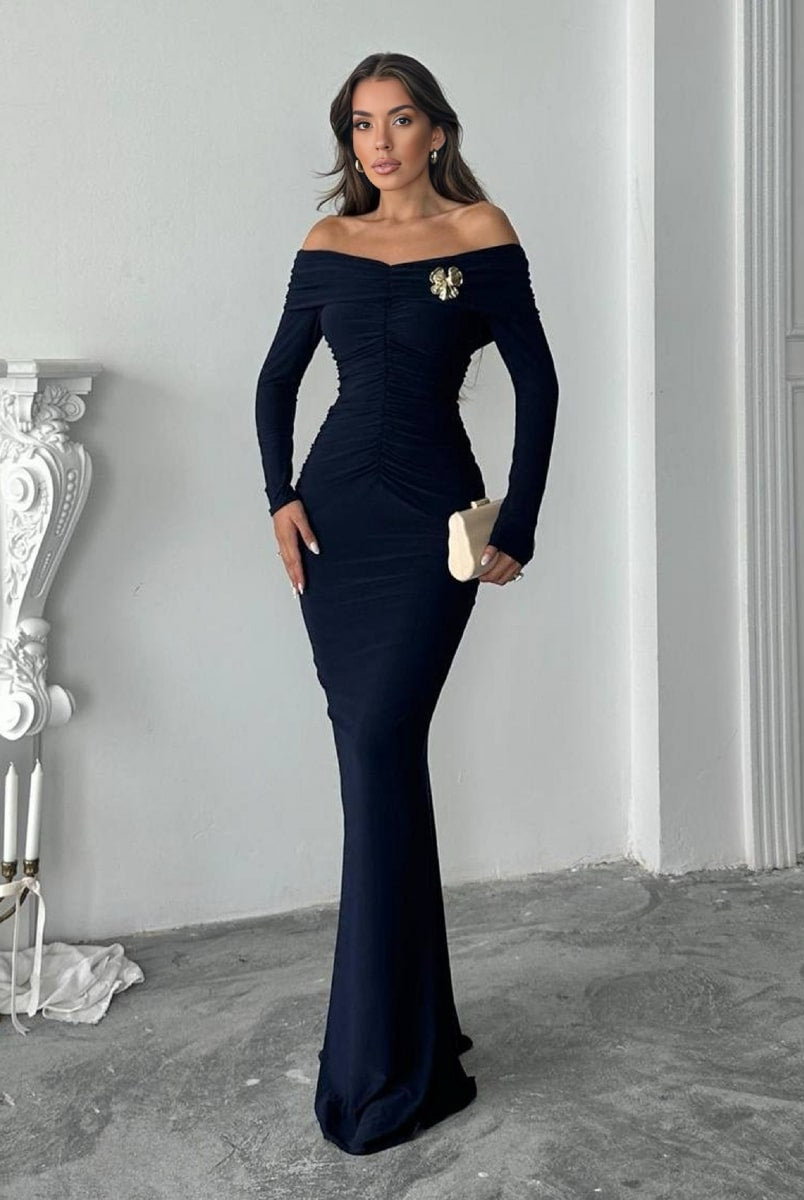 فستان رسمي طويل مزين بأحجار الراين27 JODاحمر الأزرق الملكي Black
