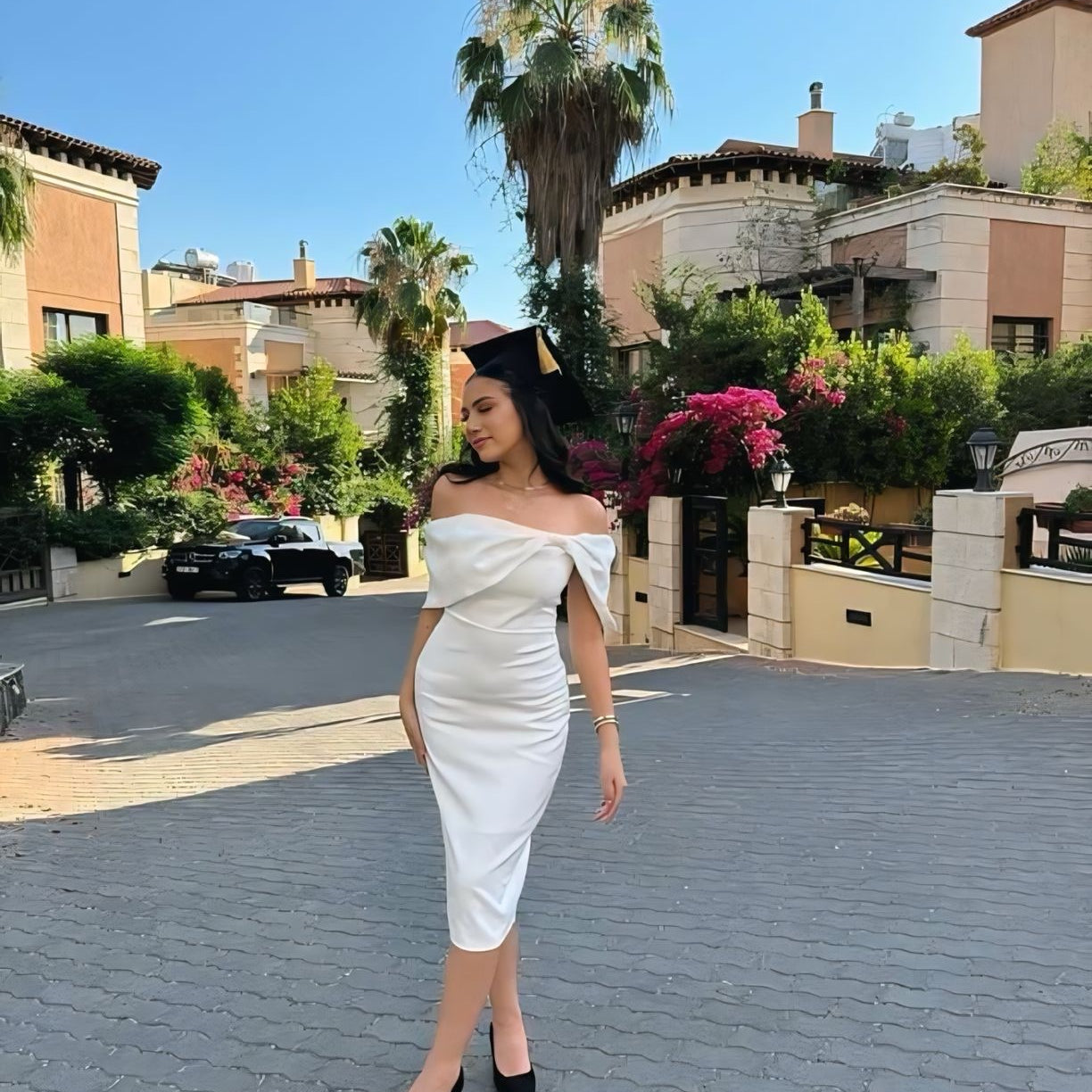 "فستان التخرج مذهل! المقاس لا تشوبه شائبة، والتصميم أنيق للغاية، والنسيج الأبيض يبدو رائعًا للغاية. لقد شعرت بالدهشة في ذلك!