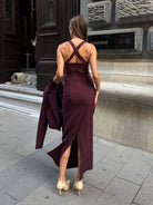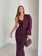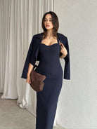 2pcs Sleeveless Crisscross Back Bodycon Dress & Crop Long Sleeve Blazer