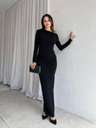 Asymmetrical Neck Long Sleeve Twist Waist Decor Bodycon Dress