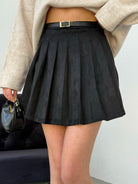 تنورة عالية الخصر من جلد الغزال بحزام وثنيات