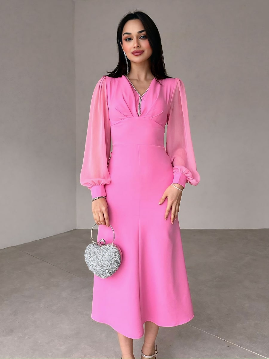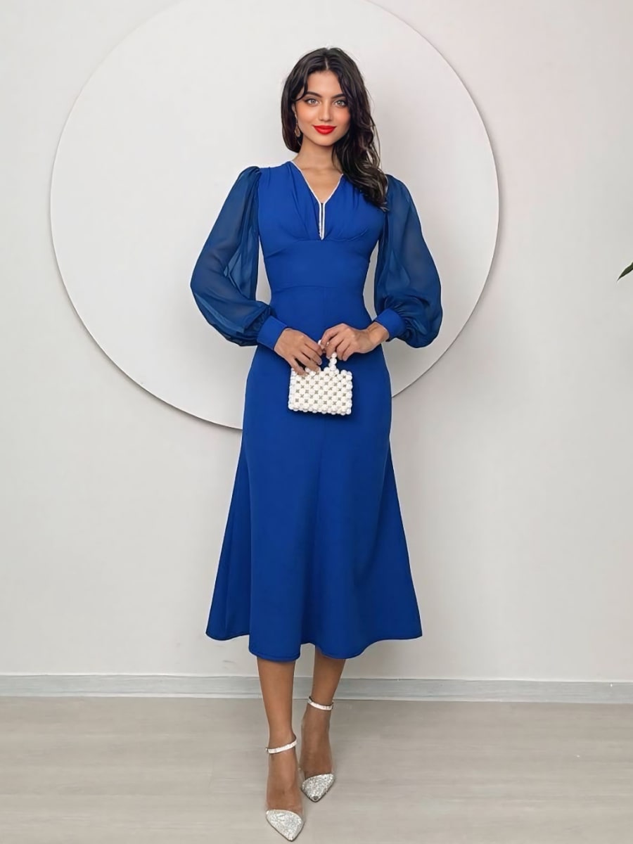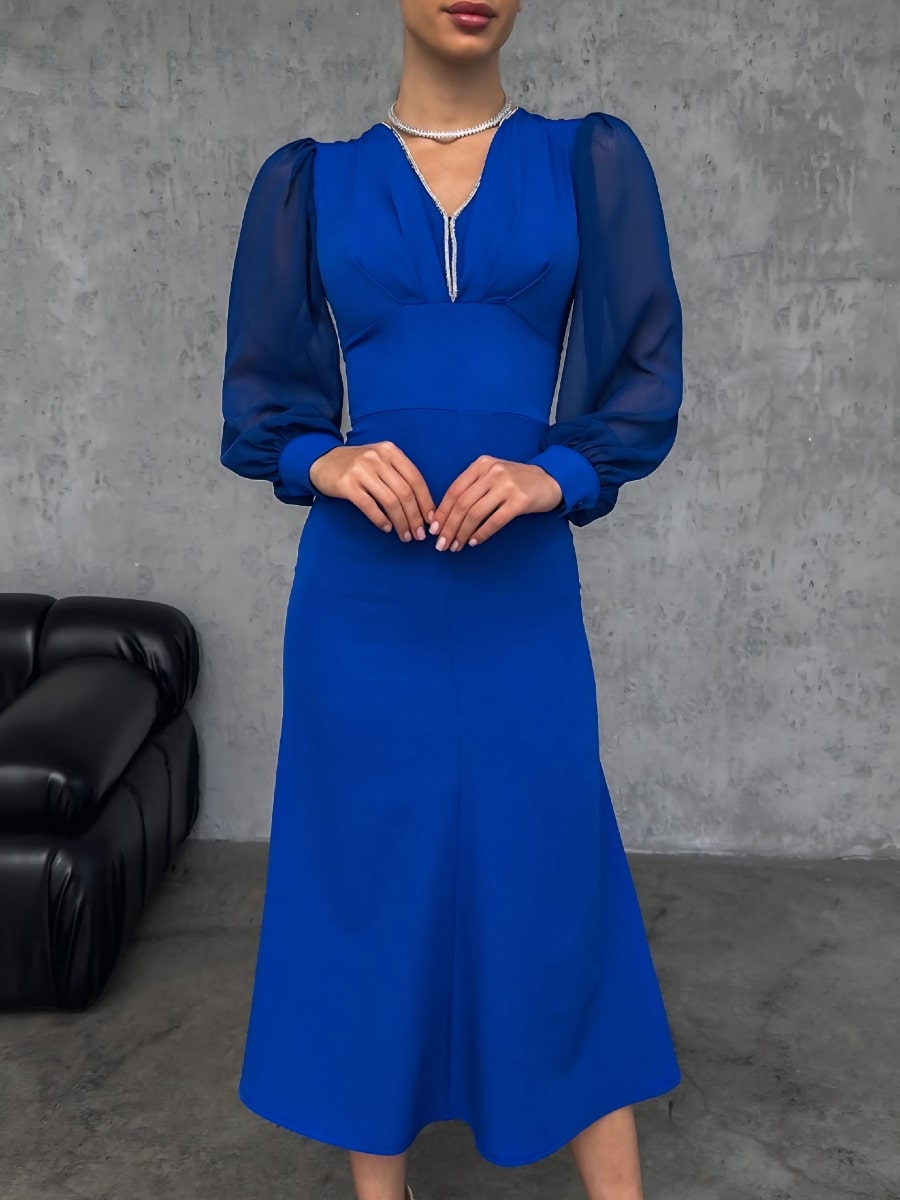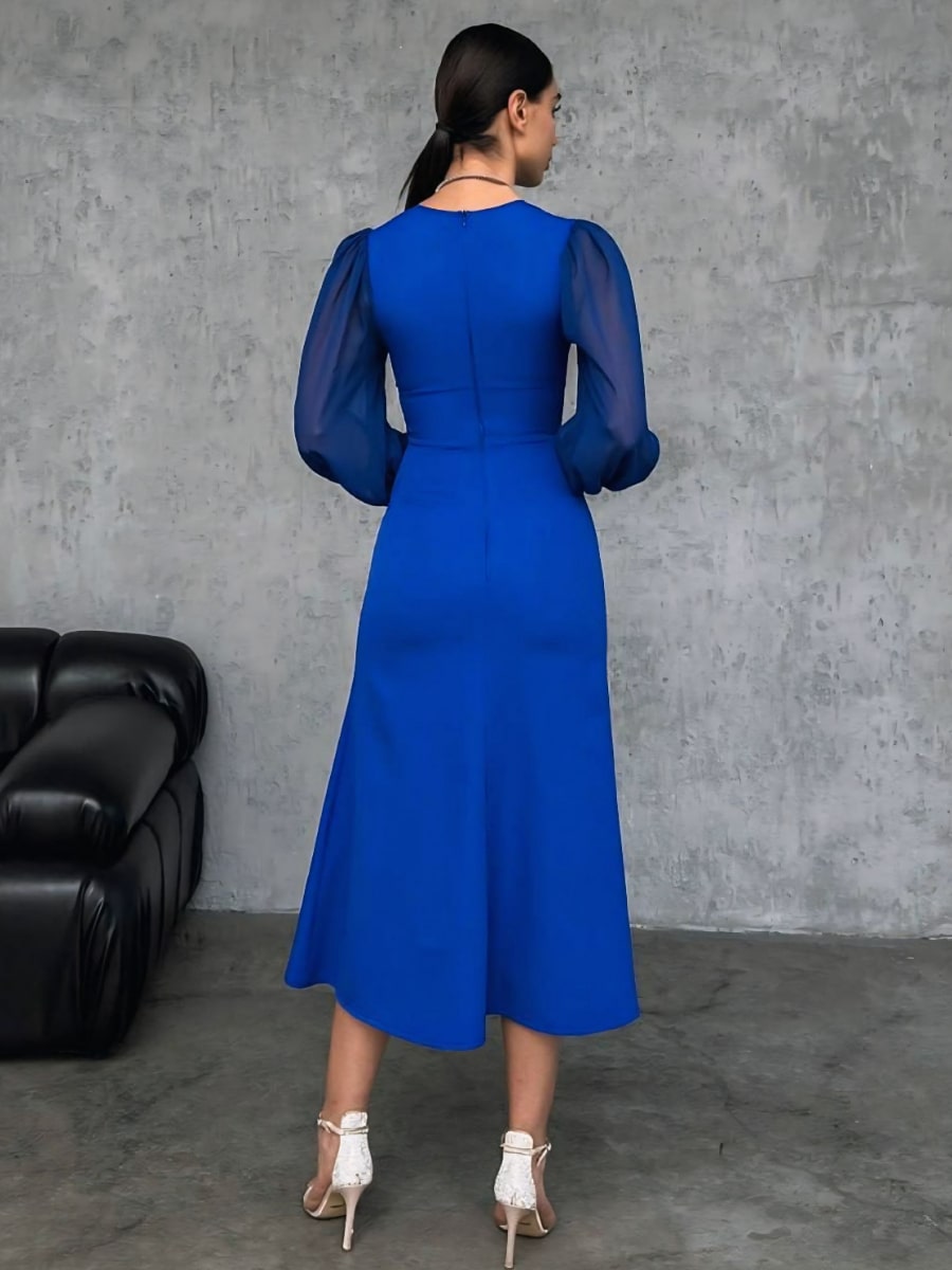 فستان شبكي متباين بأكمام فانوس