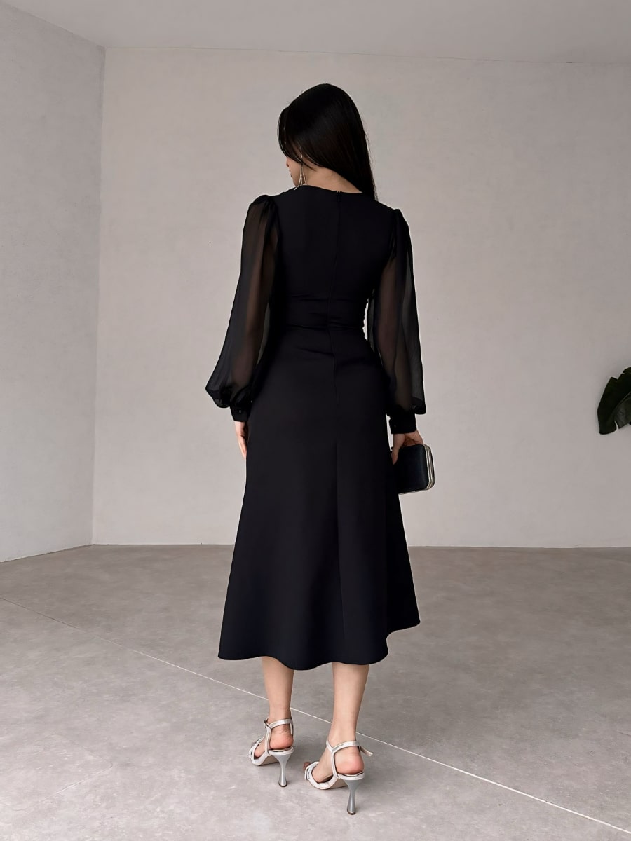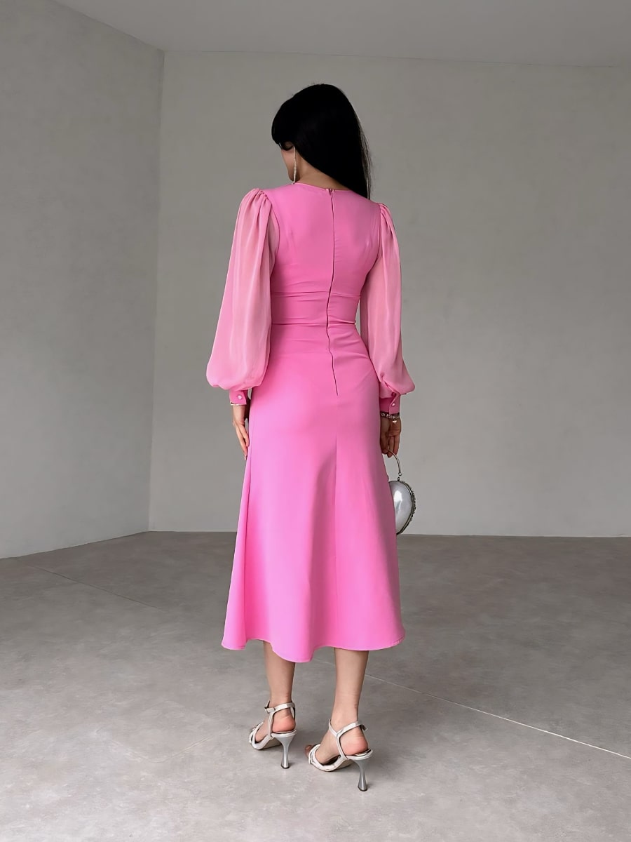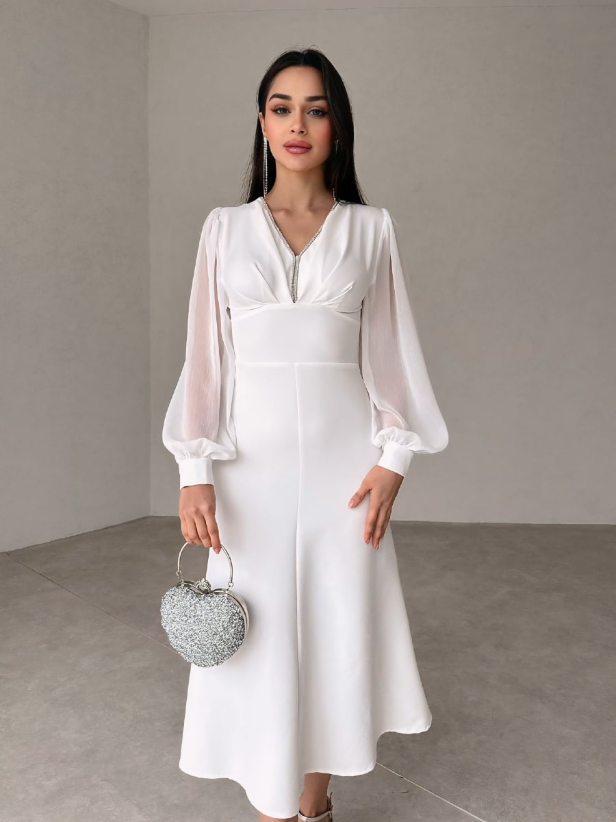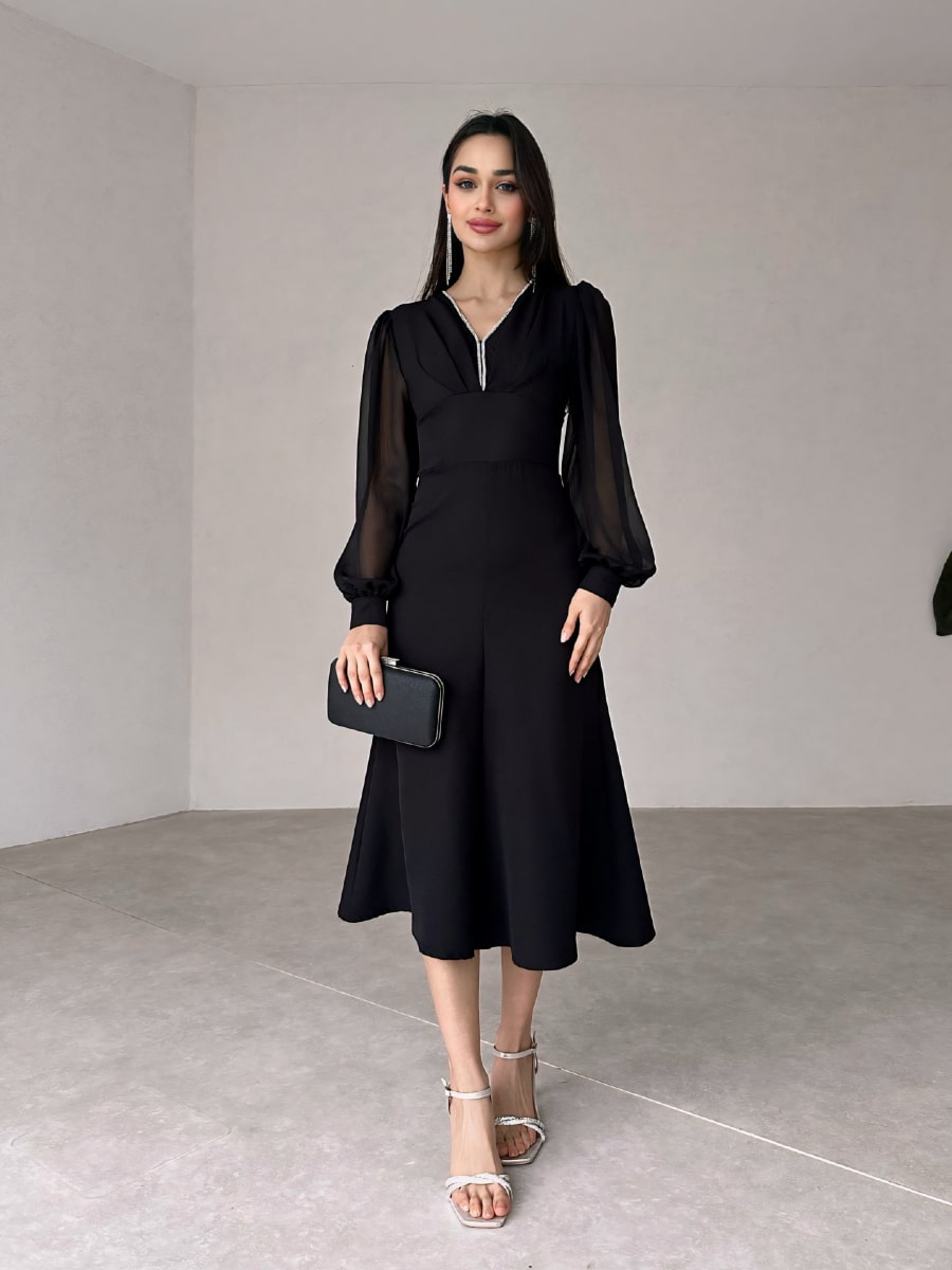 فستان شبكي متباين بأكمام فانوس