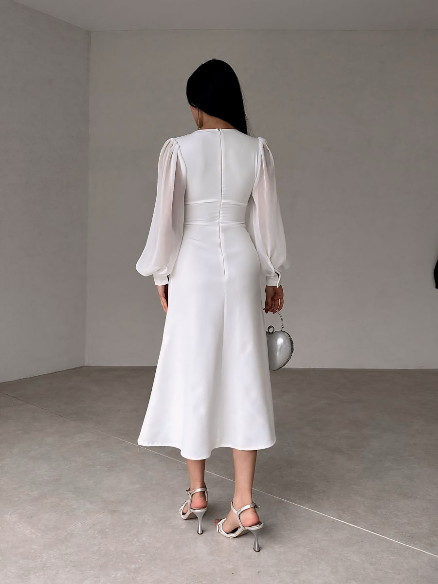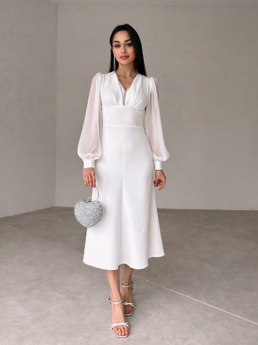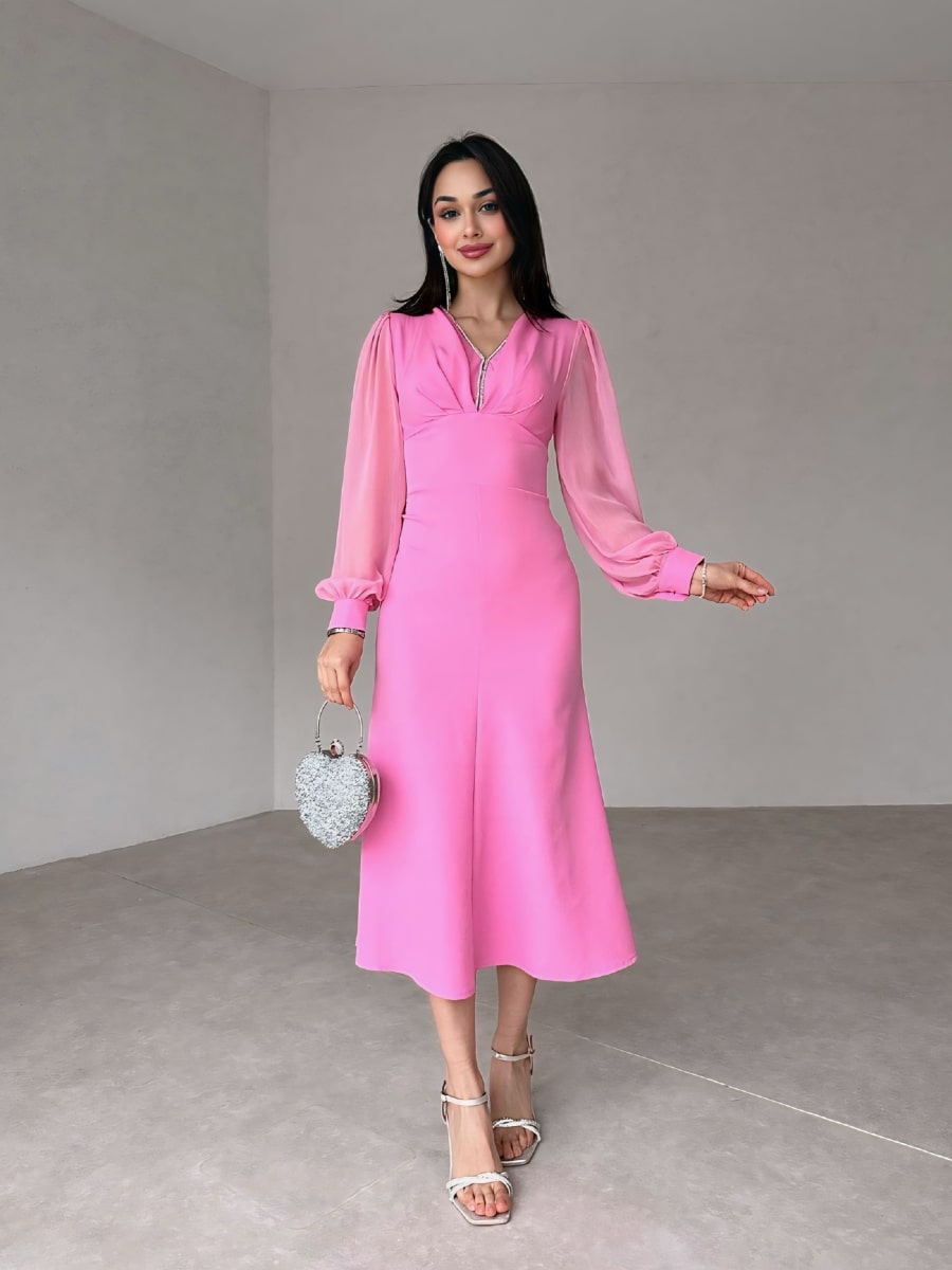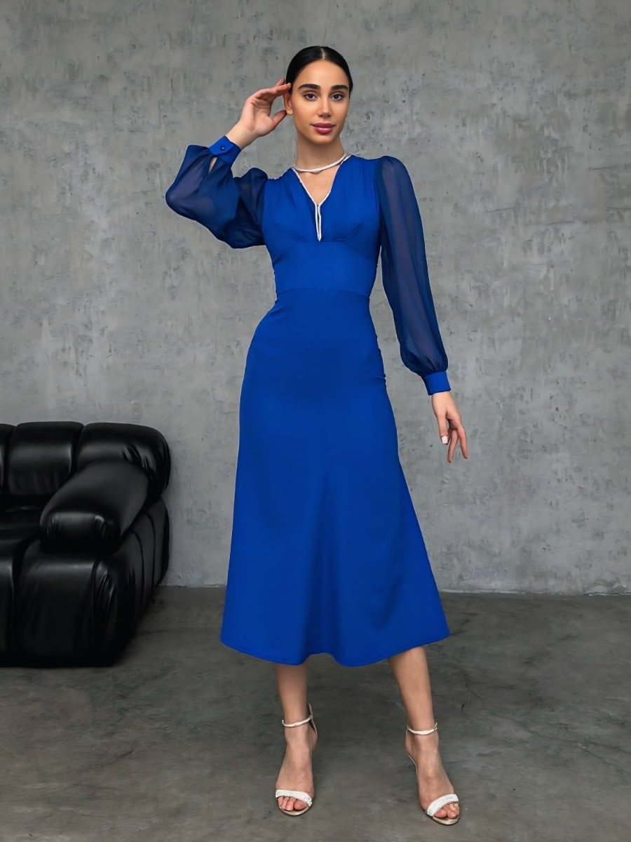 فستان شبكي متباين بأكمام فانوس