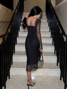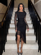 Elegant Black Asymmetrical Ruffle Long Sleeve Dress