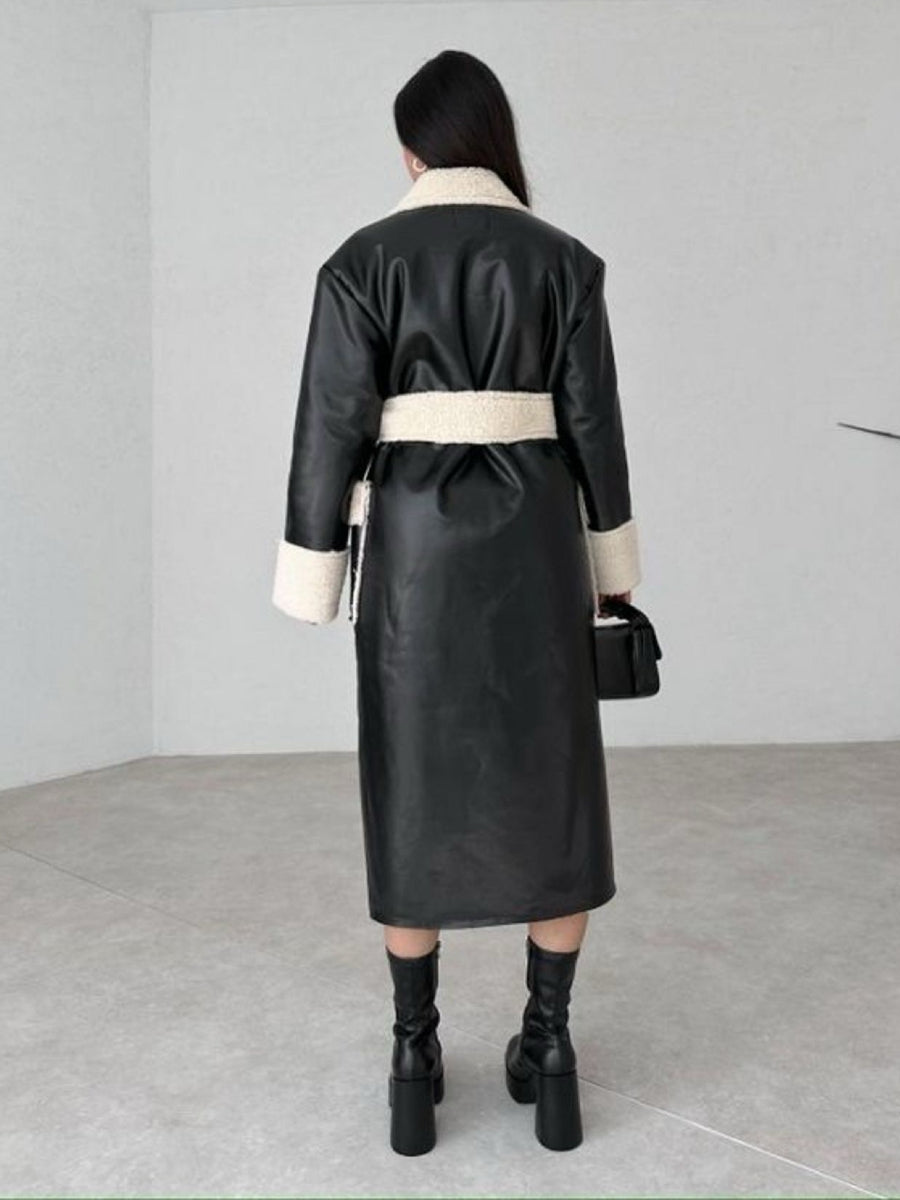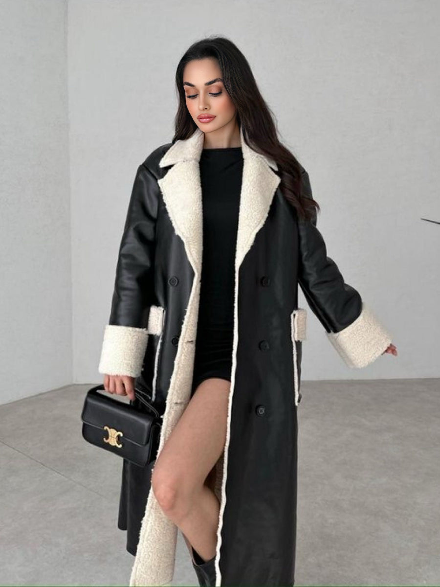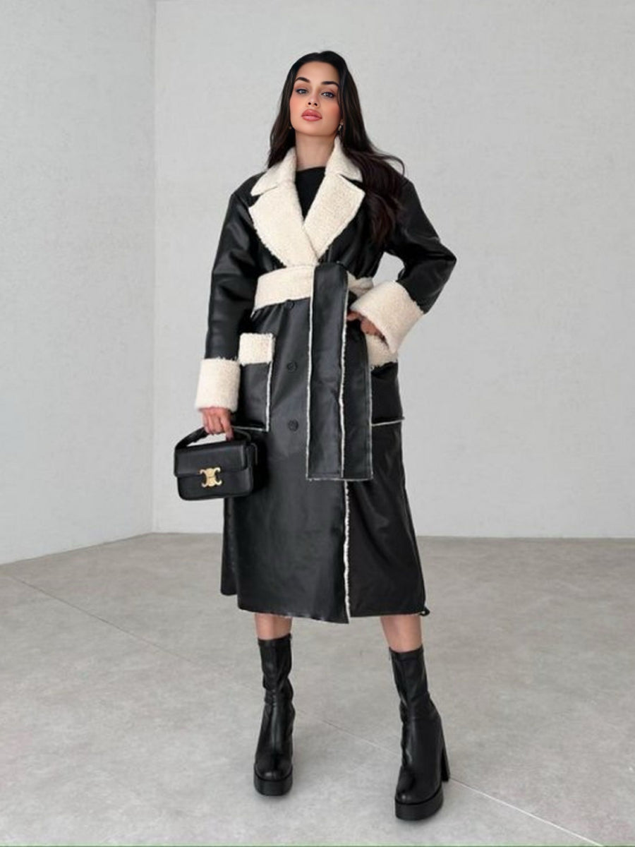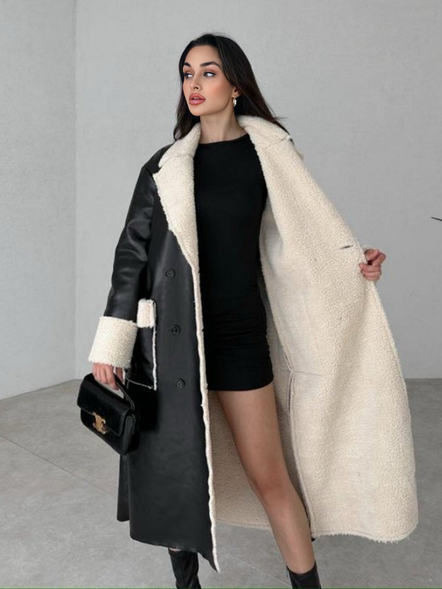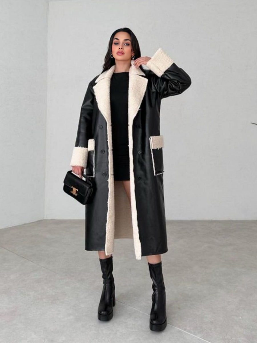 Contrast Trim Long Sleeve Pocket Fluffy Panel Thermal Jacket
