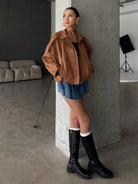 Faux Suede Long Sleeve Single-Breasted Loose Bomber Jacket