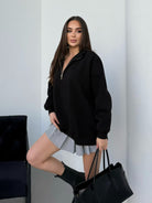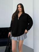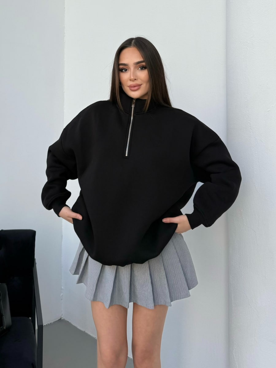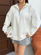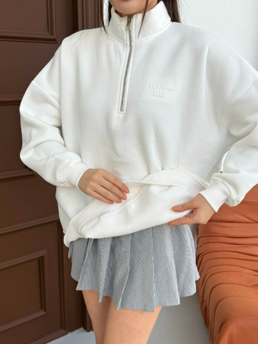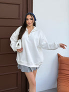 سويت شيرت واسع بسحاب أمامي ربعي، بقصة مريحة