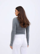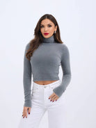 كنزة قصيرة محبوكة ناعمة بياقة عالية