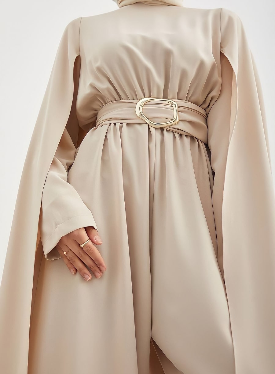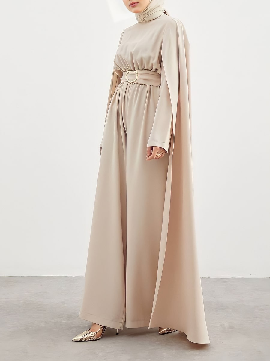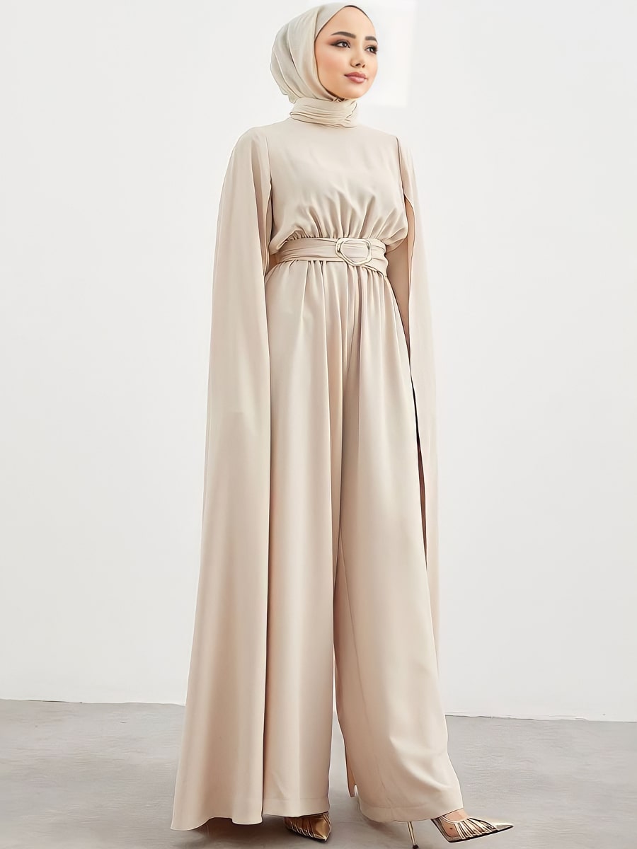 جمبسوت بحزام ورقبة عالية مع عباءة
