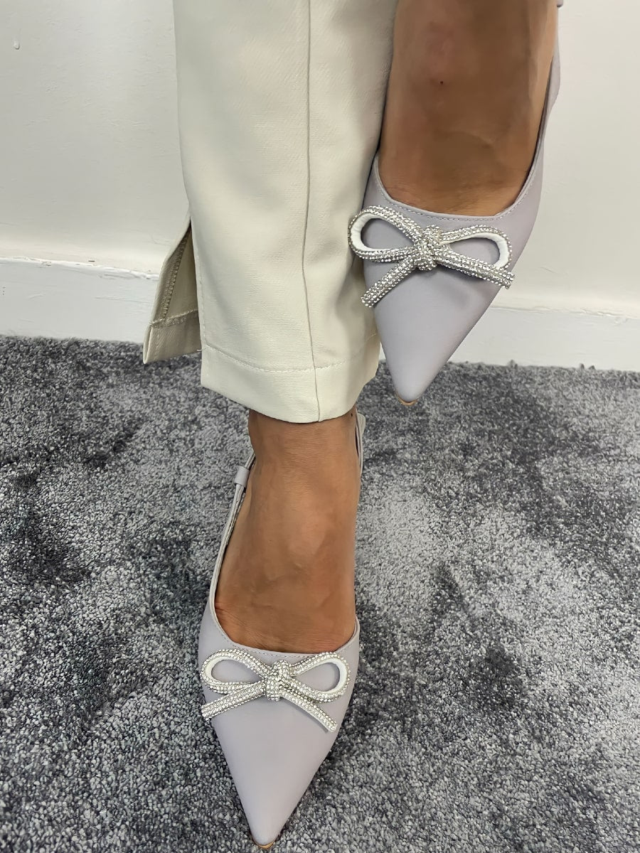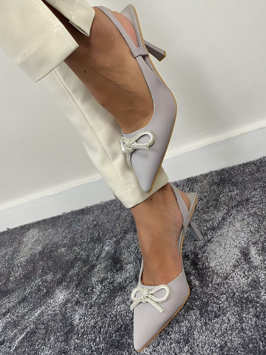 حذاء بكعب عالٍ مفتوح من الخلف ومزين بفيونكة