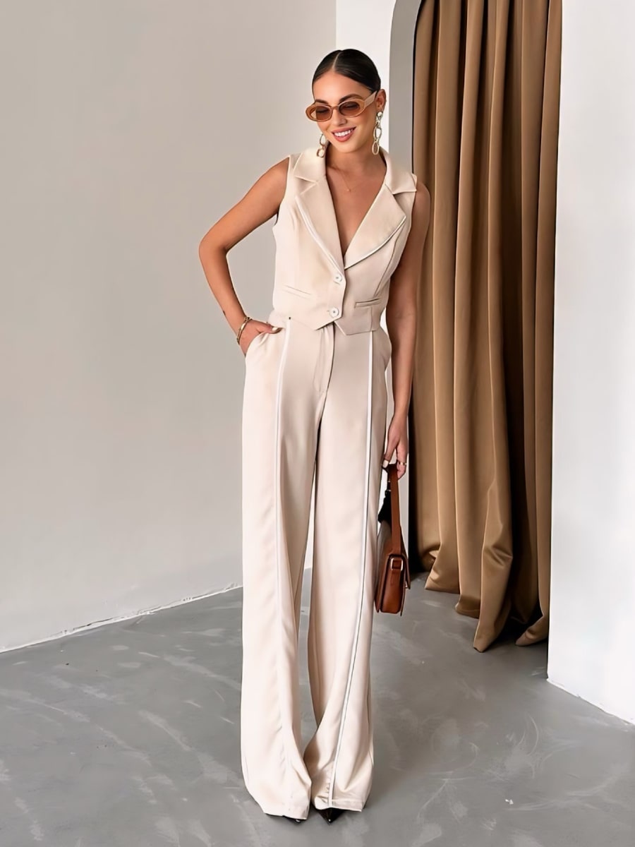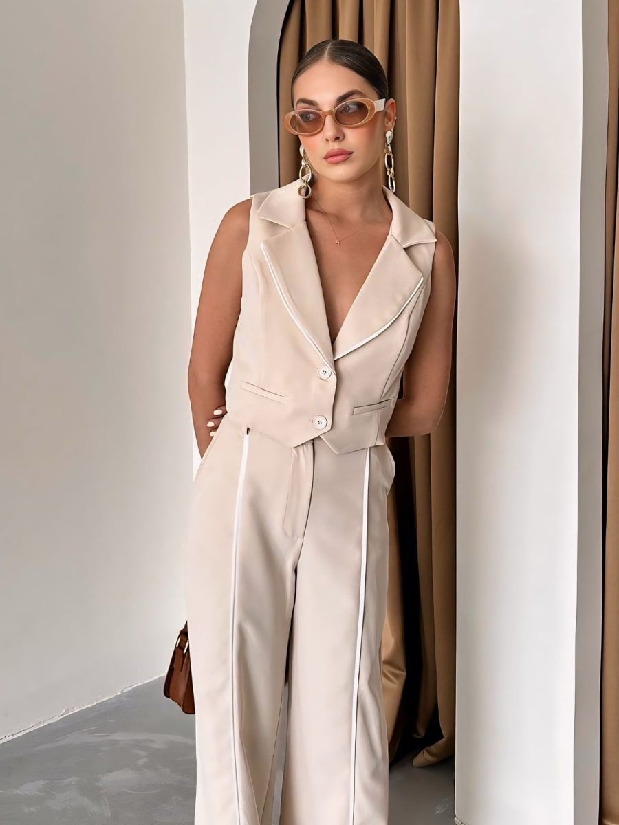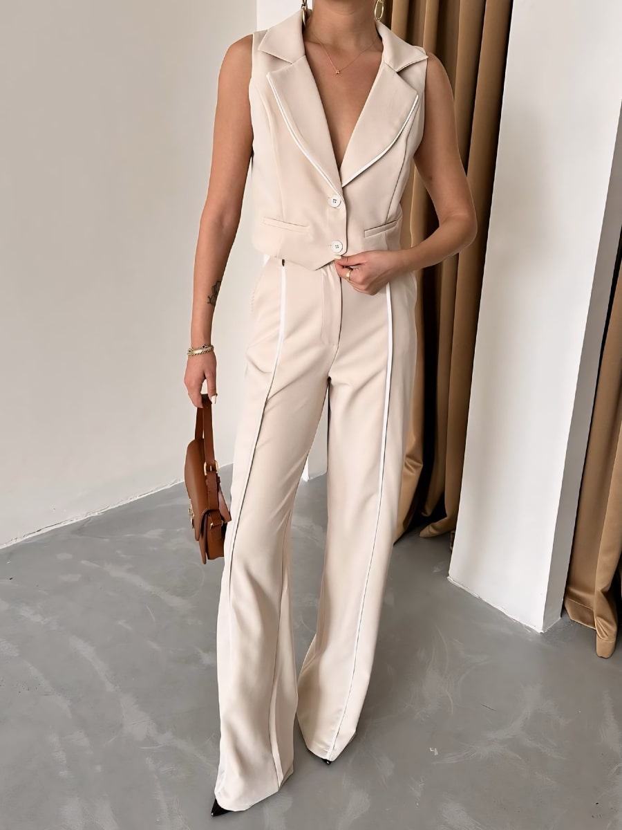 طقم سترة وبنطلون طويل بقصّة متباينة الألوان
