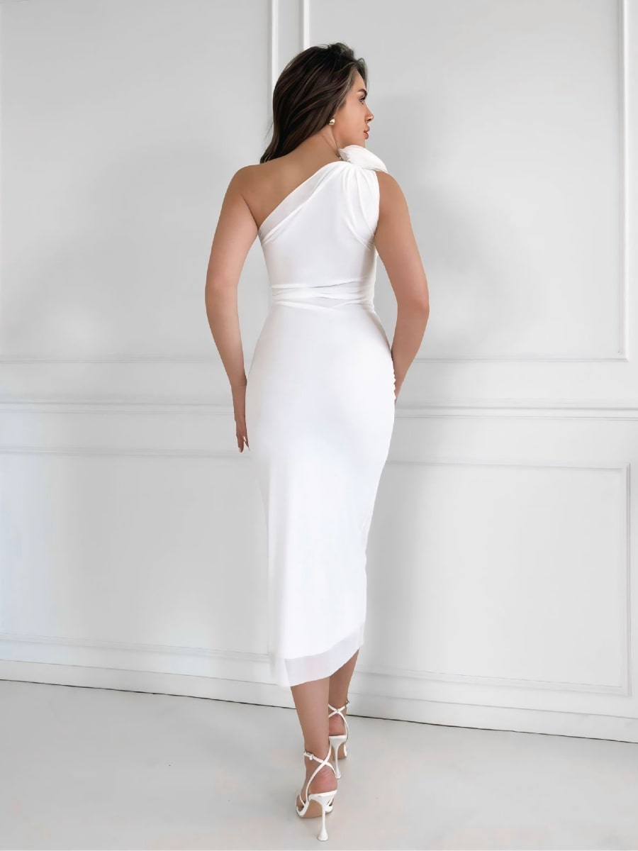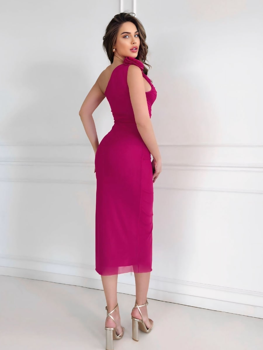 فستان ضيق بكتف واحد وتفاصيل زهور