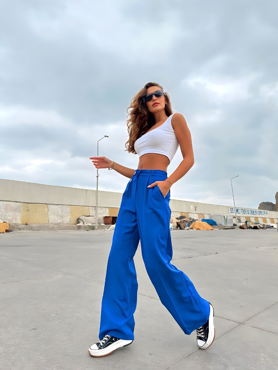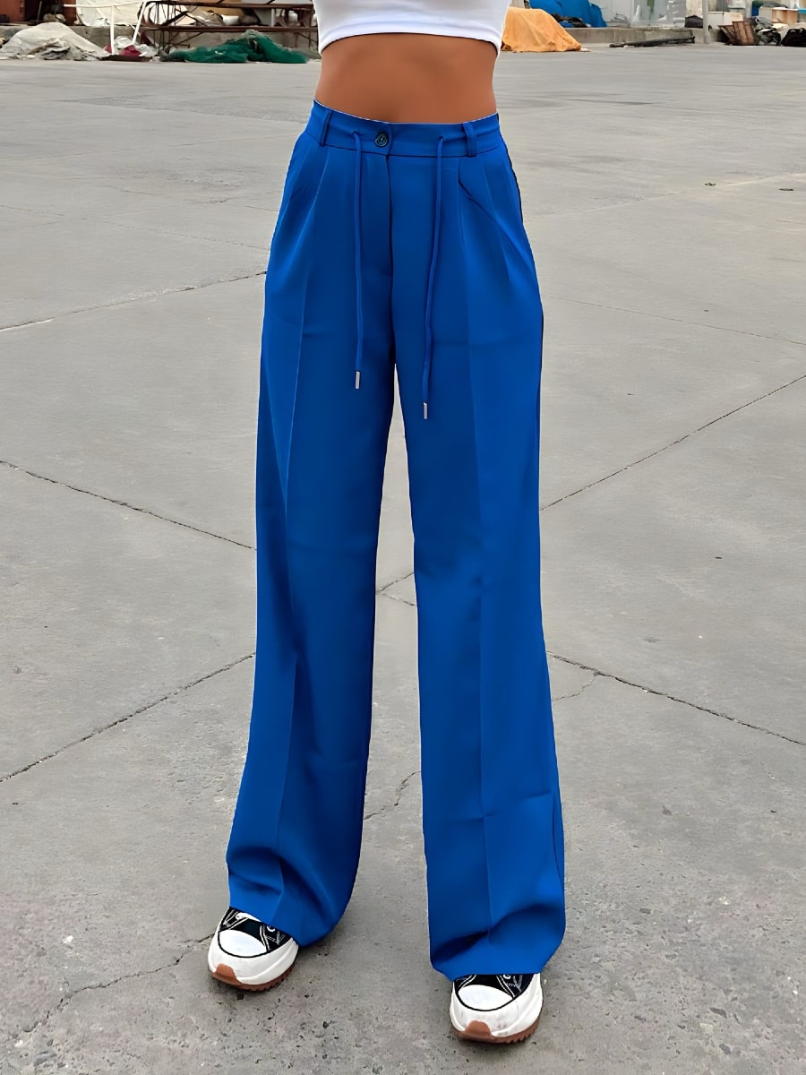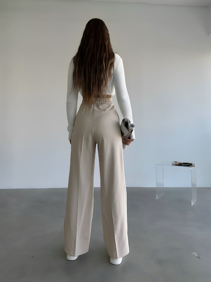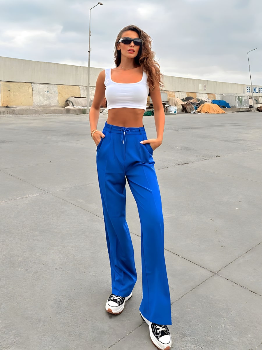 بنطلون بدلة واسع الساق بعقدة أمامية وخصر مرتفع