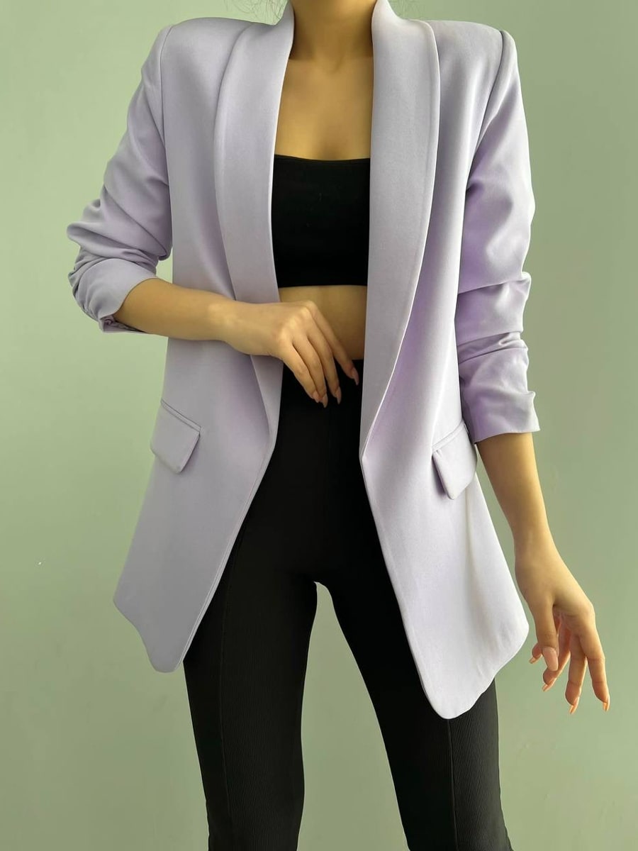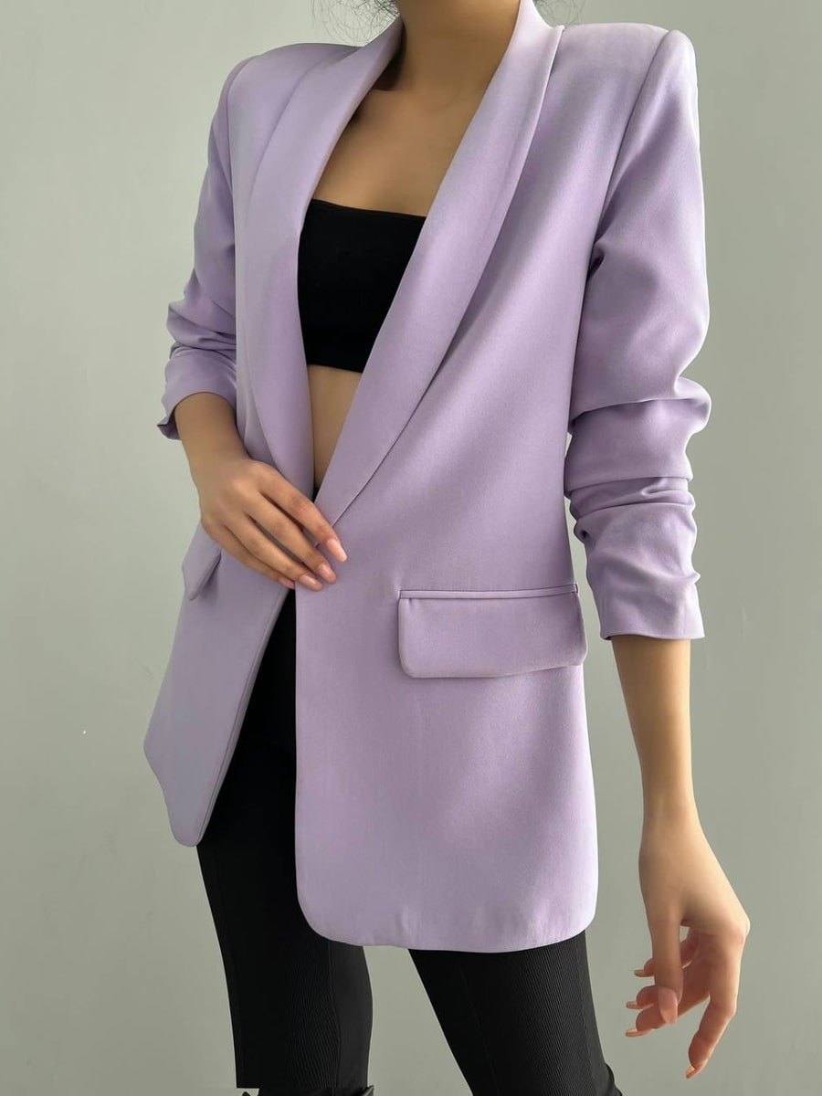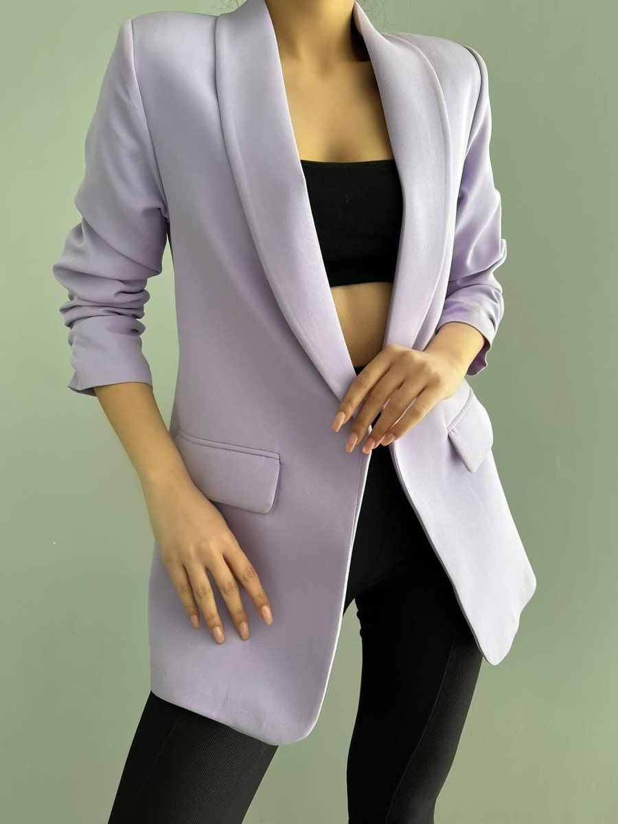 بليزر بياقة شال وأكمام مجمعة وتفاصيل غطاء