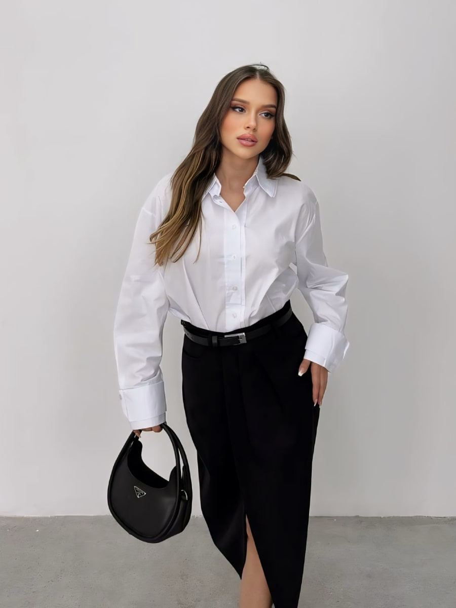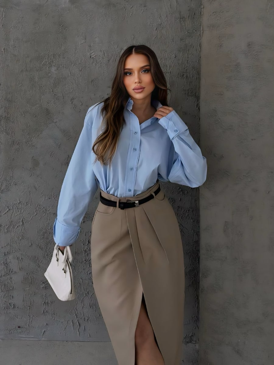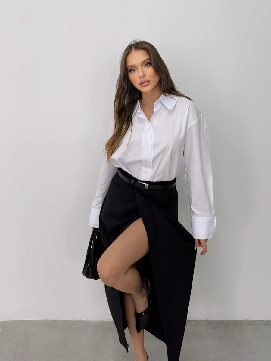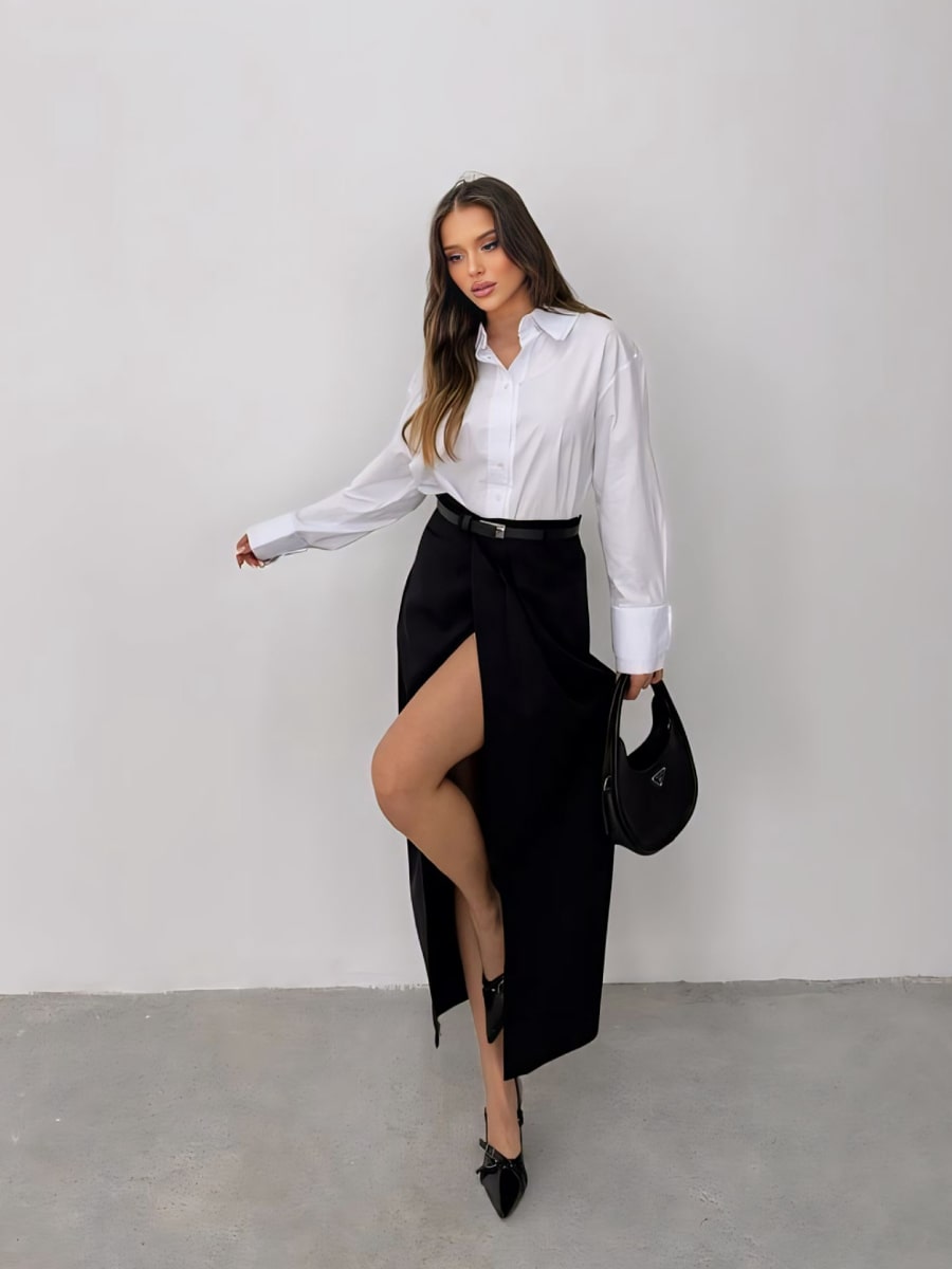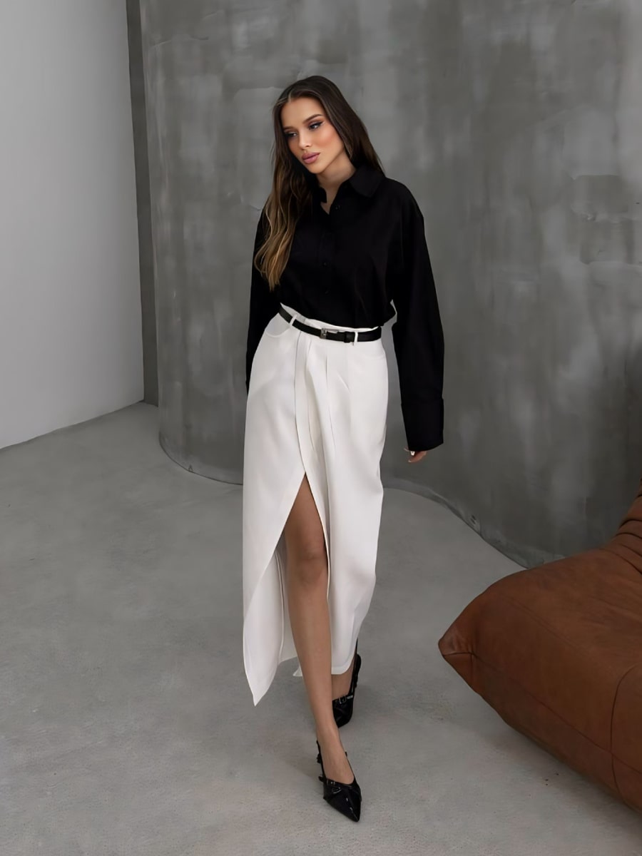تنورة بلون سادة ملفوفة ومقسمة وحزام