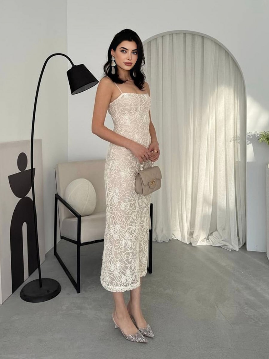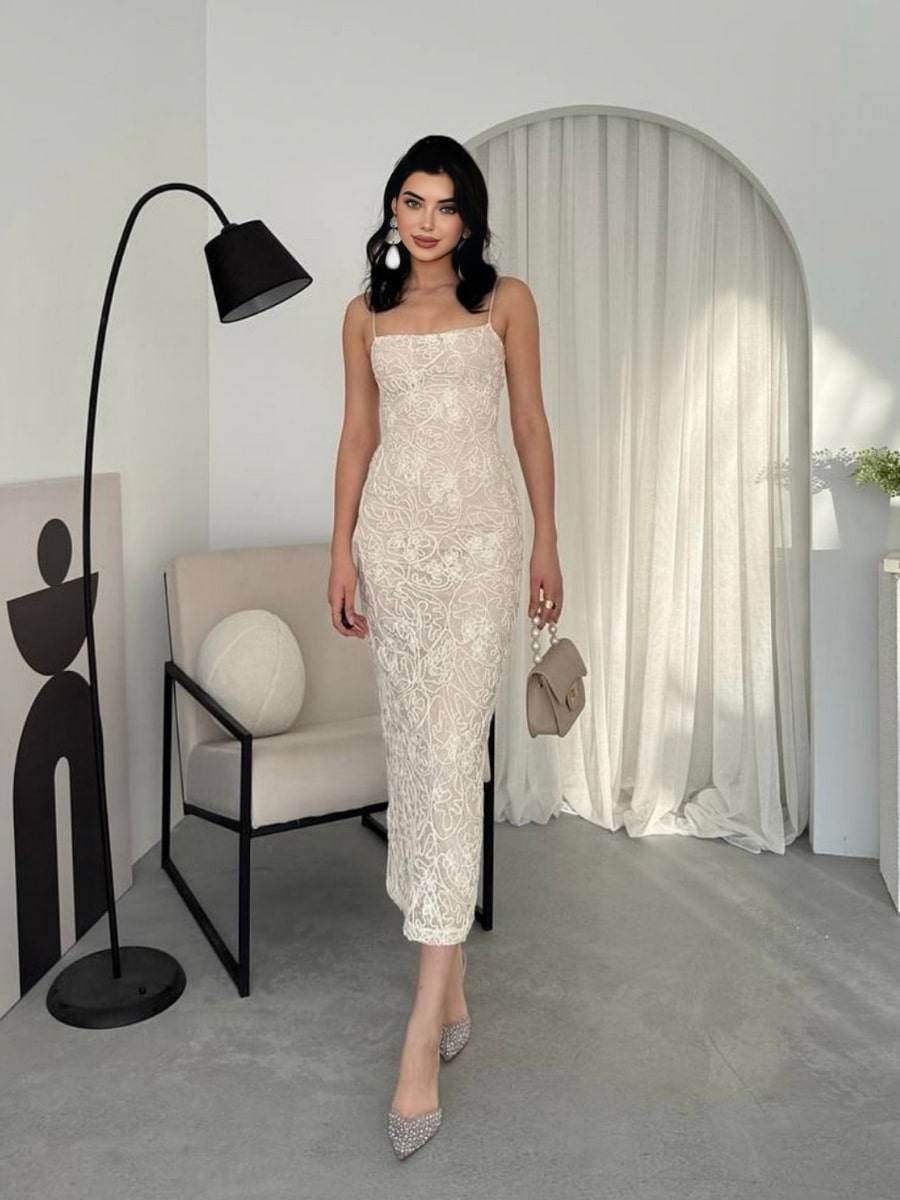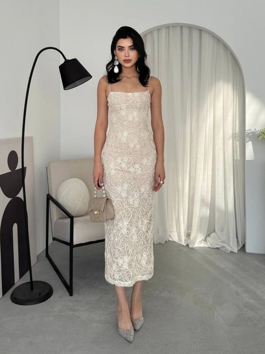 Elegant Jacquard Textured Cami Bodycon Dress