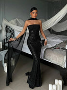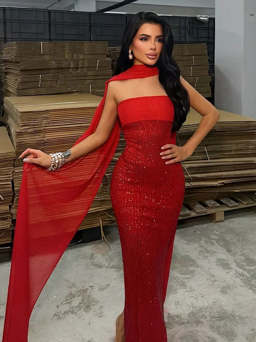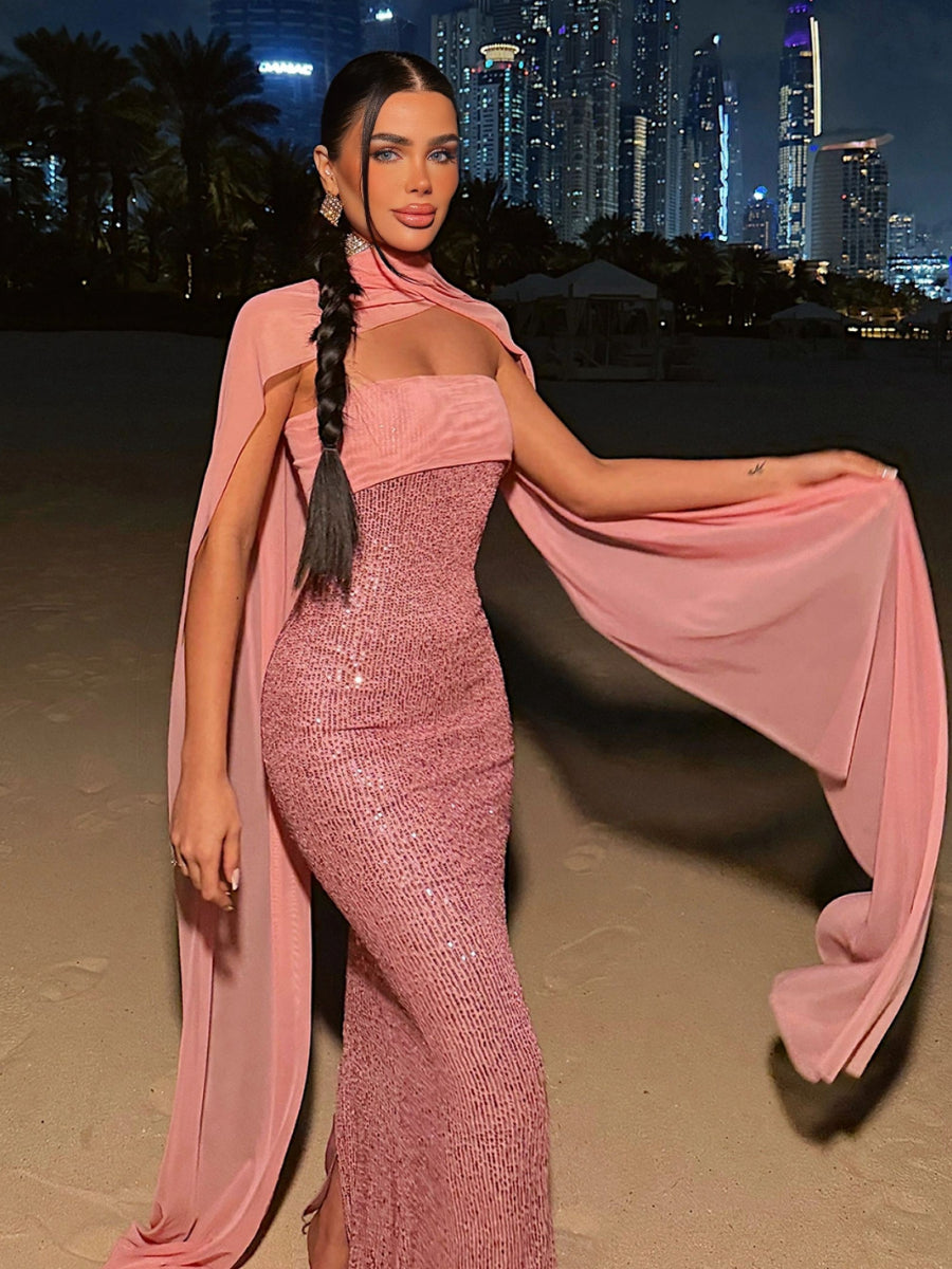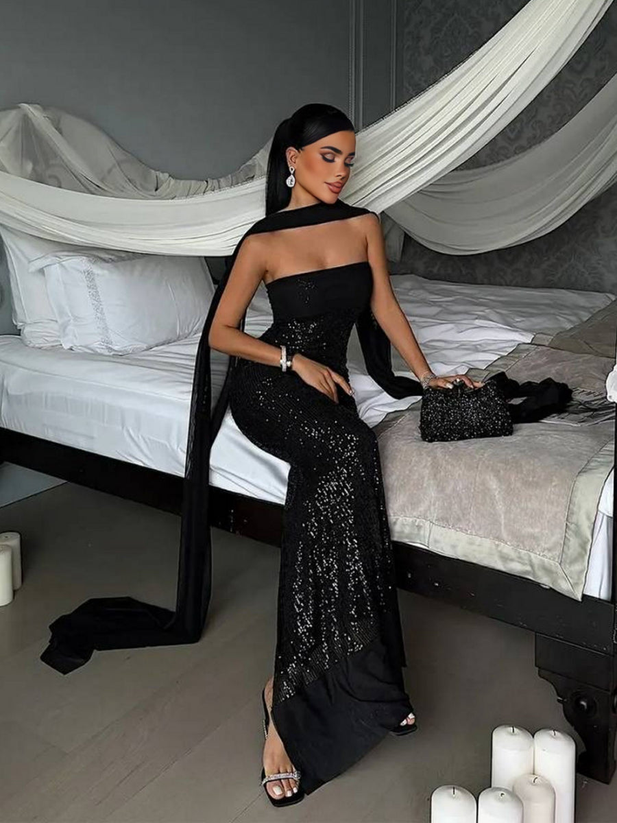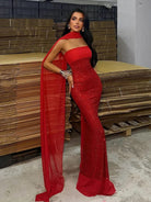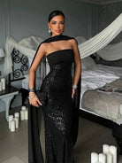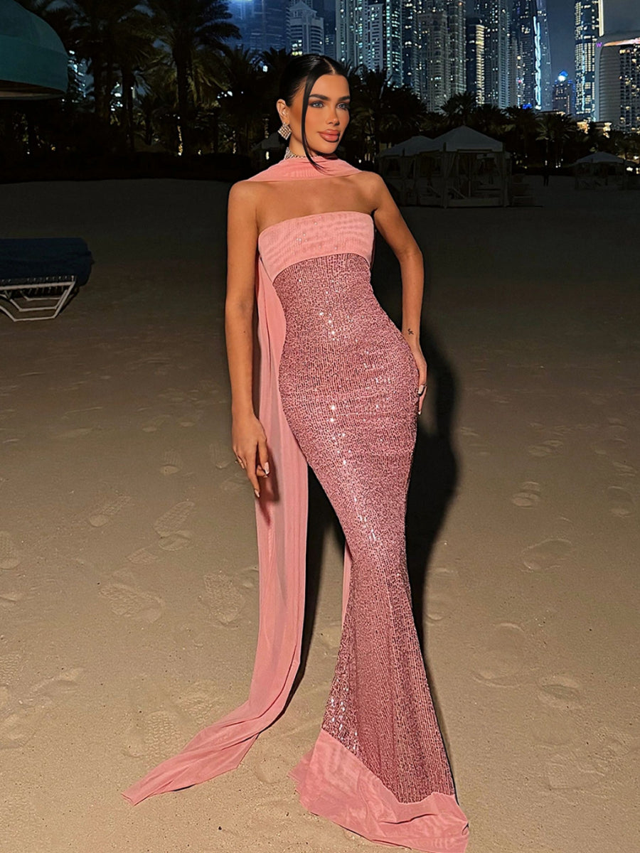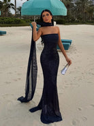 Strapless Sequins Mermaid Dress With Scarf