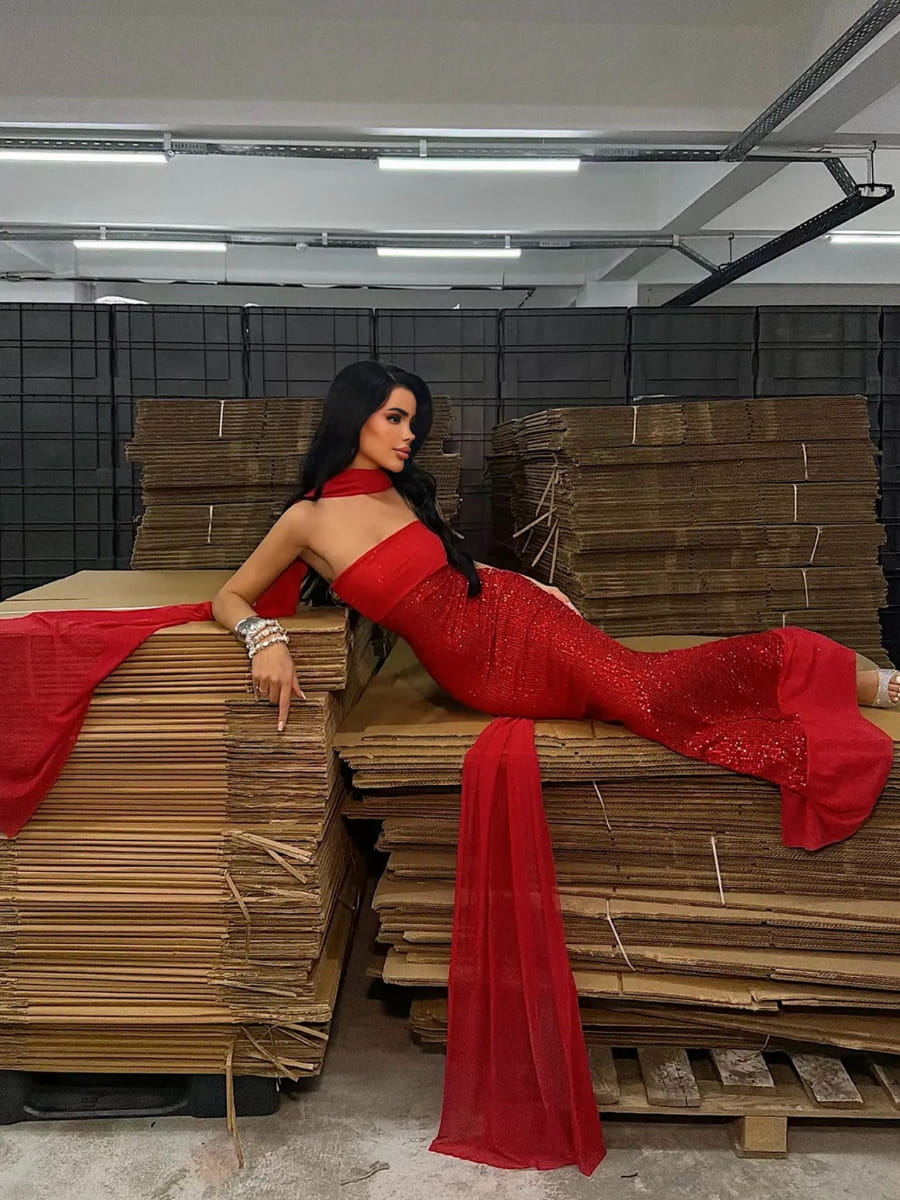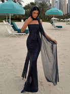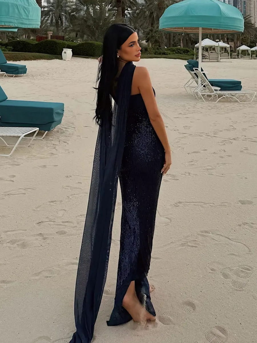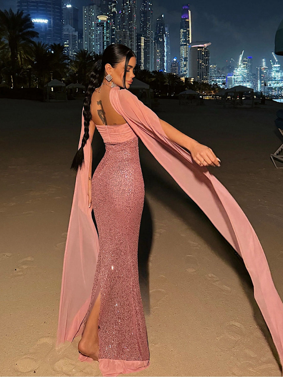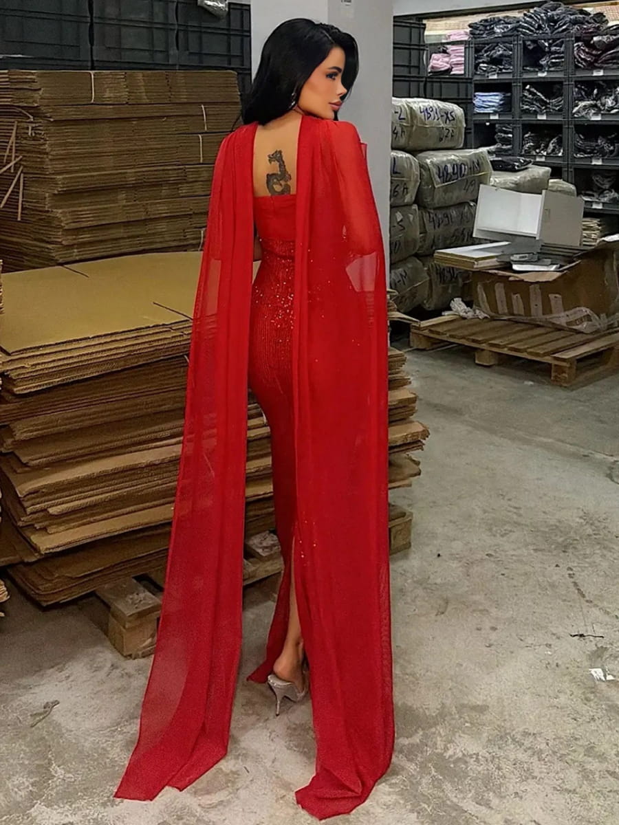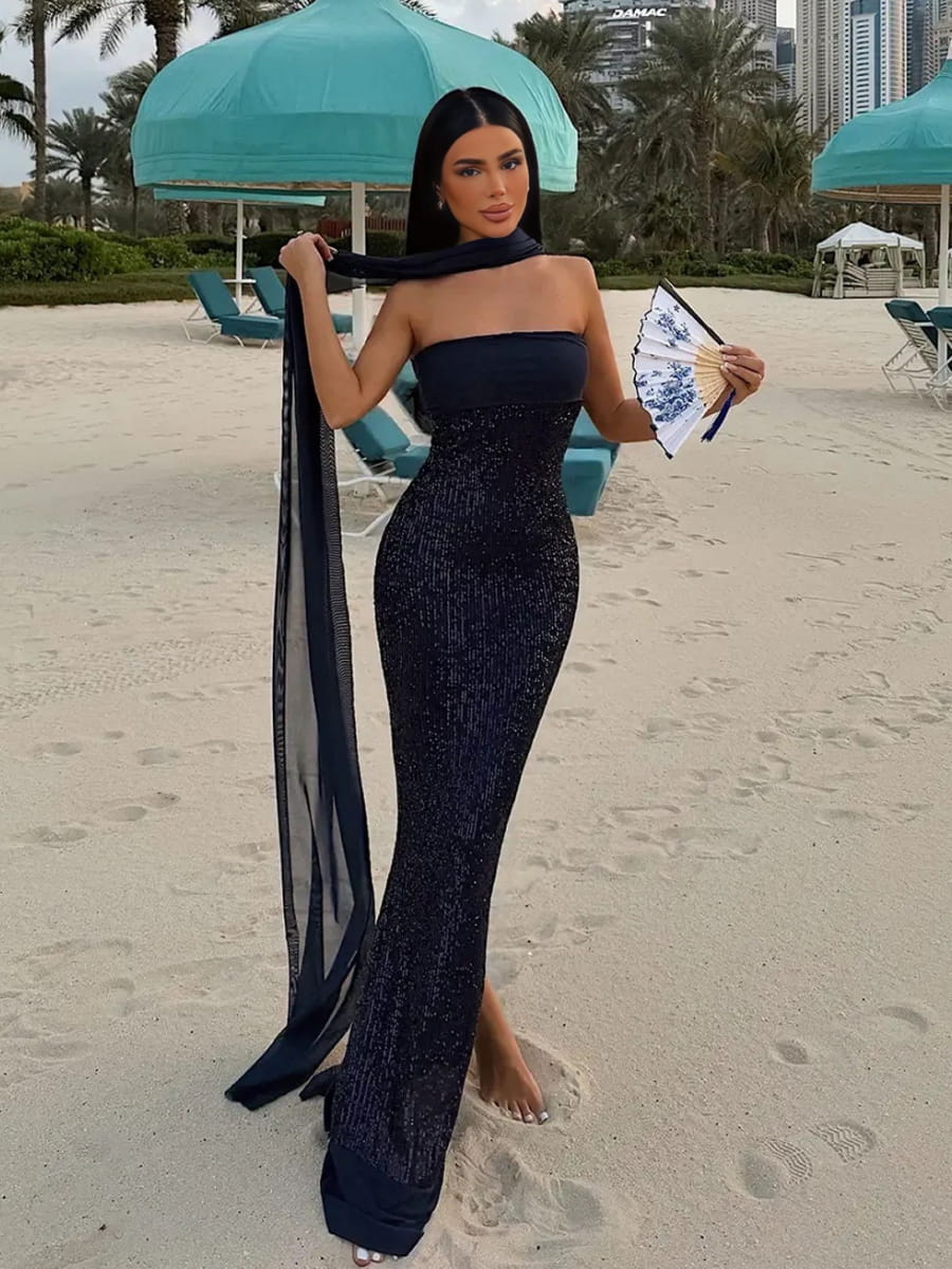 Strapless Sequins Mermaid Dress With Scarf