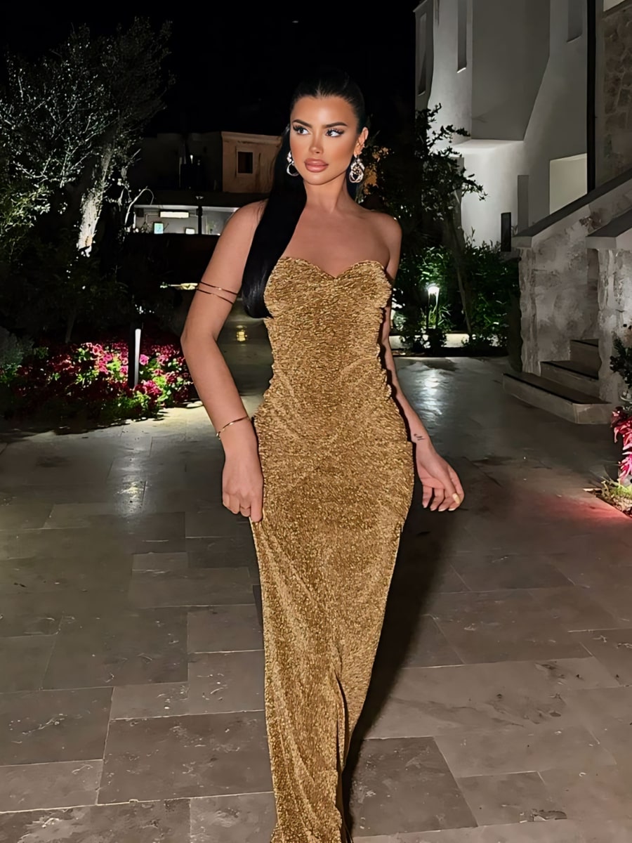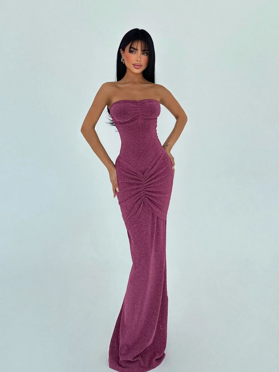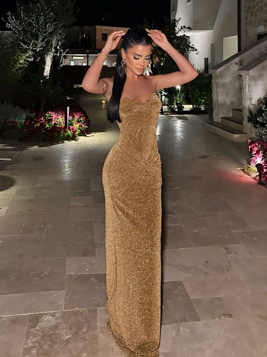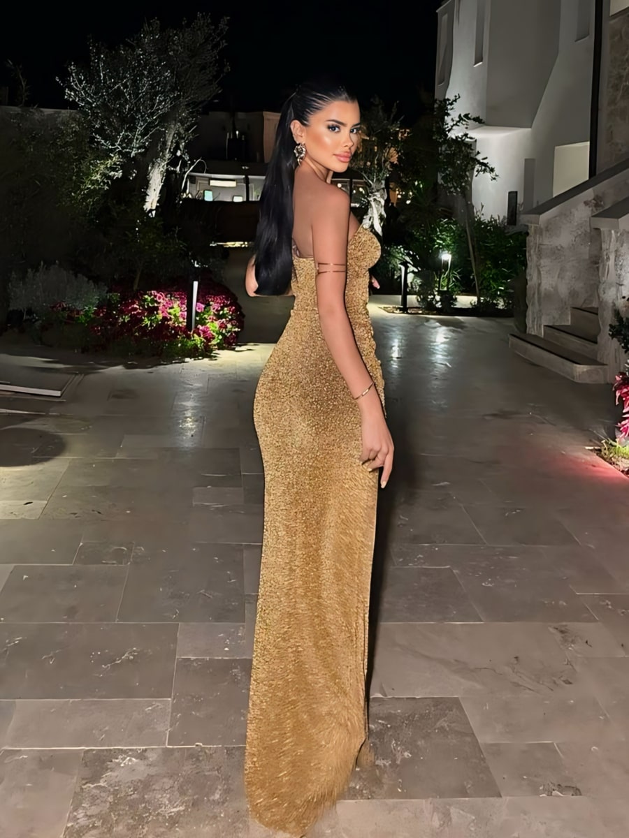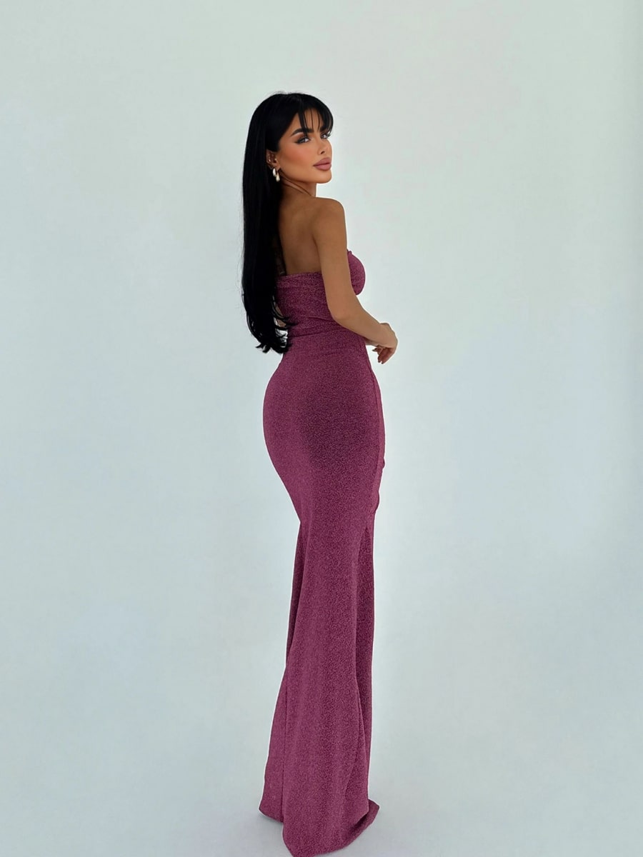 Two-Tone Glitter Ombre Strapless Slit Front Gown