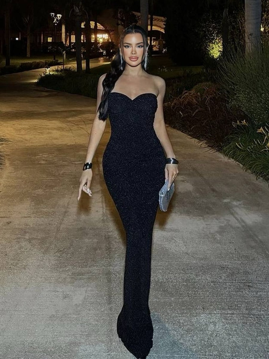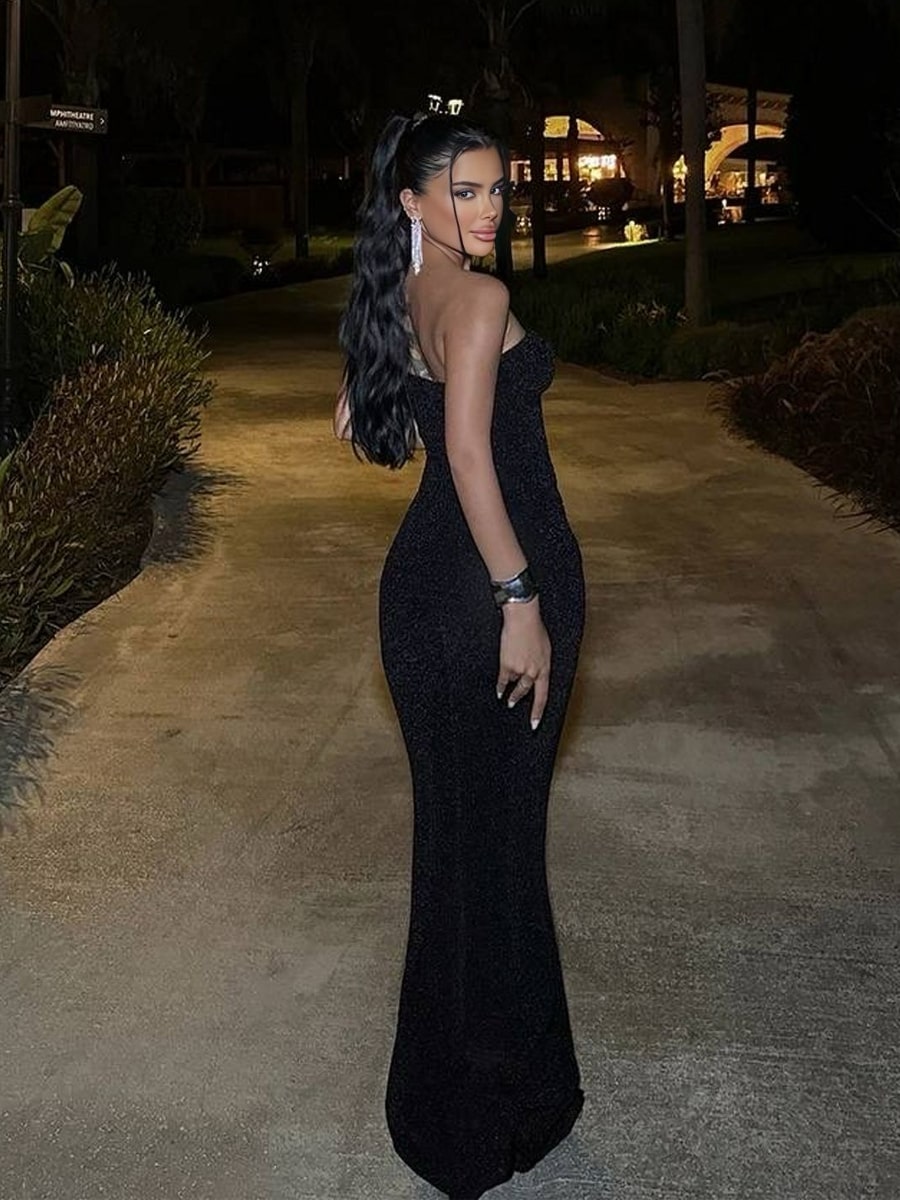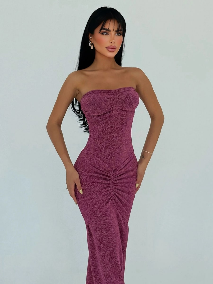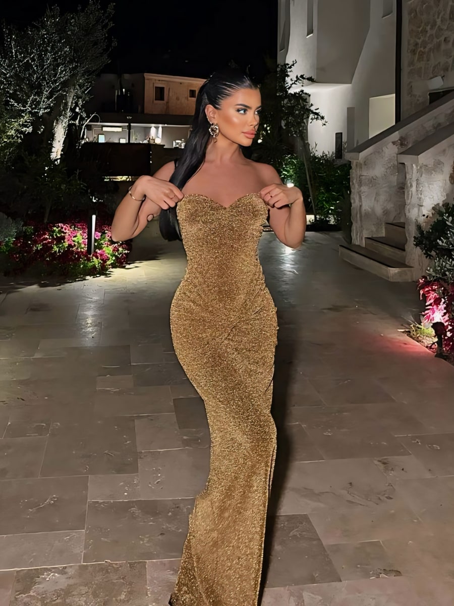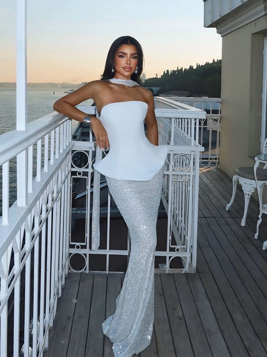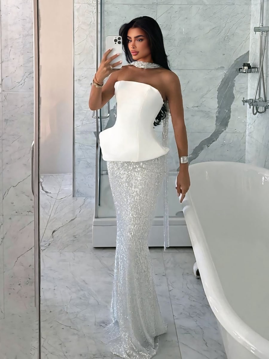 Two-Tone Glitter Ombre Strapless Slit Front Gown