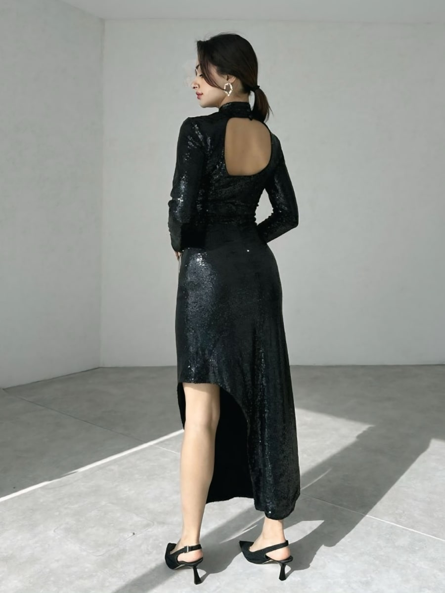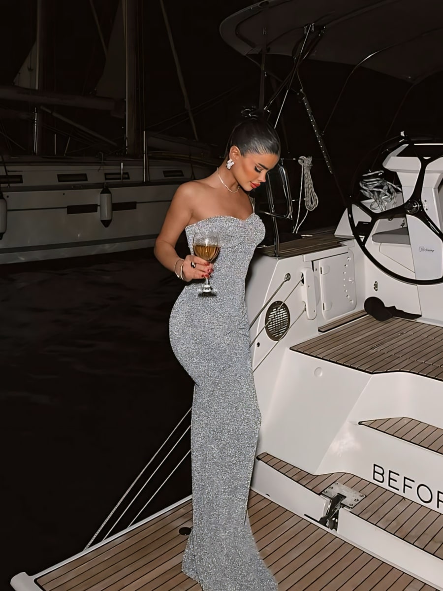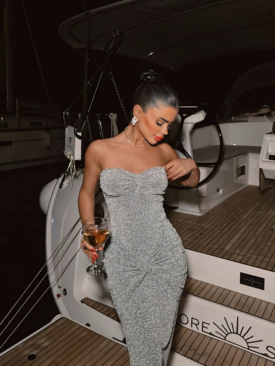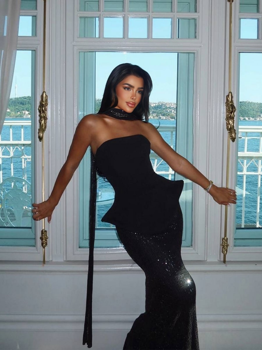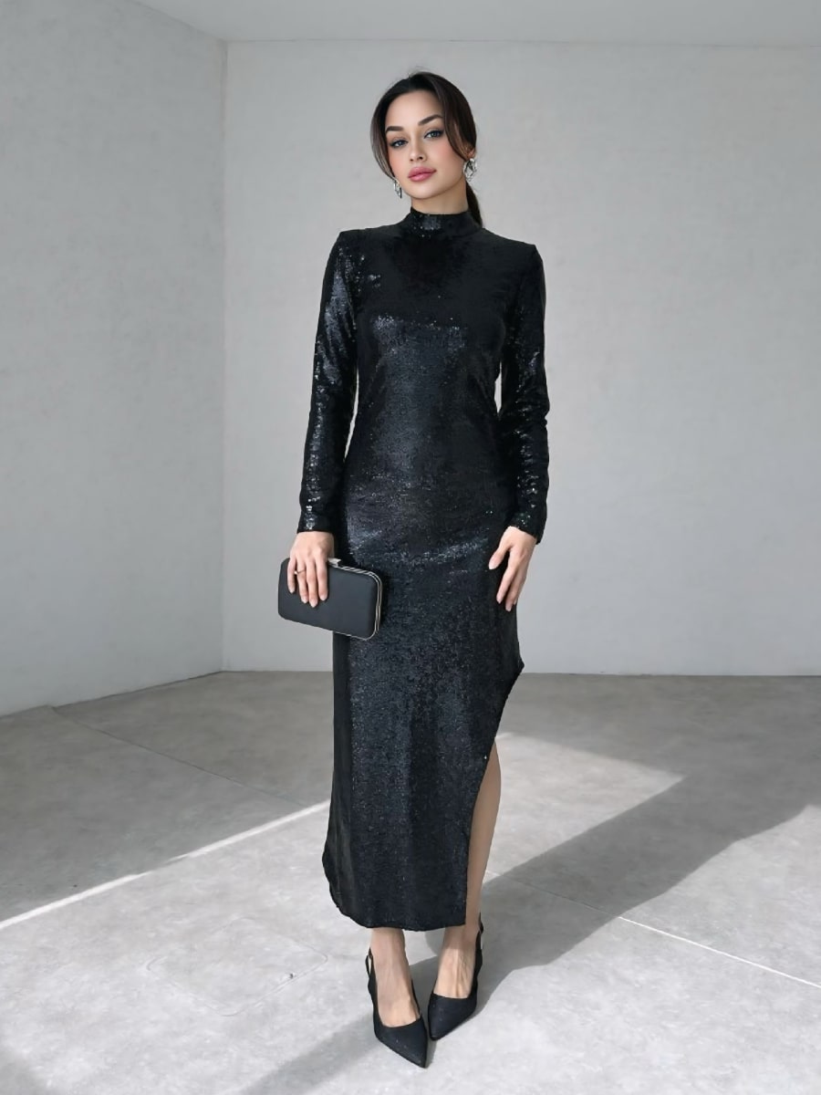 Two-Tone Glitter Ombre Strapless Slit Front Gown
