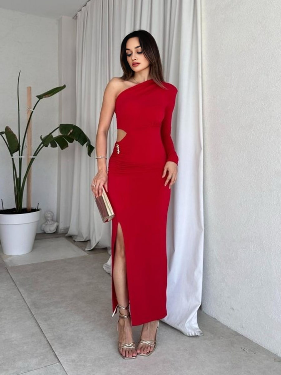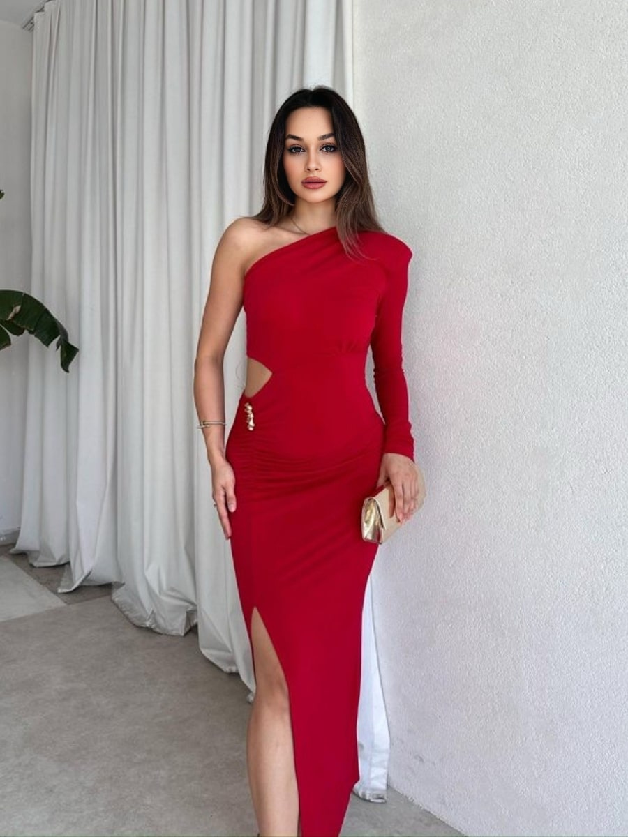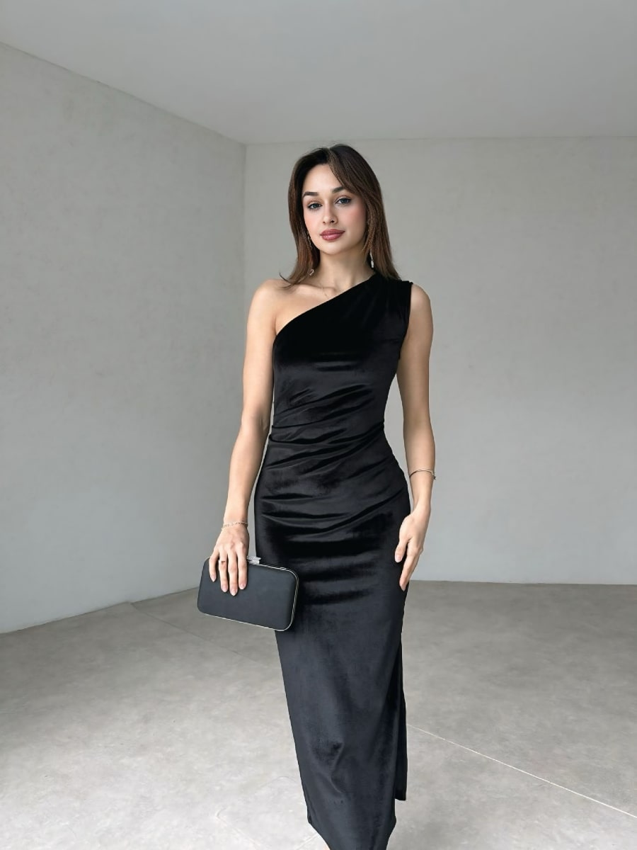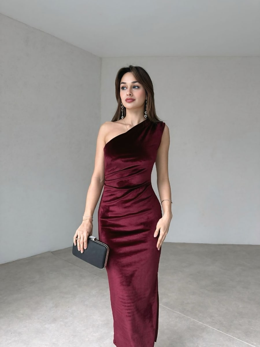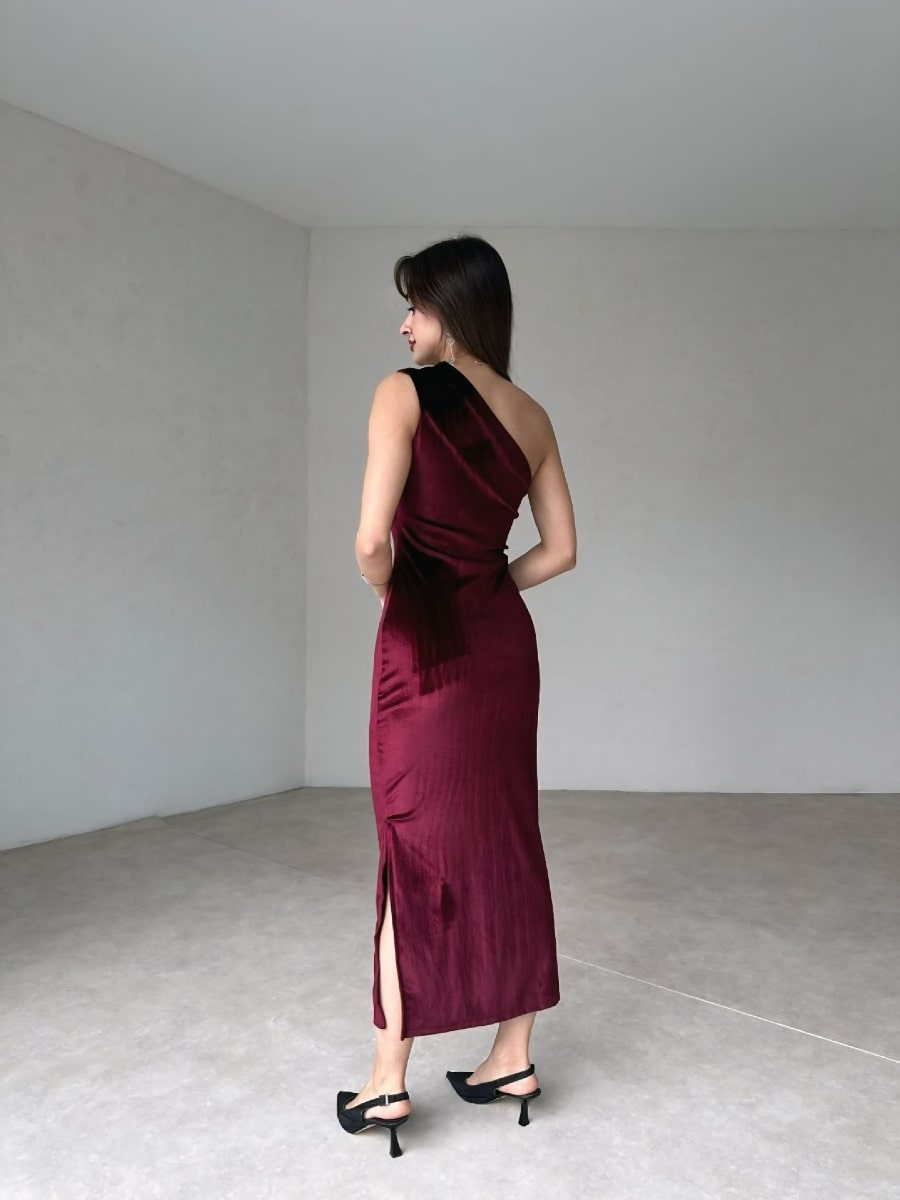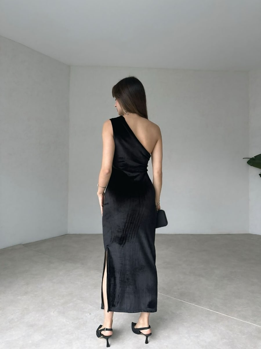 Two-Tone Glitter Ombre Strapless Slit Front Gown
