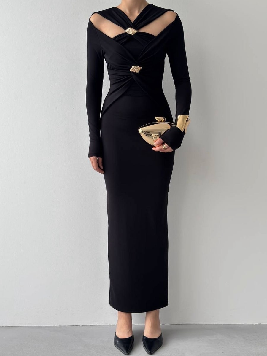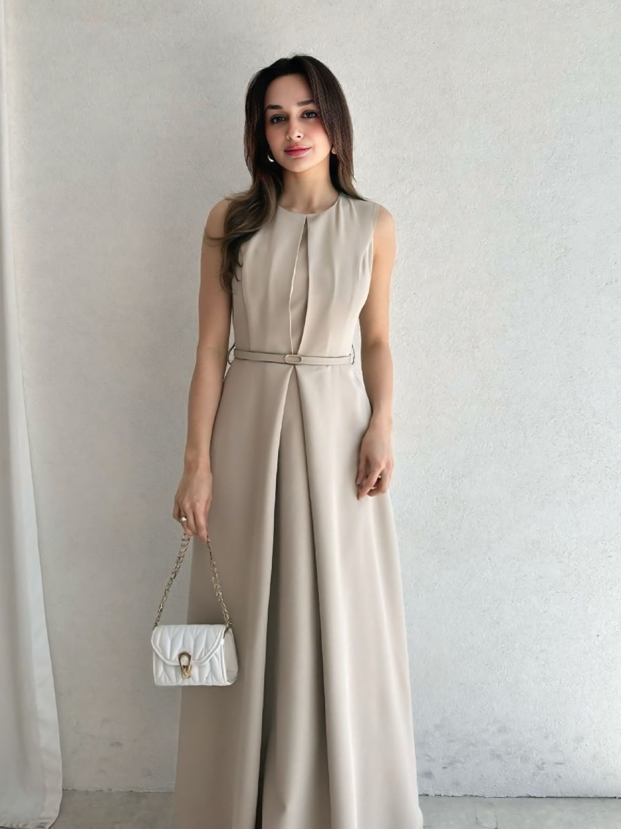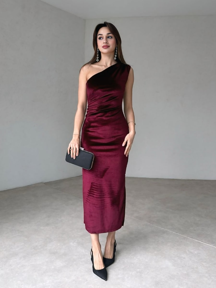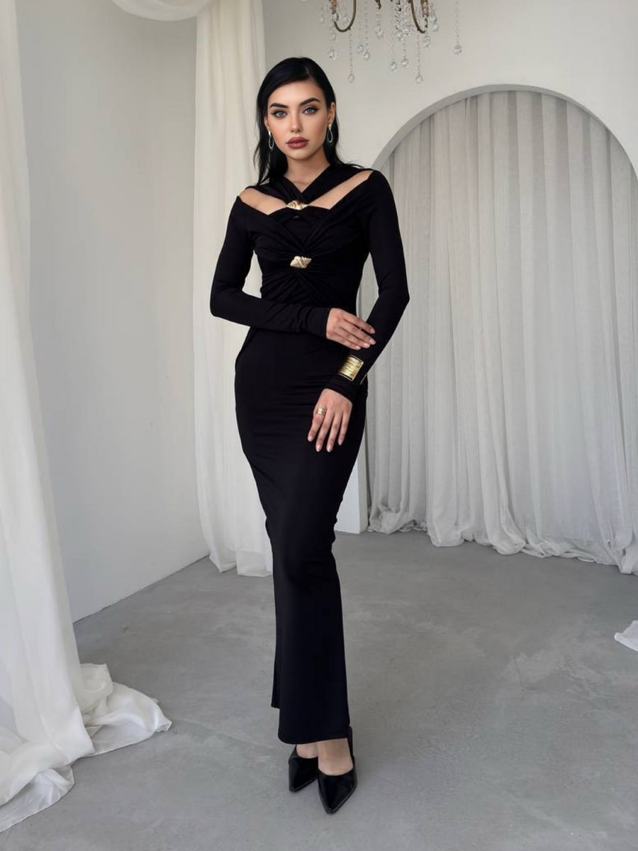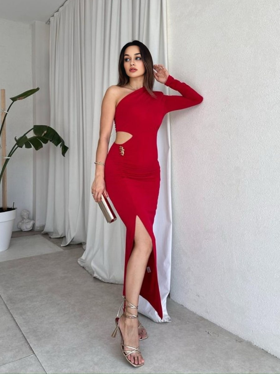 Two-Tone Glitter Ombre Strapless Slit Front Gown