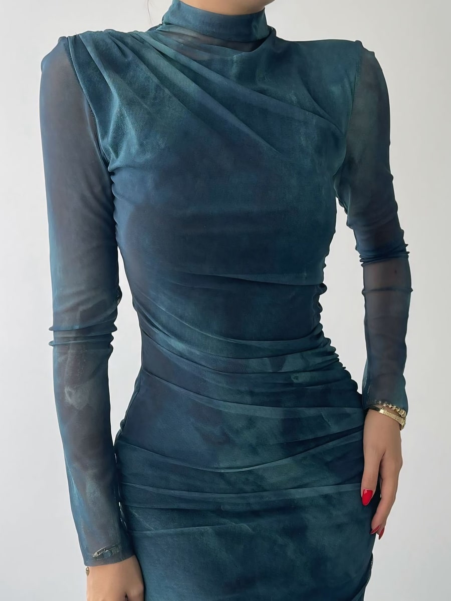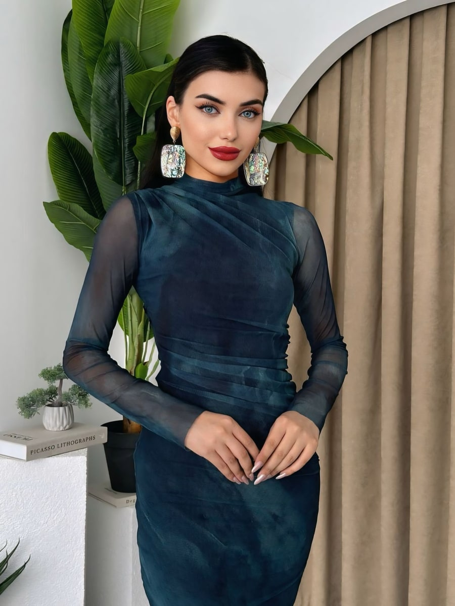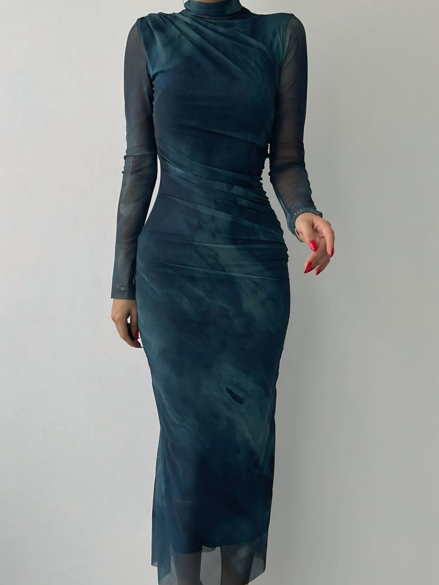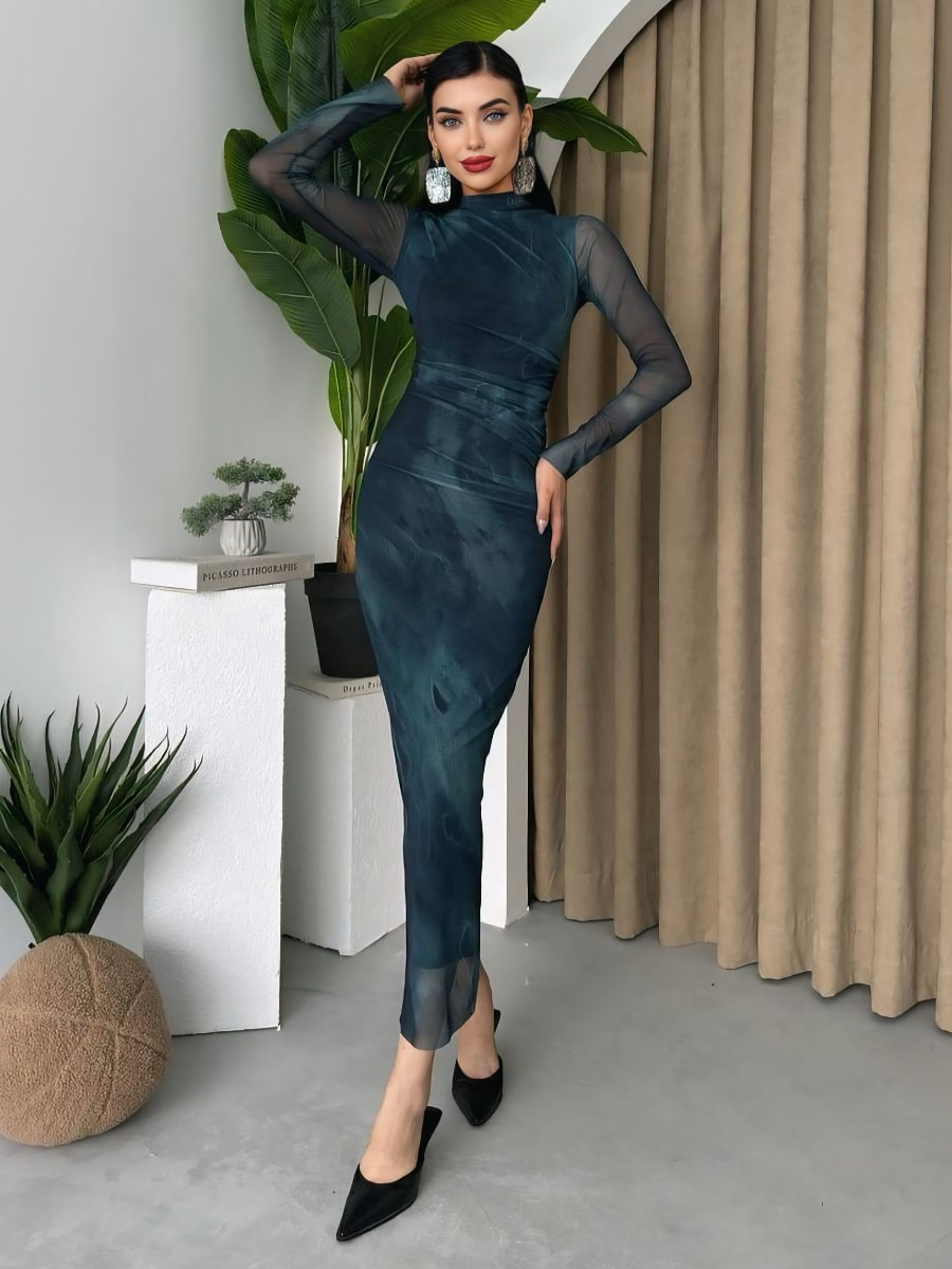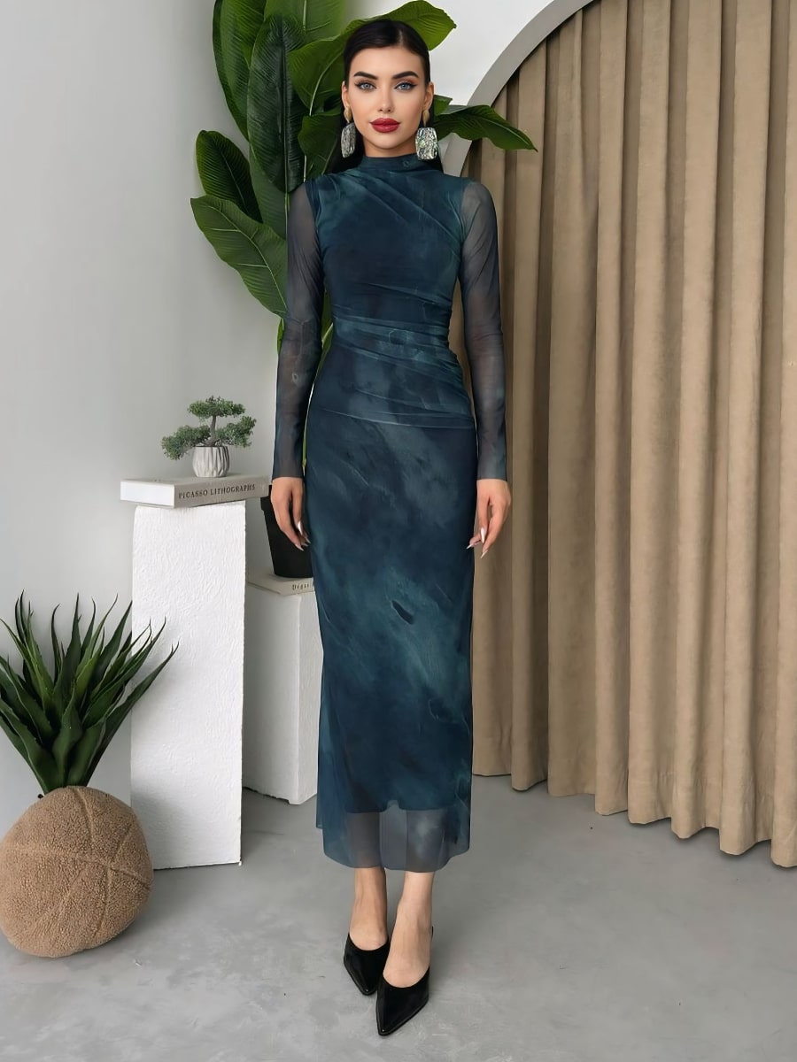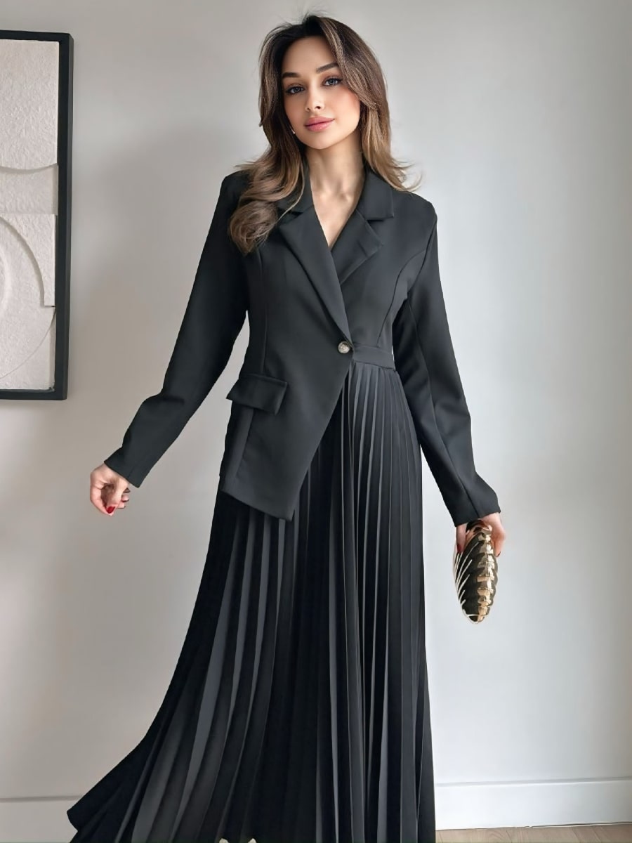 Two-Tone Glitter Ombre Strapless Slit Front Gown