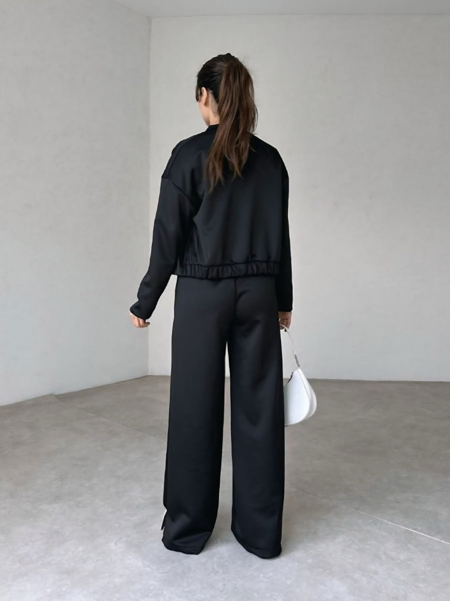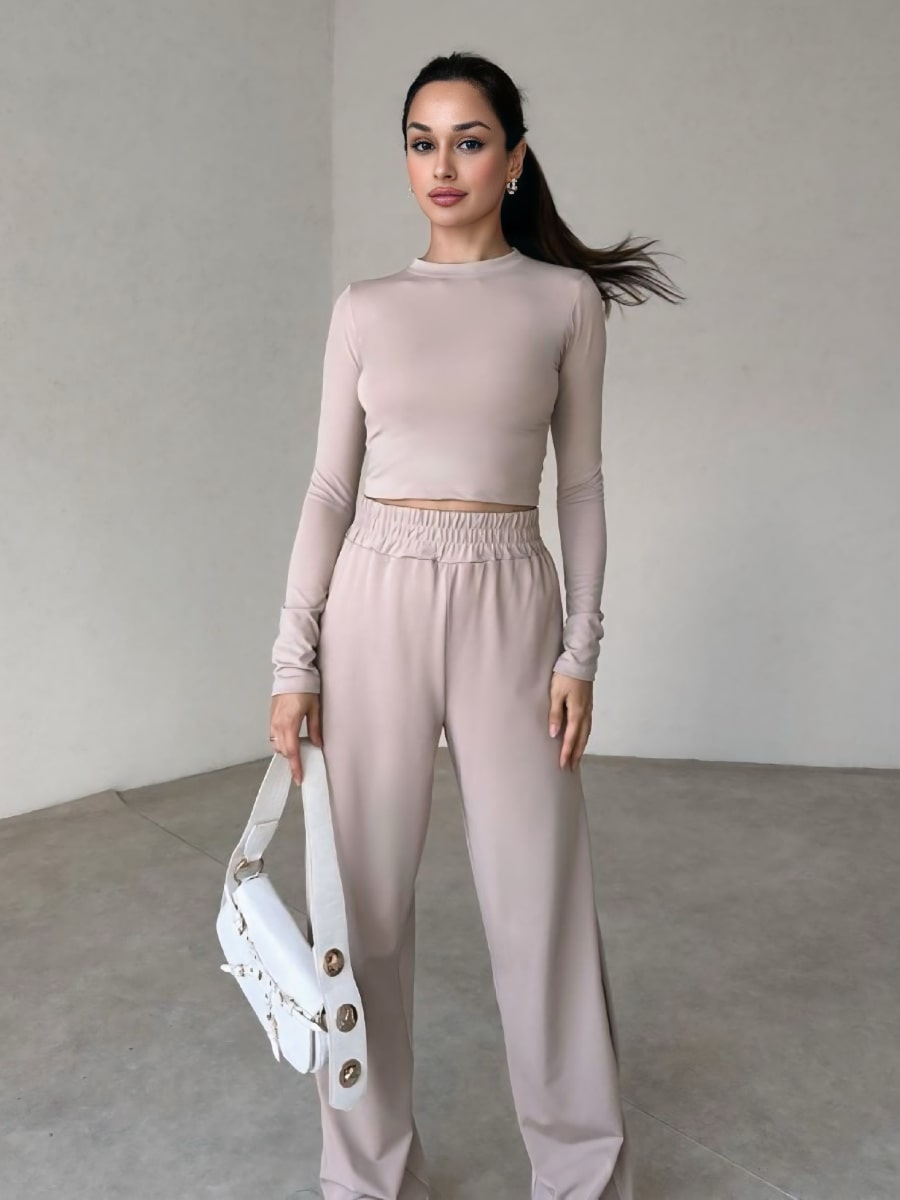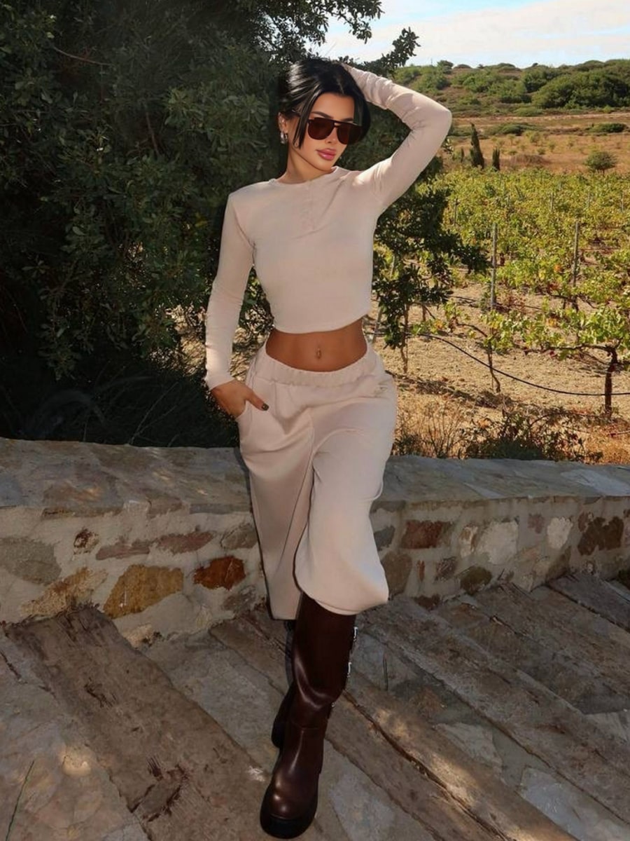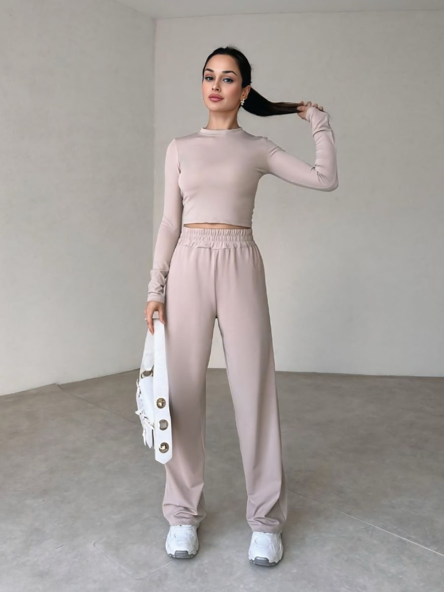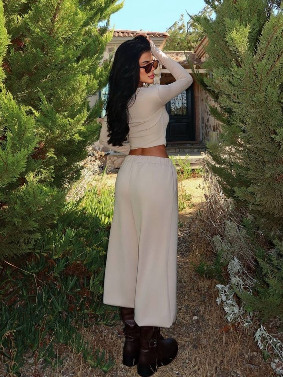 2pcs Soft Fleece Cropped Hoodie & Wide-Leg Waistband Pants Set