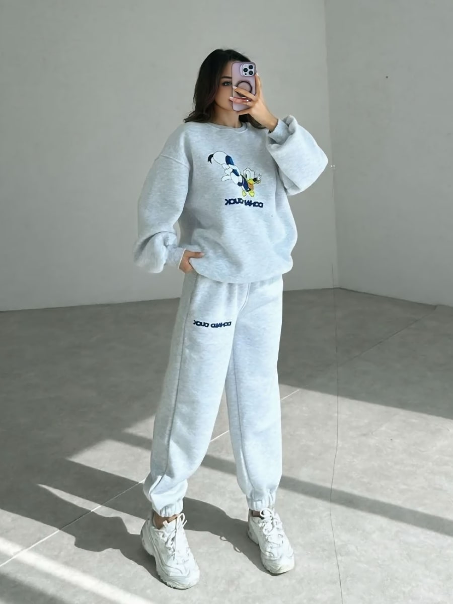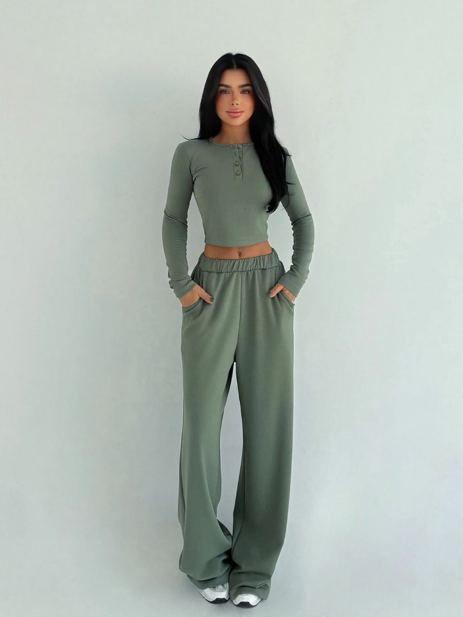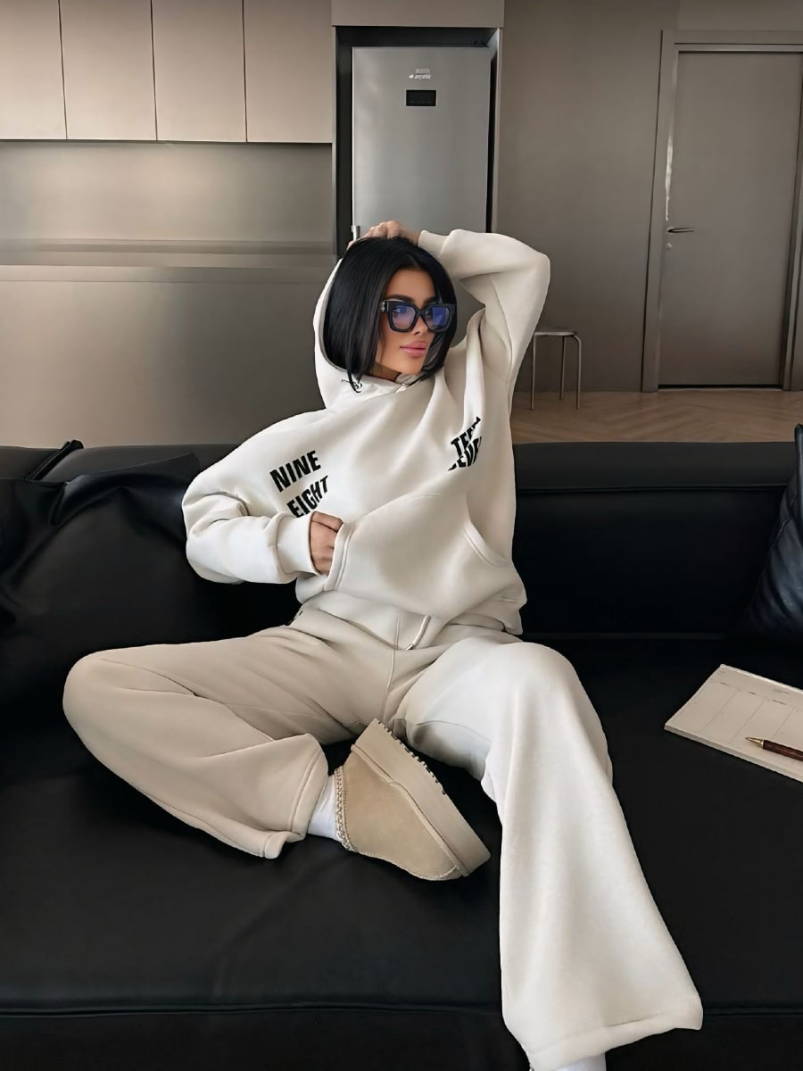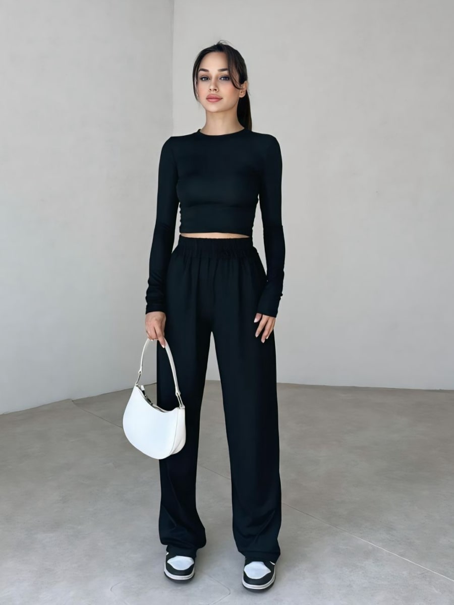 2pcs Soft Fleece Cropped Hoodie & Wide-Leg Waistband Pants Set