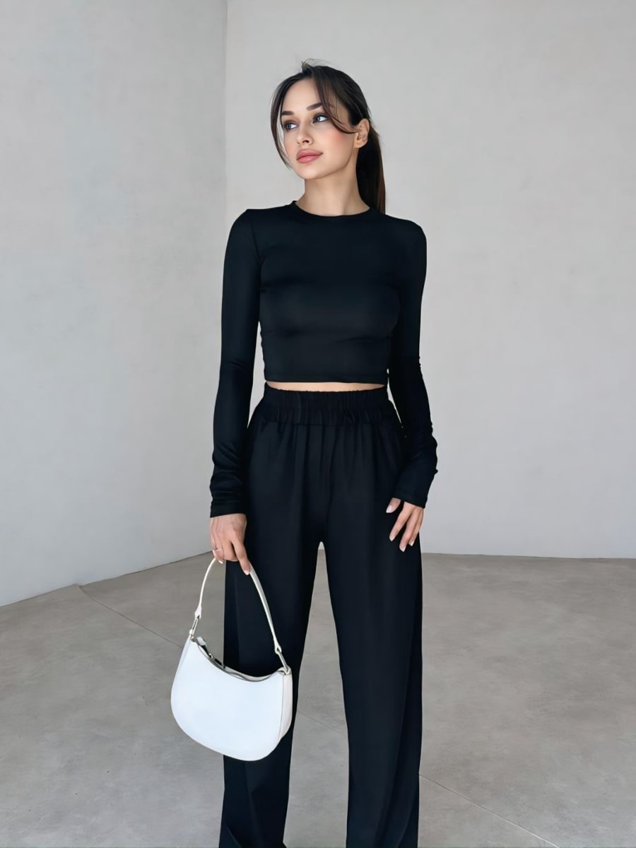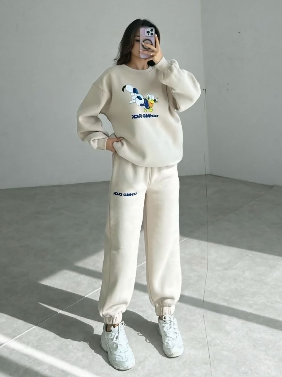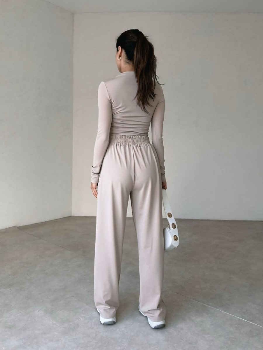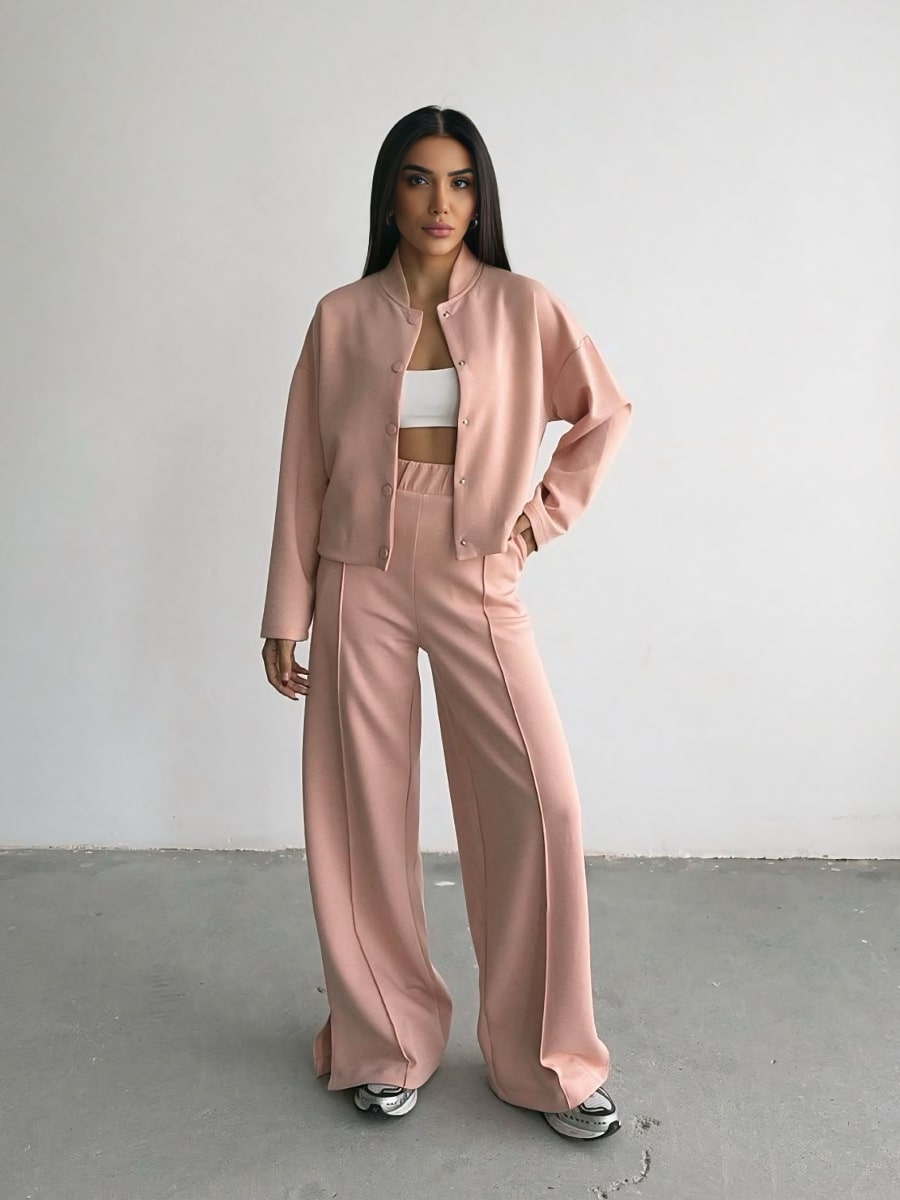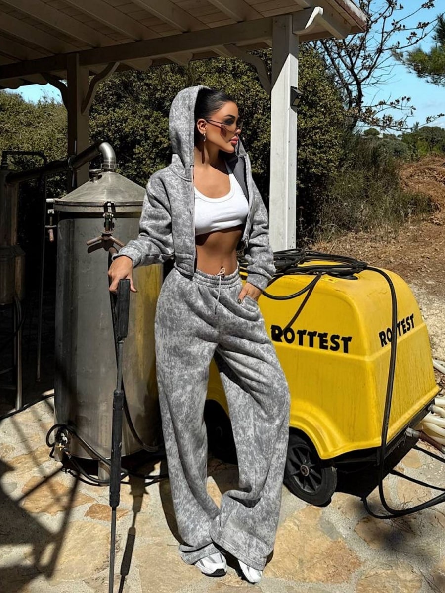 2pcs Soft Fleece Cropped Hoodie & Wide-Leg Waistband Pants Set