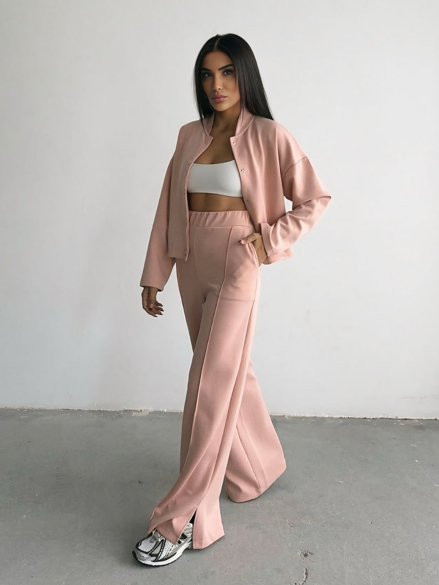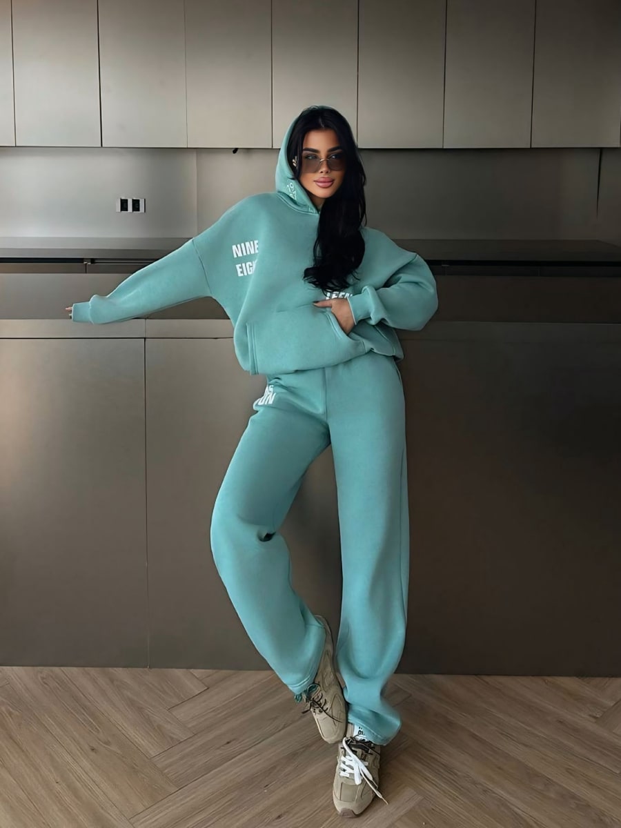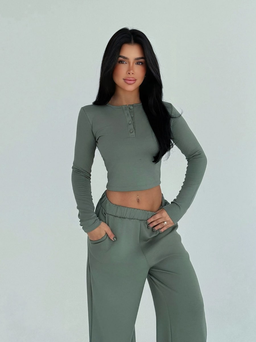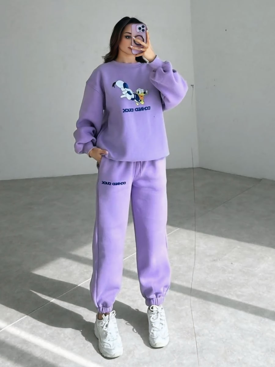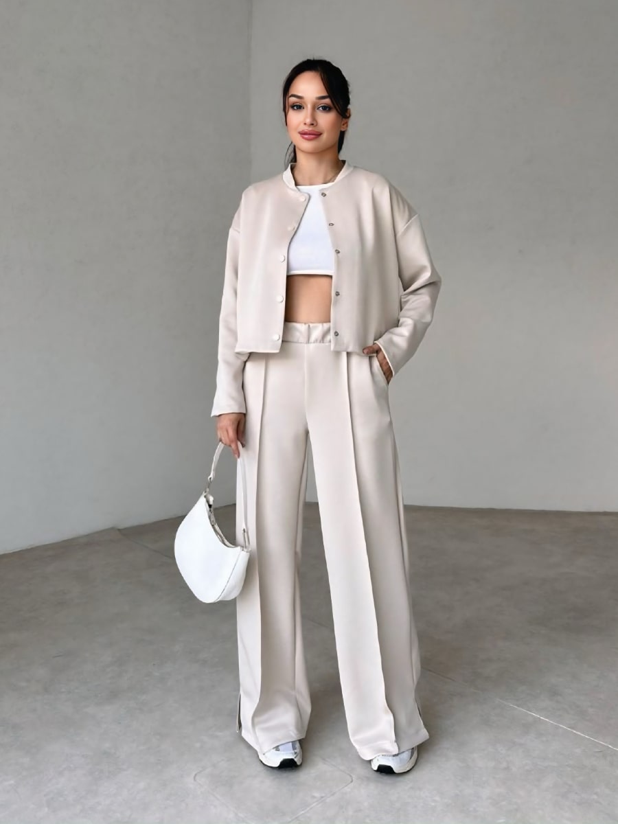 2pcs Soft Fleece Cropped Hoodie & Wide-Leg Waistband Pants Set