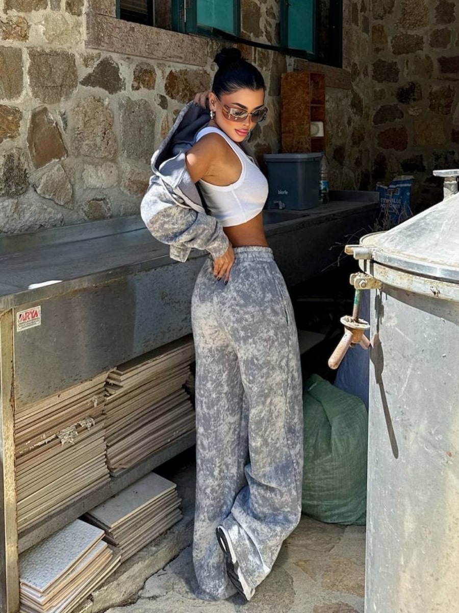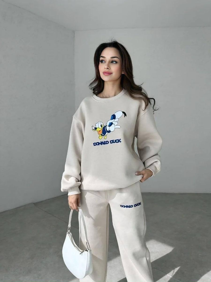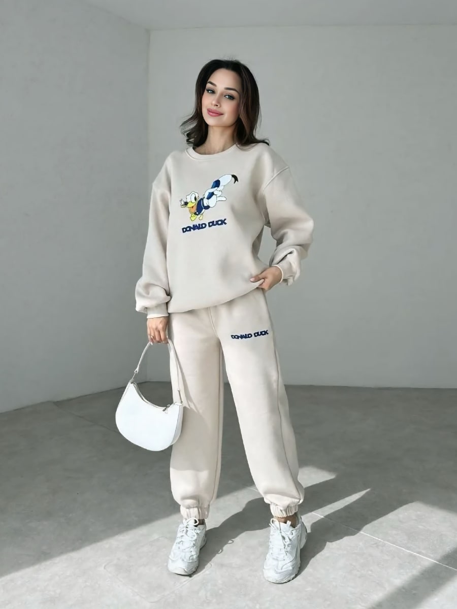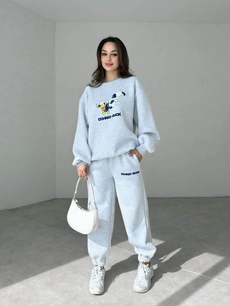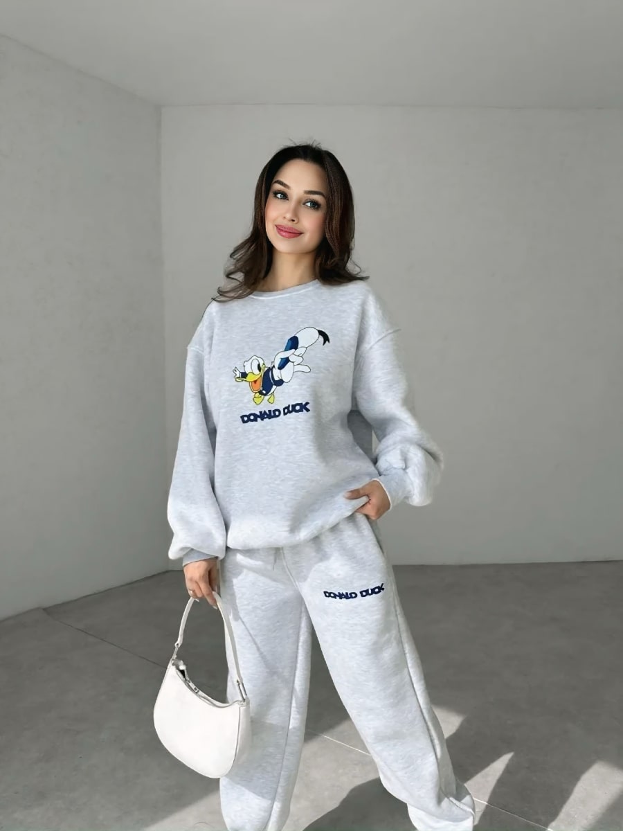 2pcs Soft Fleece Cropped Hoodie & Wide-Leg Waistband Pants Set