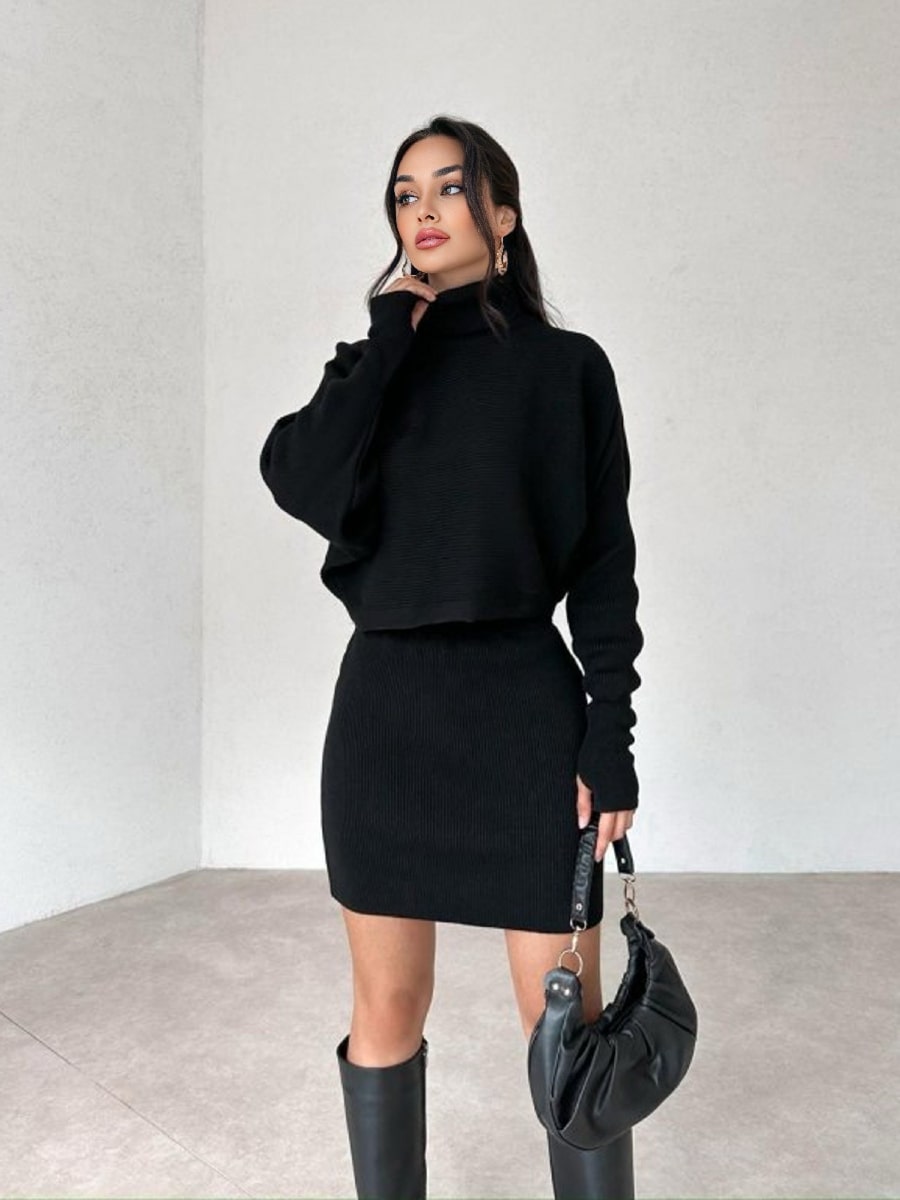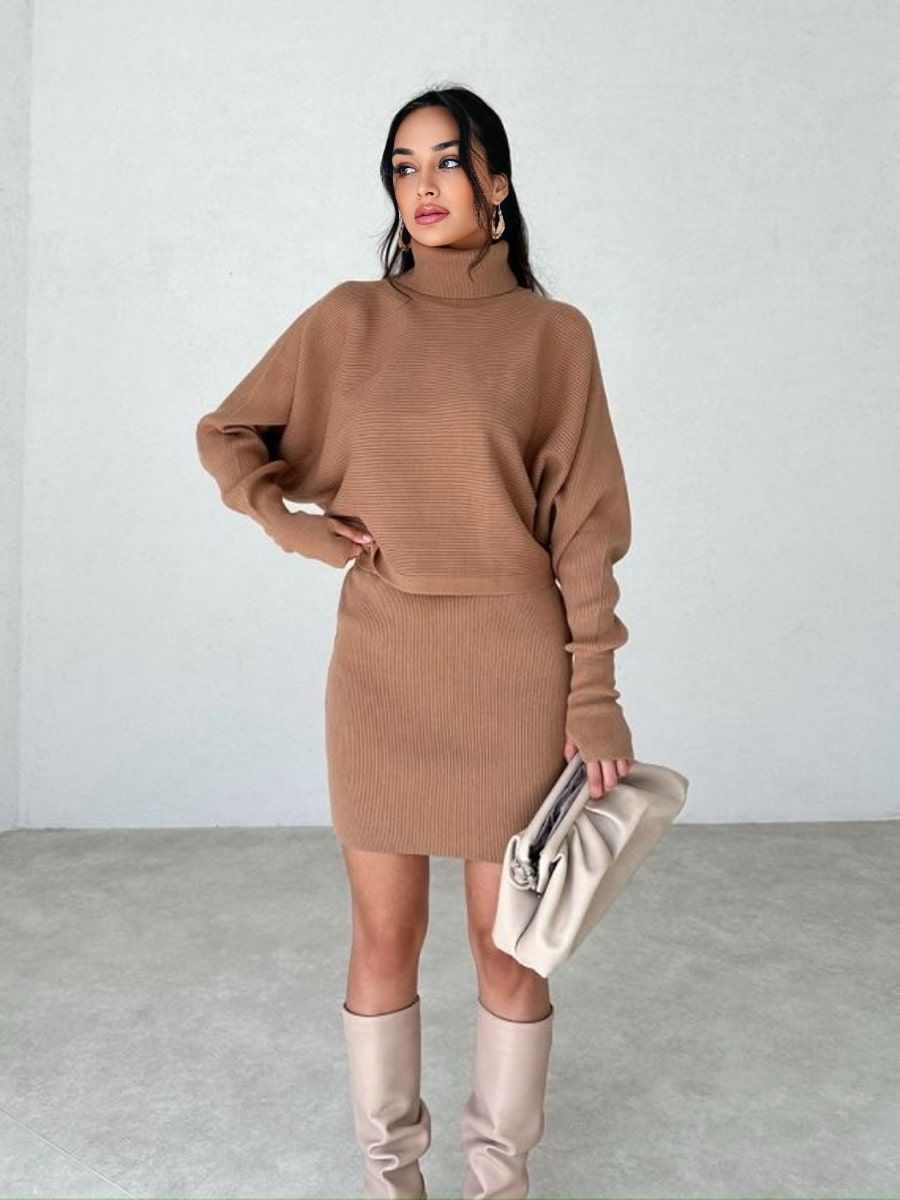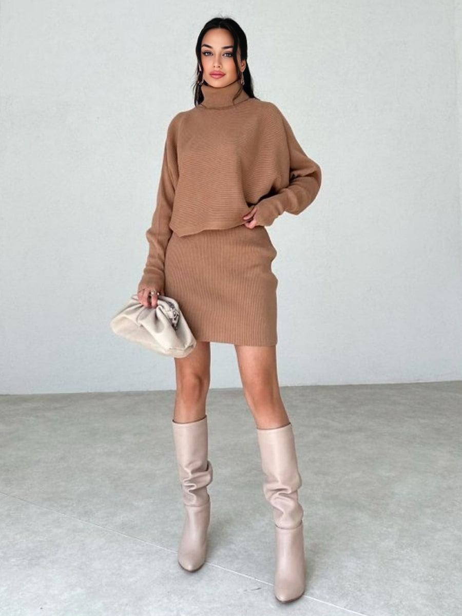Turtleneck Drop Shoulder Sweater & Knit Pants