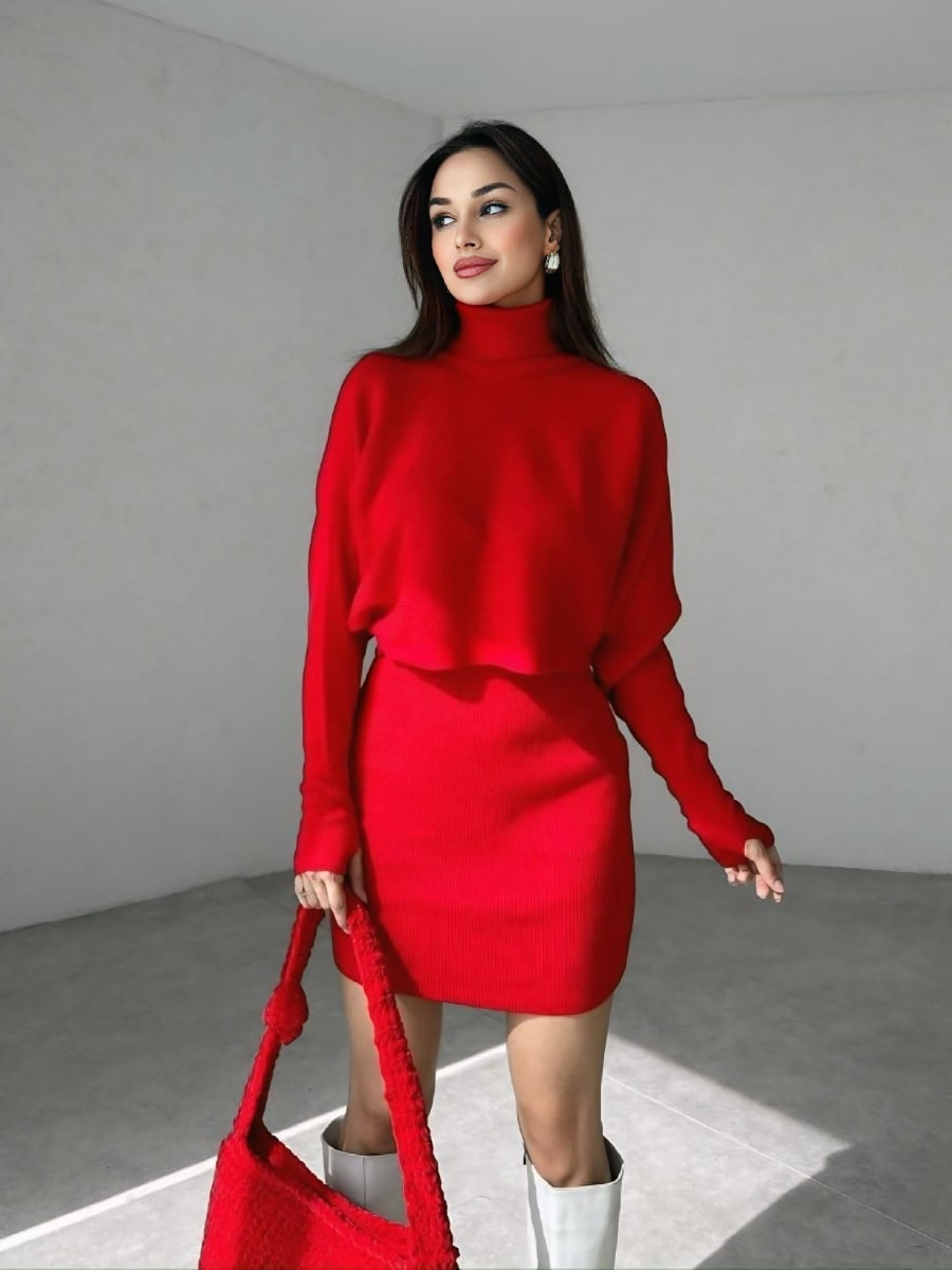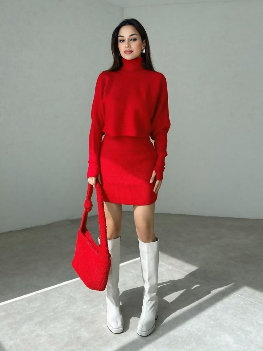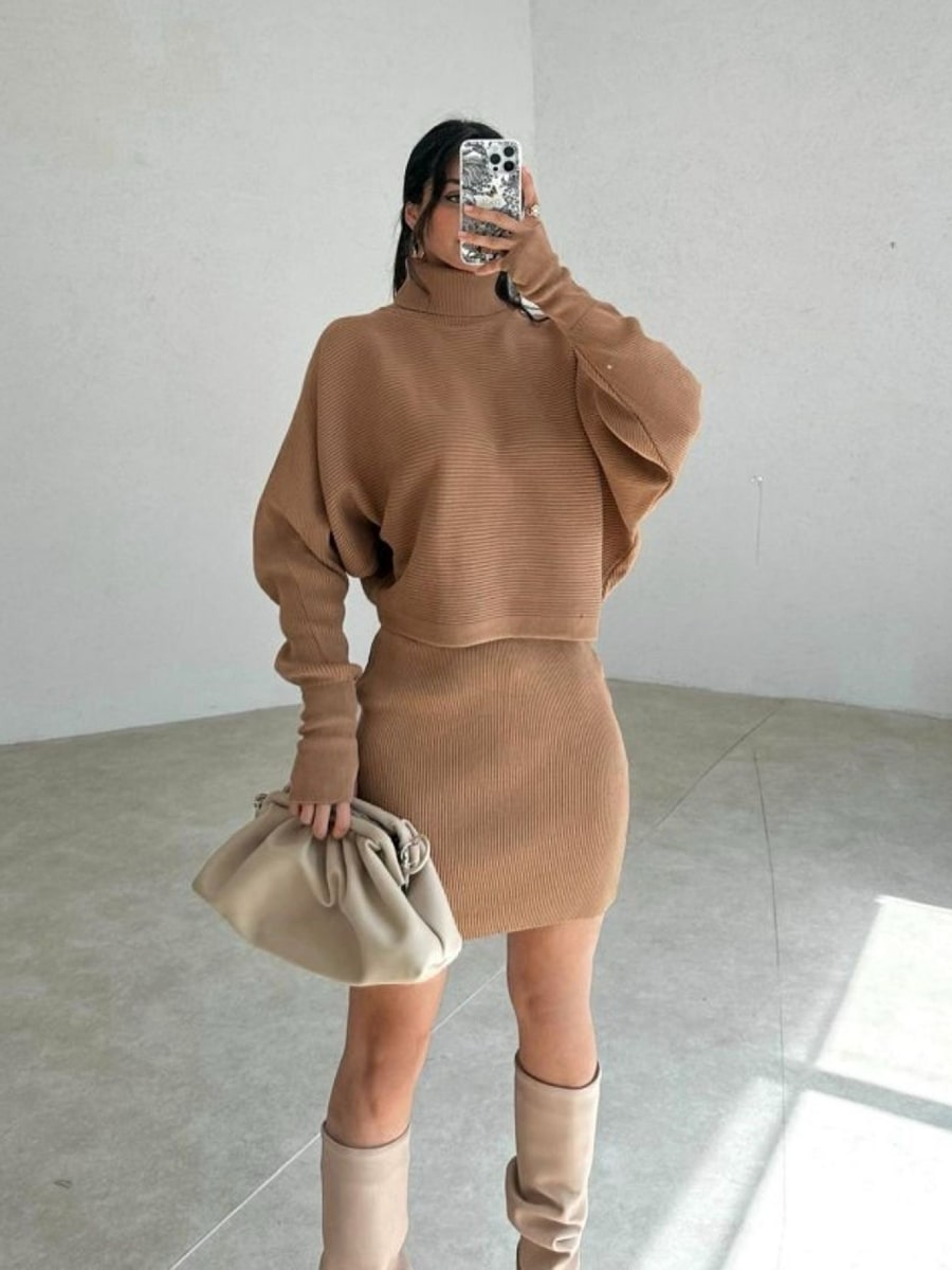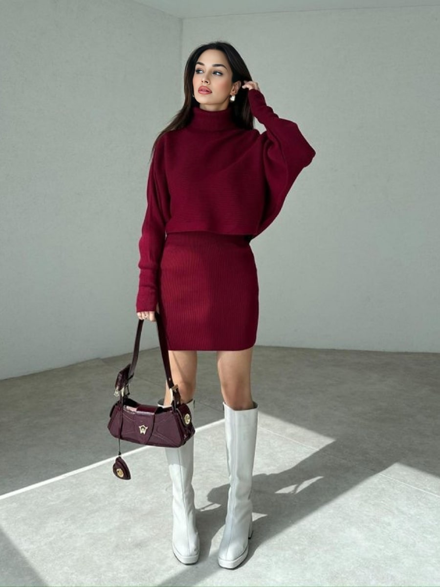 Turtleneck Drop Shoulder Sweater & Knit Pants