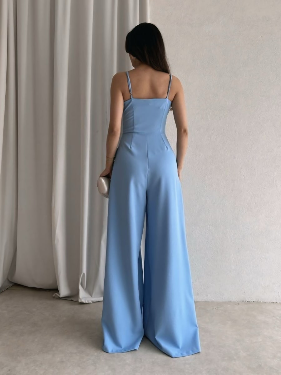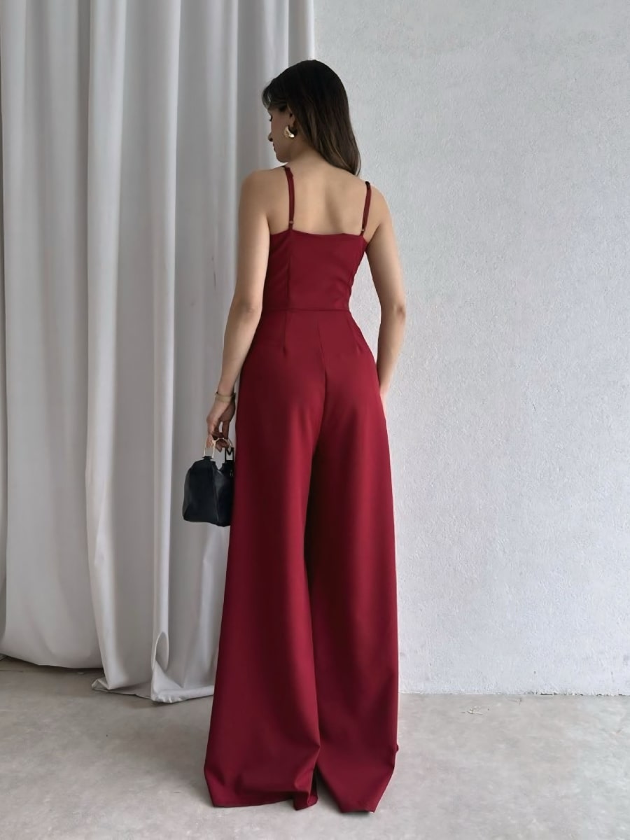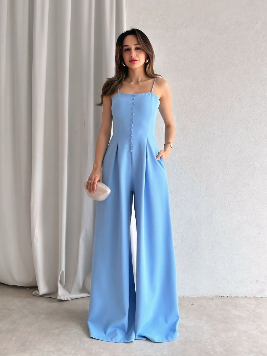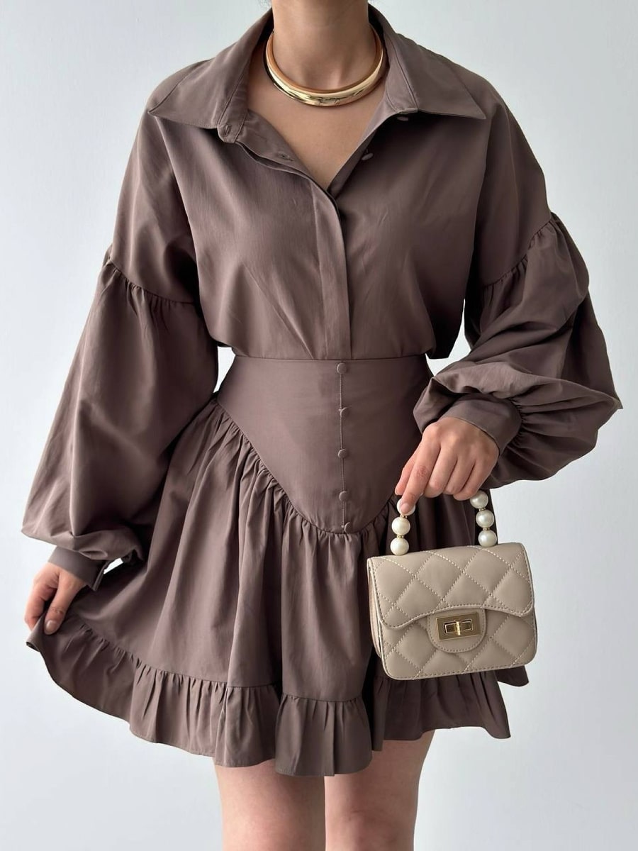 Turndown Collar Button Front Puff Sleeve Belted Jumpsuit