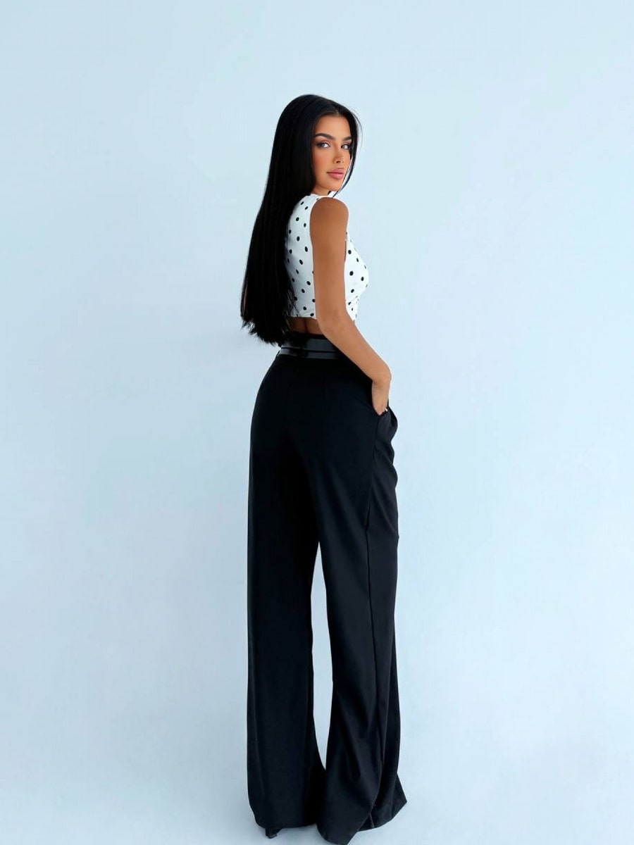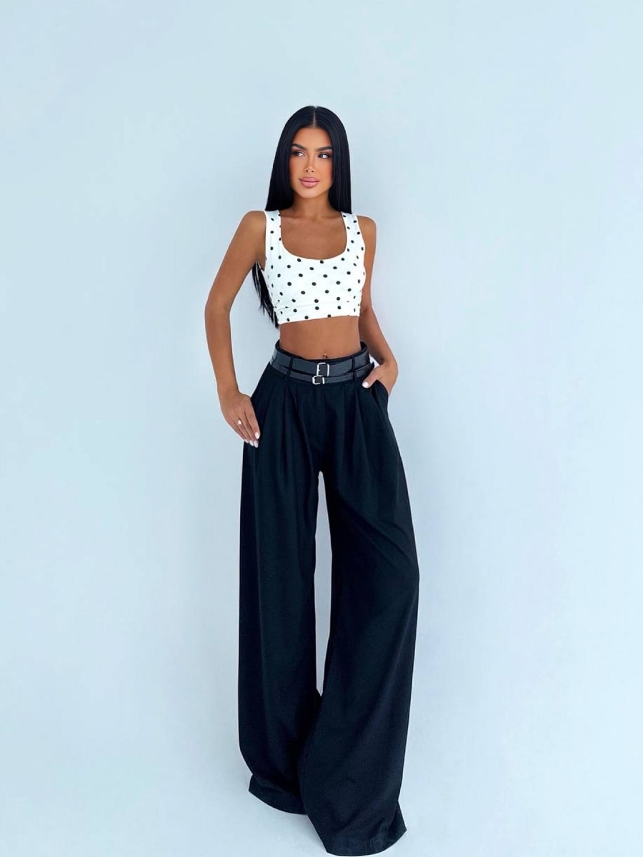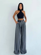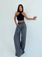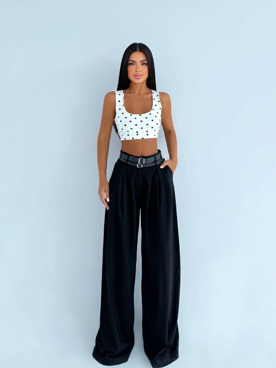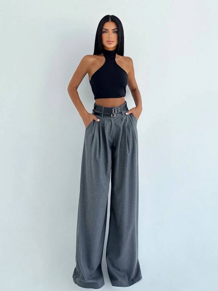 Pleated Loose Casual Wide Leg Pants With Double Belts