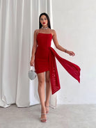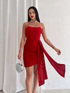 Ruched Side Draped Detail Crisscross Back Dress