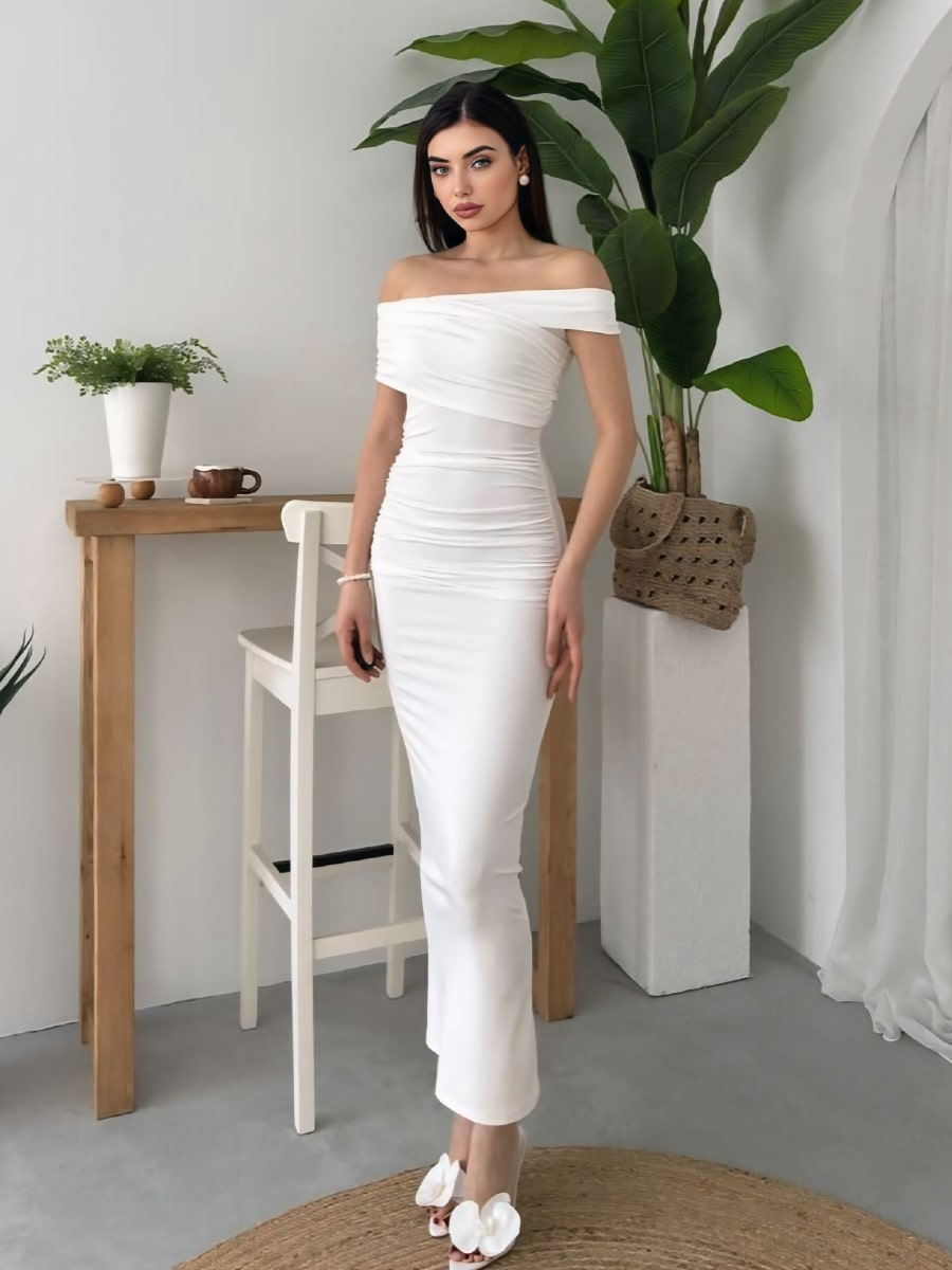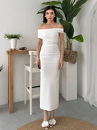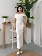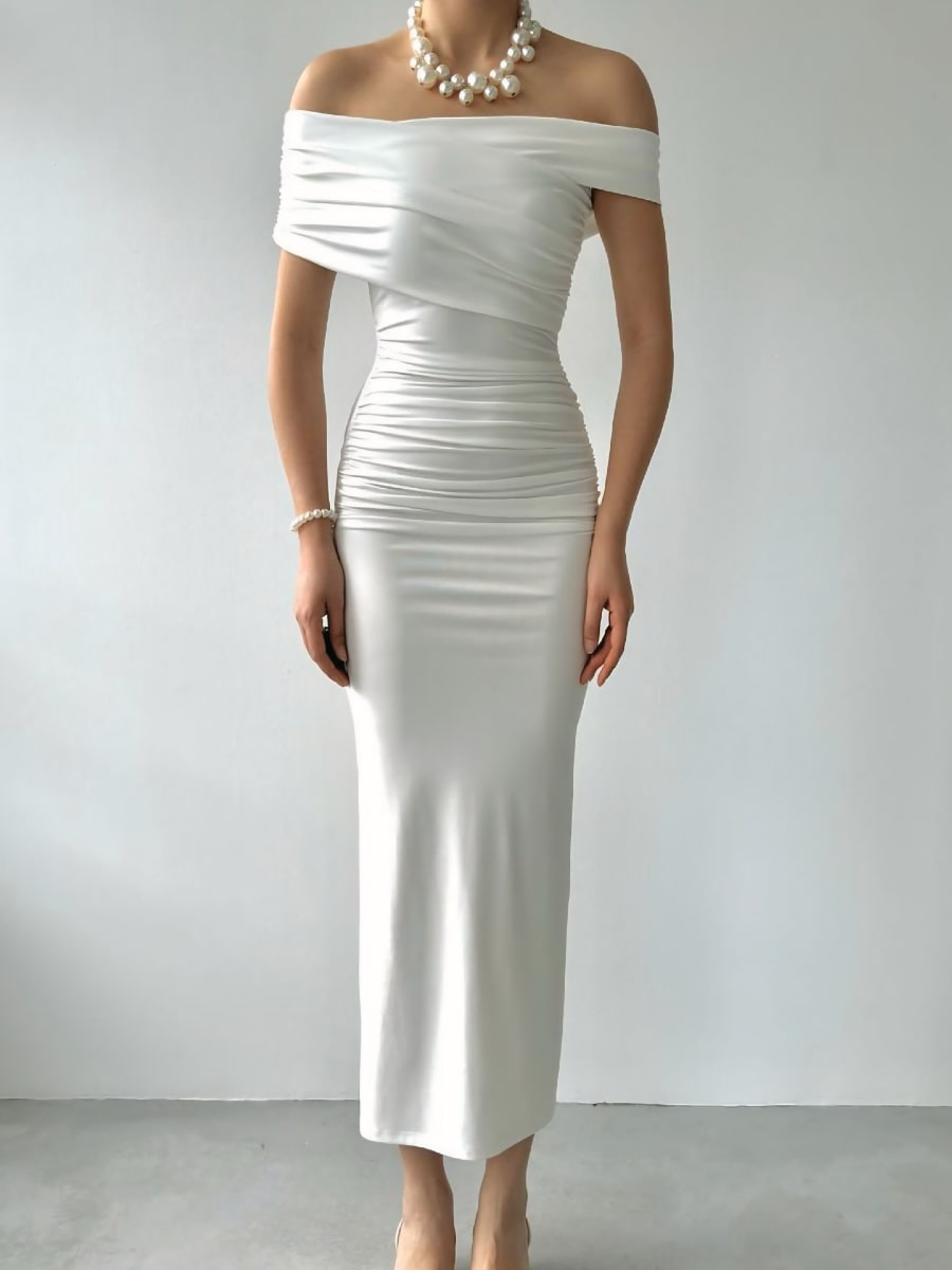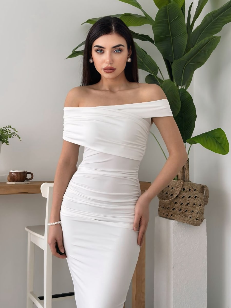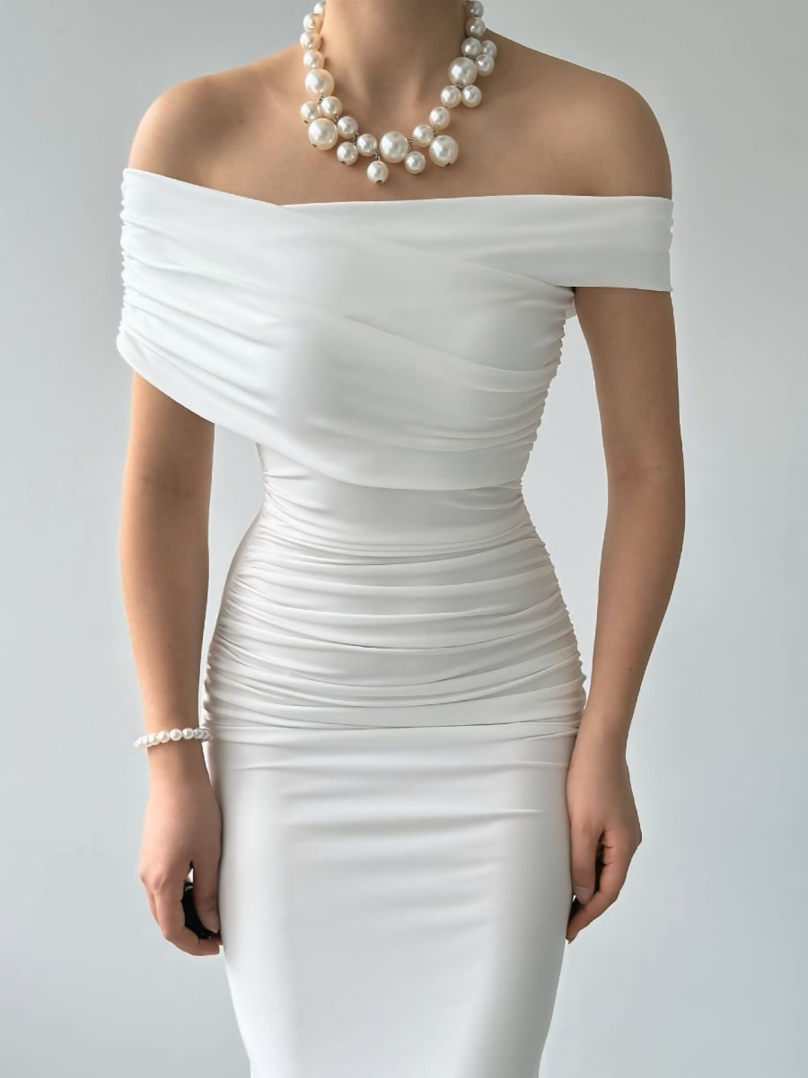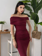 Ruched Wrap Trim Bodycon Off Shoulder Dress