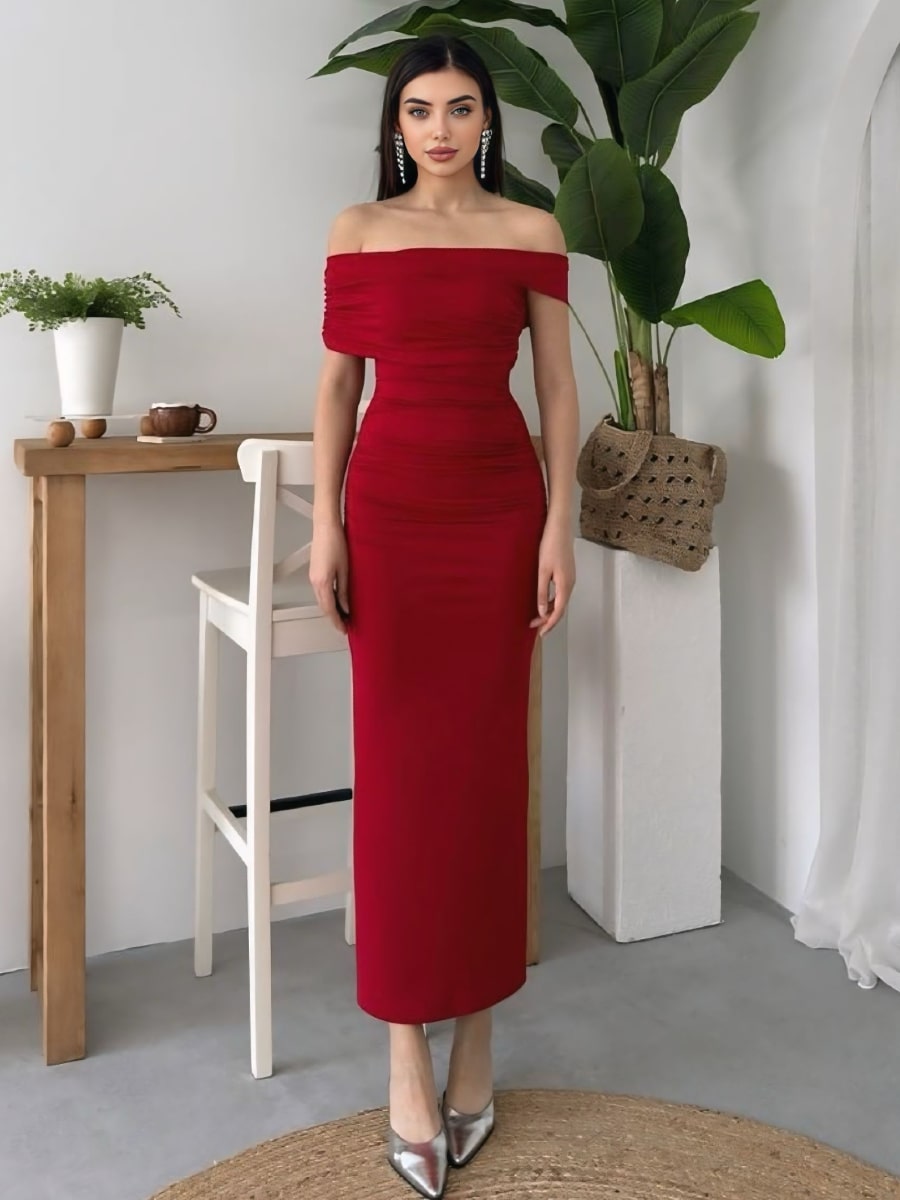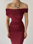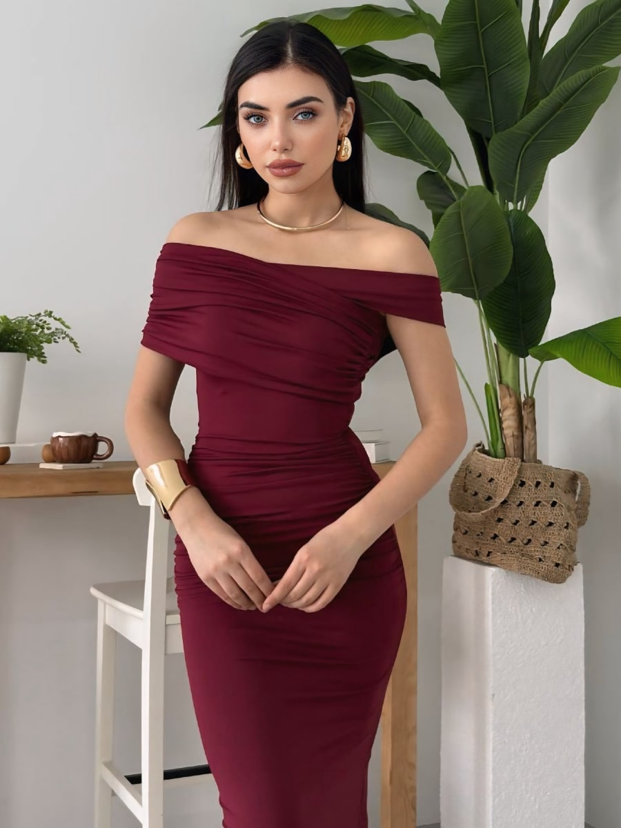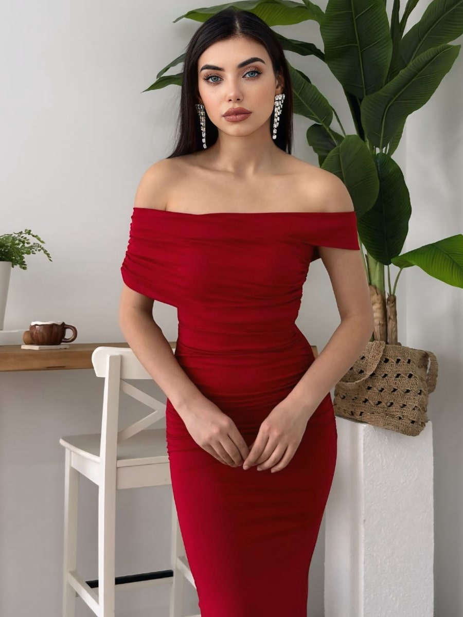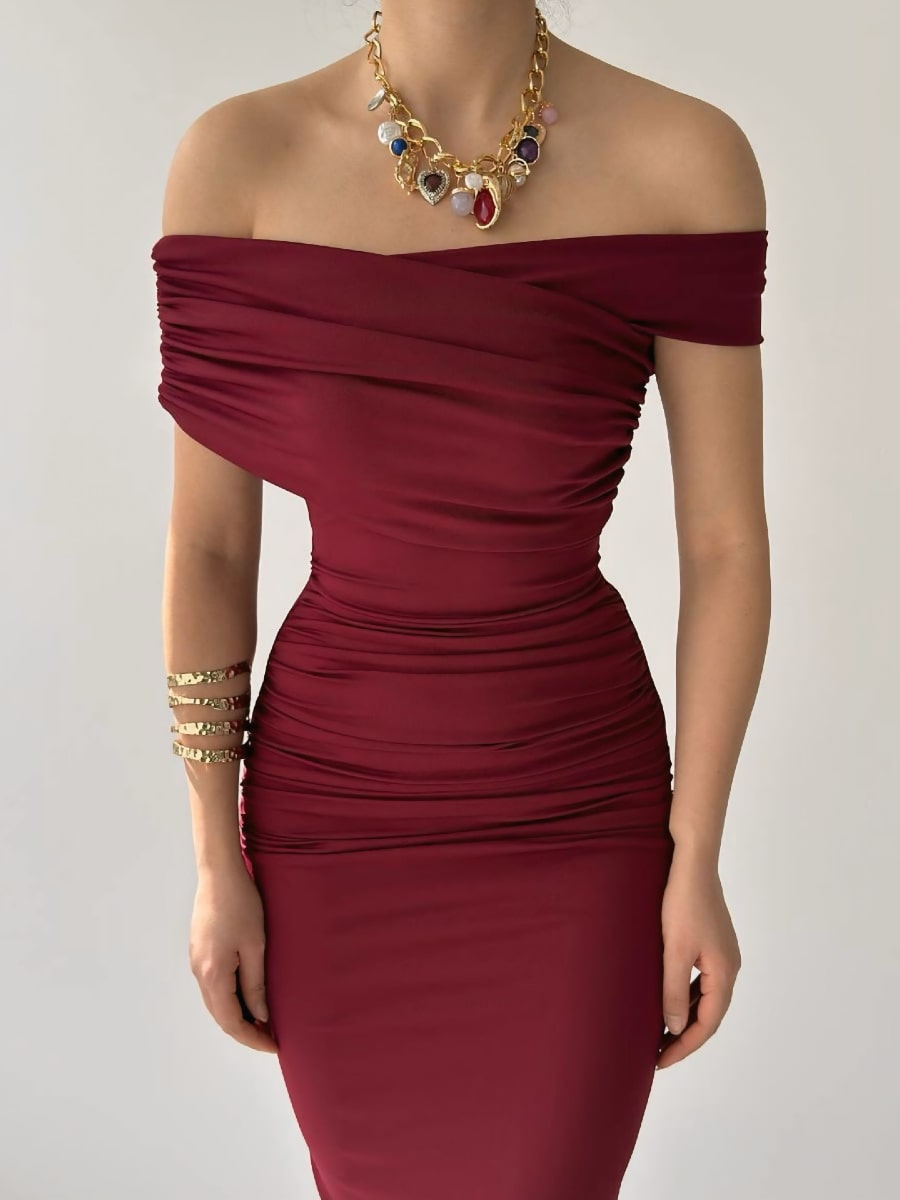 Ruched Wrap Trim Bodycon Off Shoulder Dress