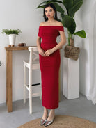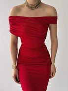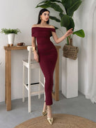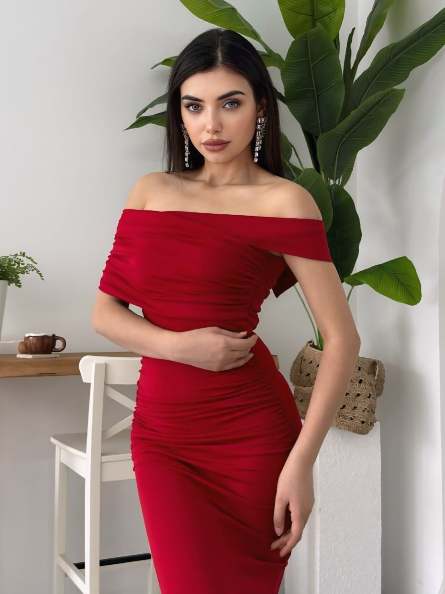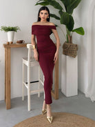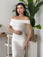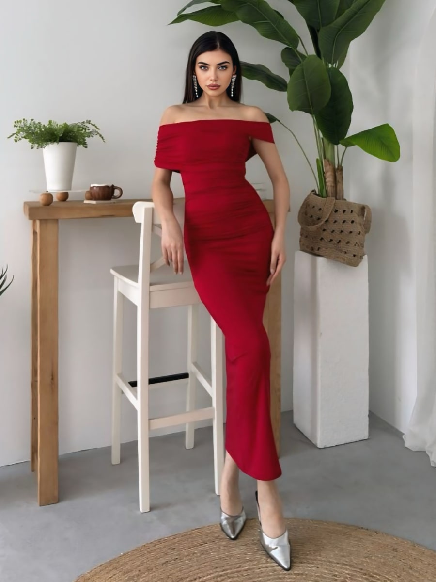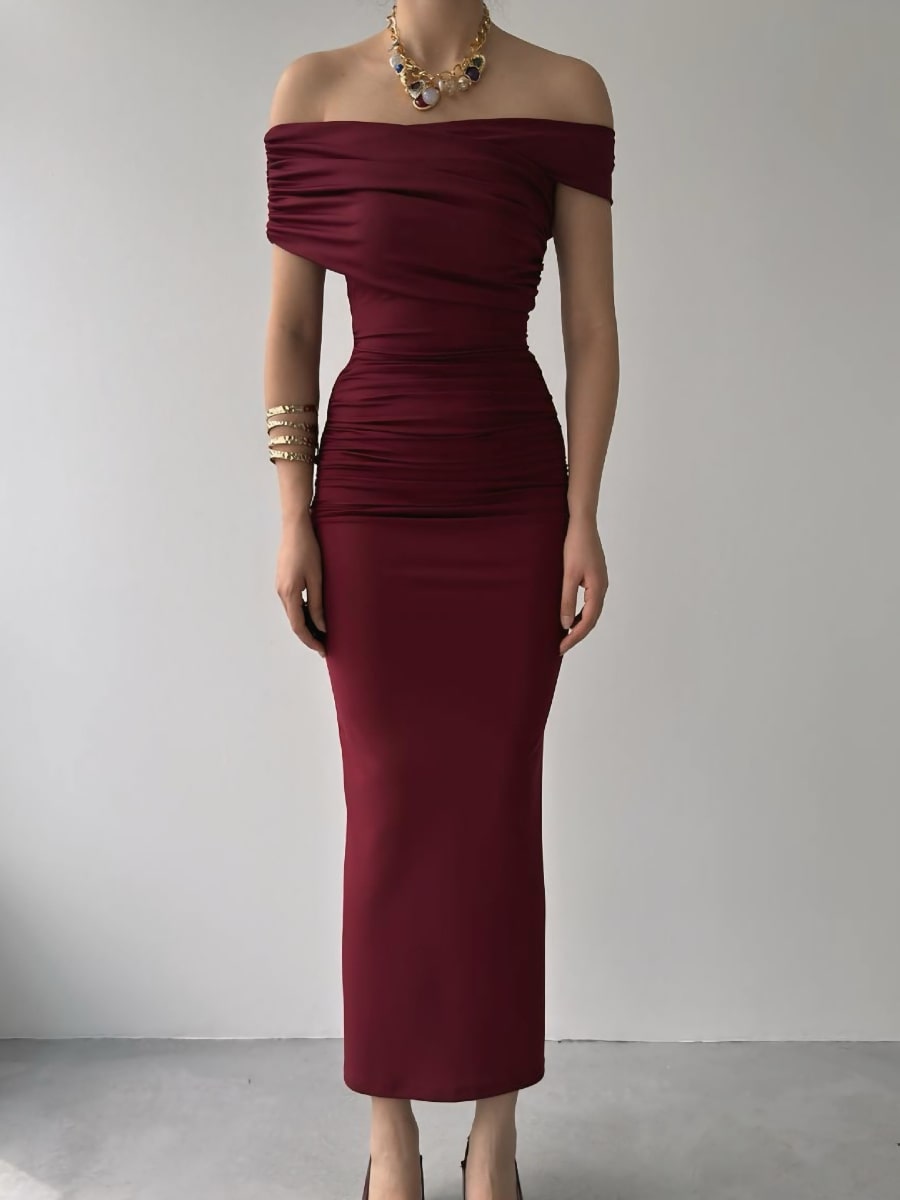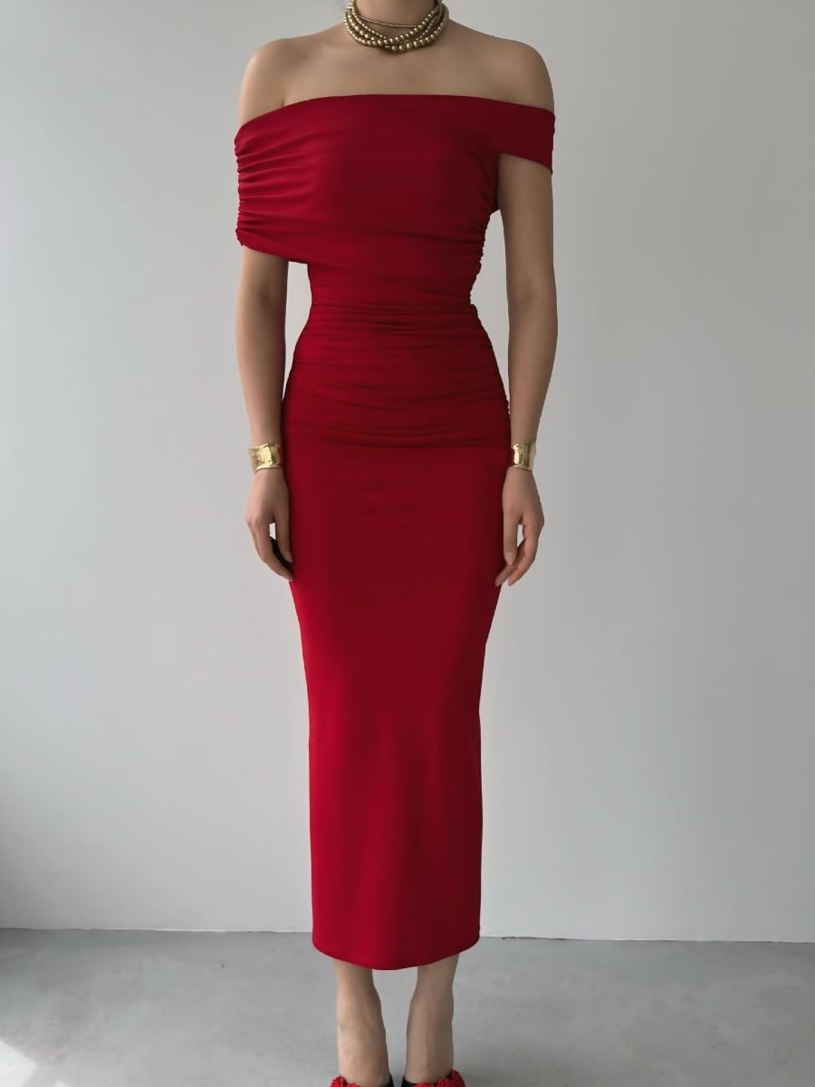 Ruched Wrap Trim Bodycon Off Shoulder Dress