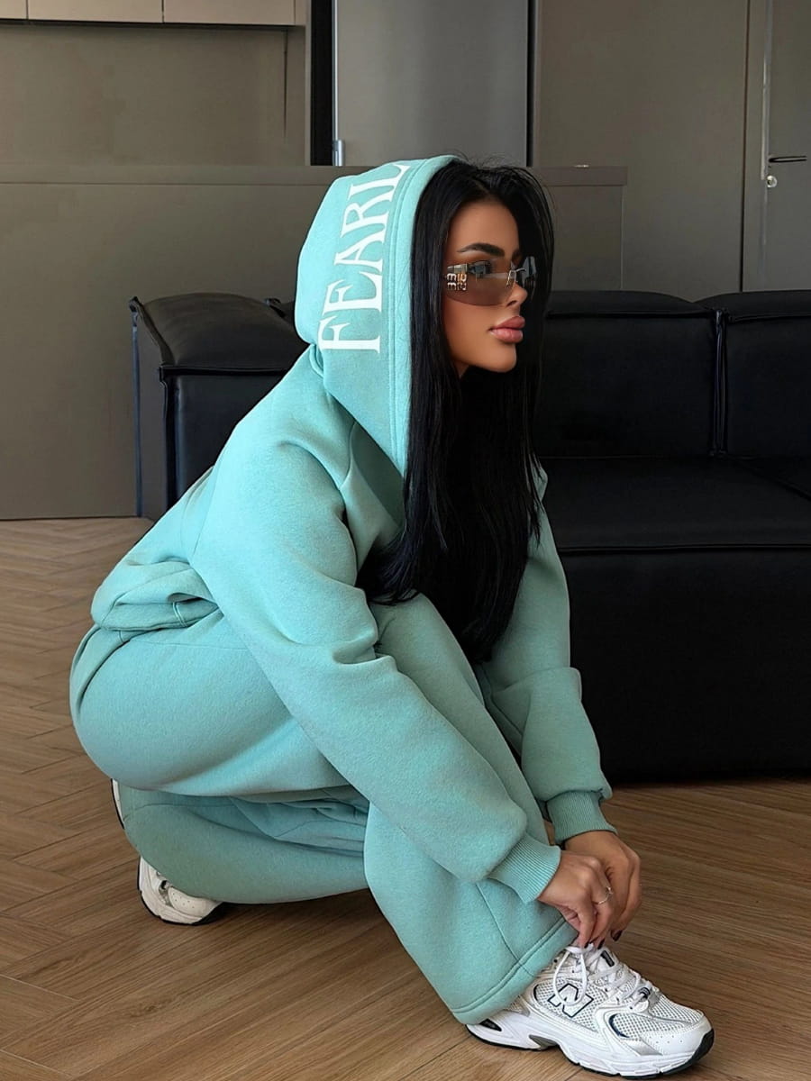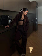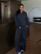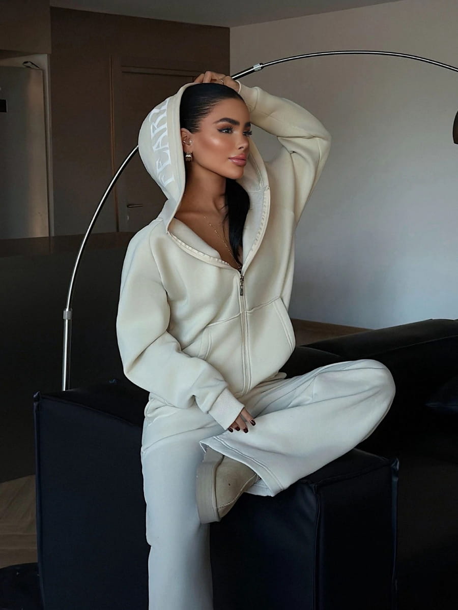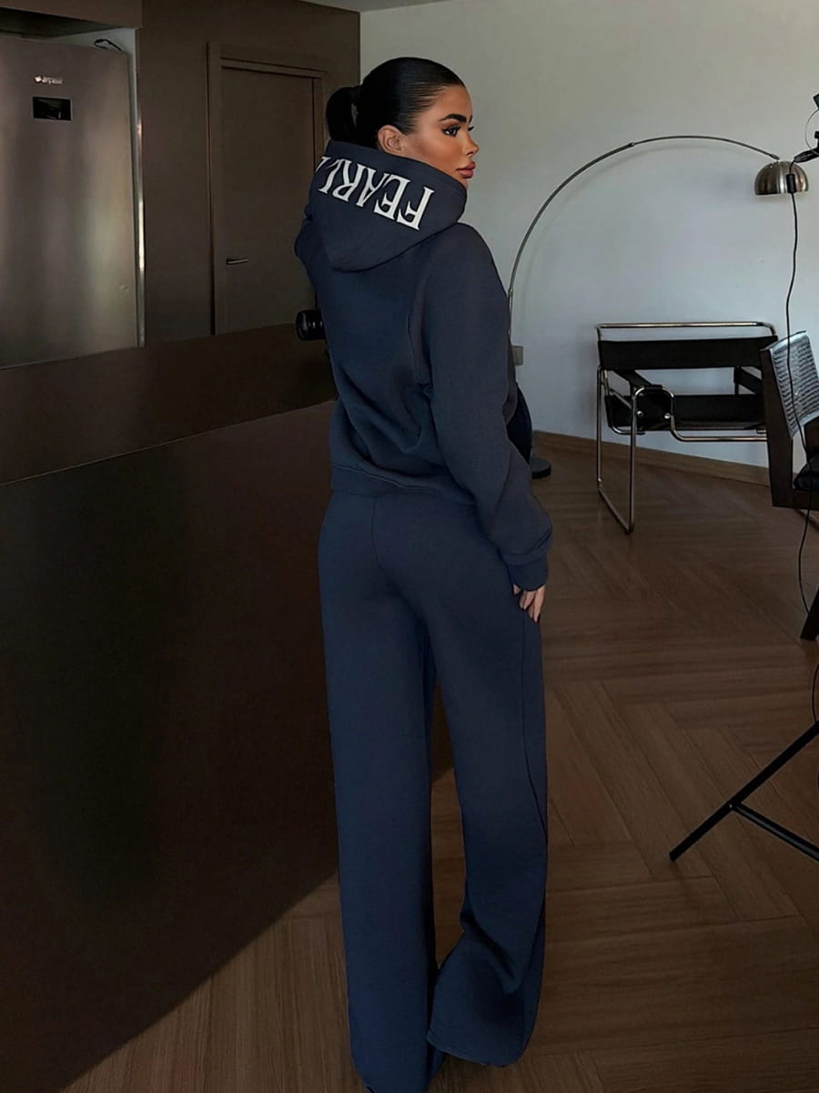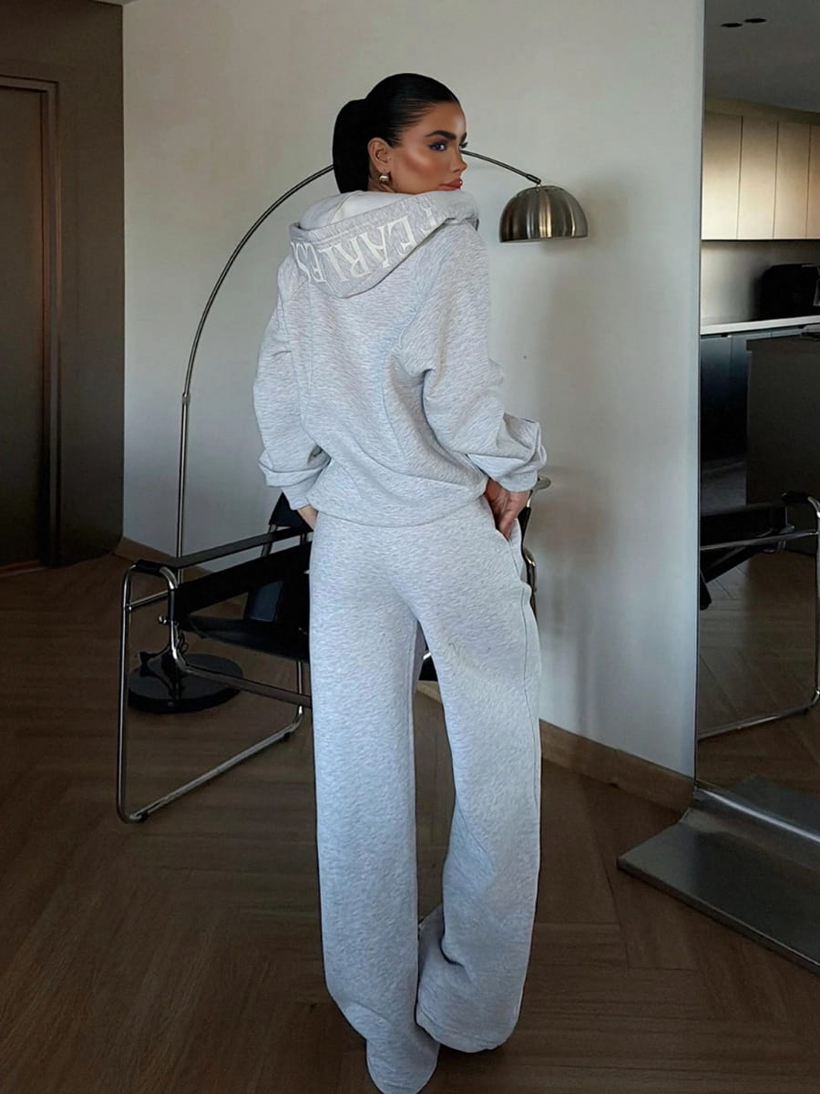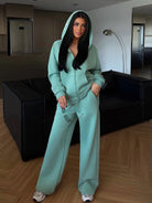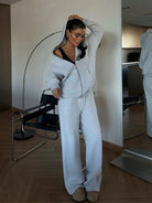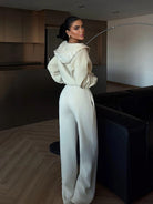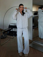 Solid Color Drop Shoulder Loose Zip-Up Hoodie & Wide Leg Sweatpants Set