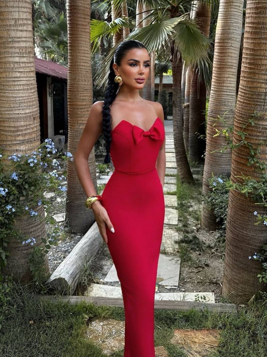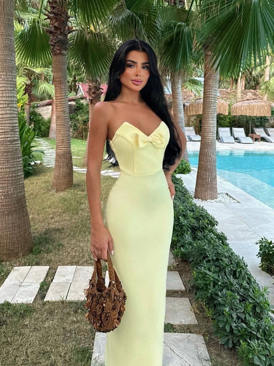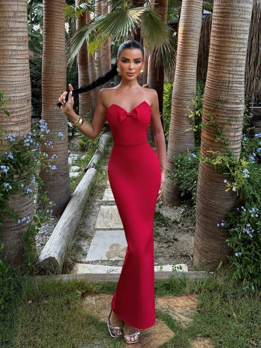Strapless Sweetheart Neckline Bow Detail Bodycon Dress